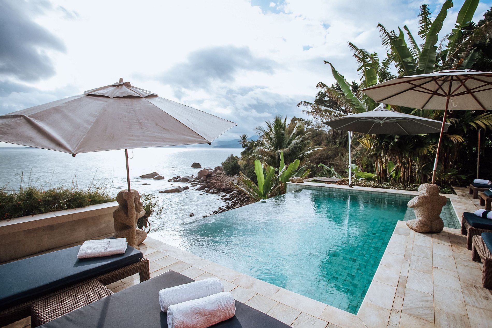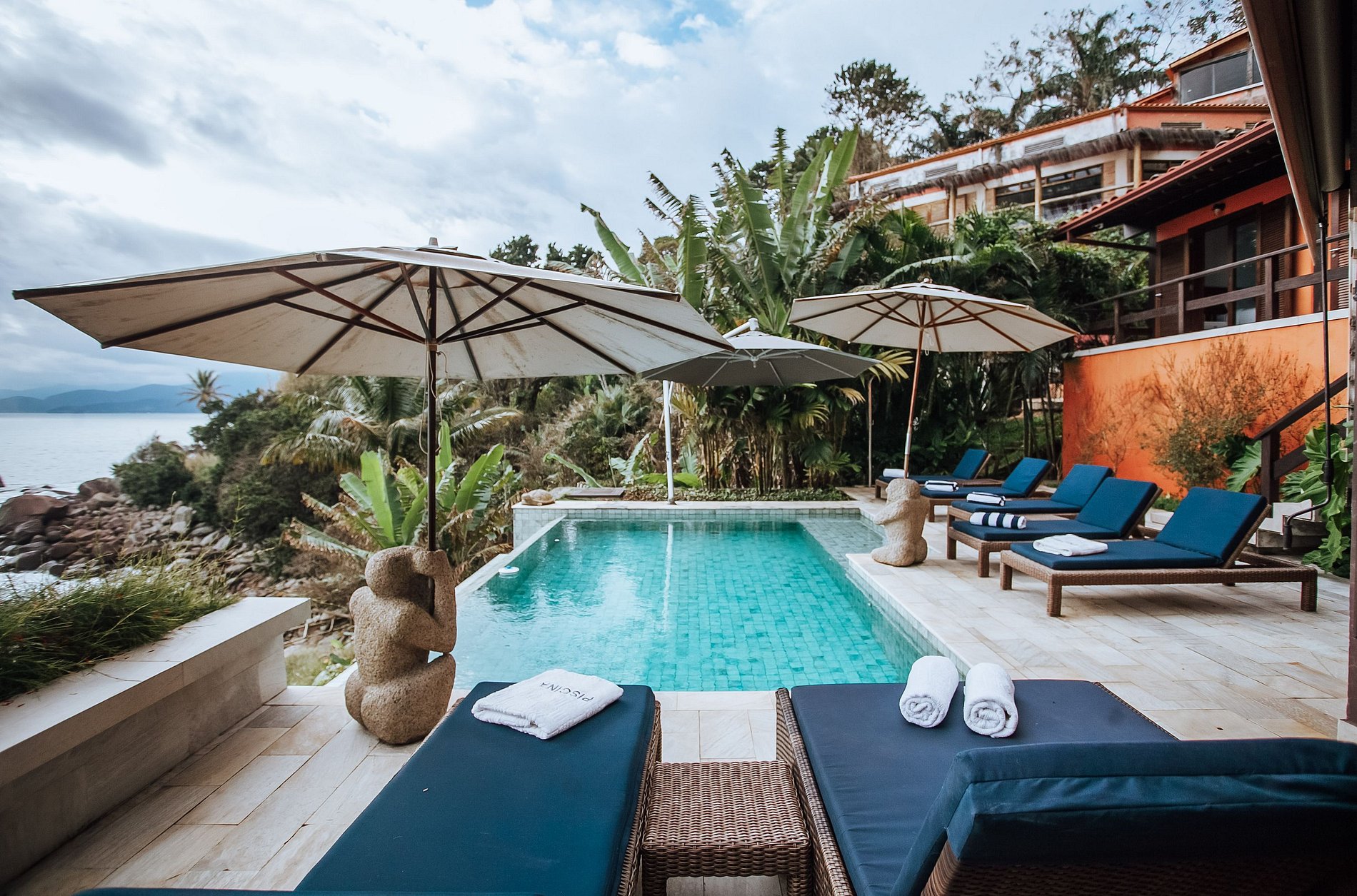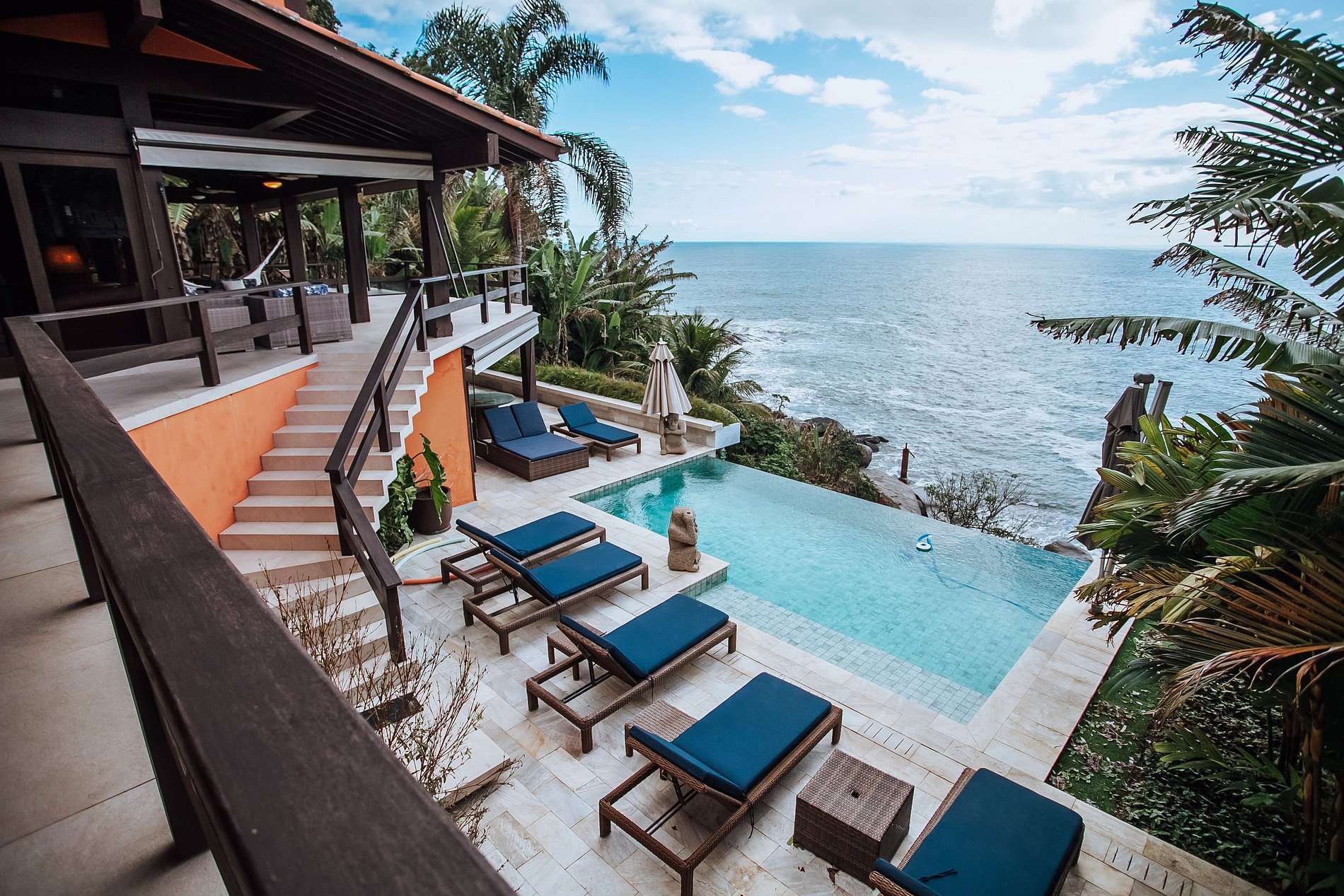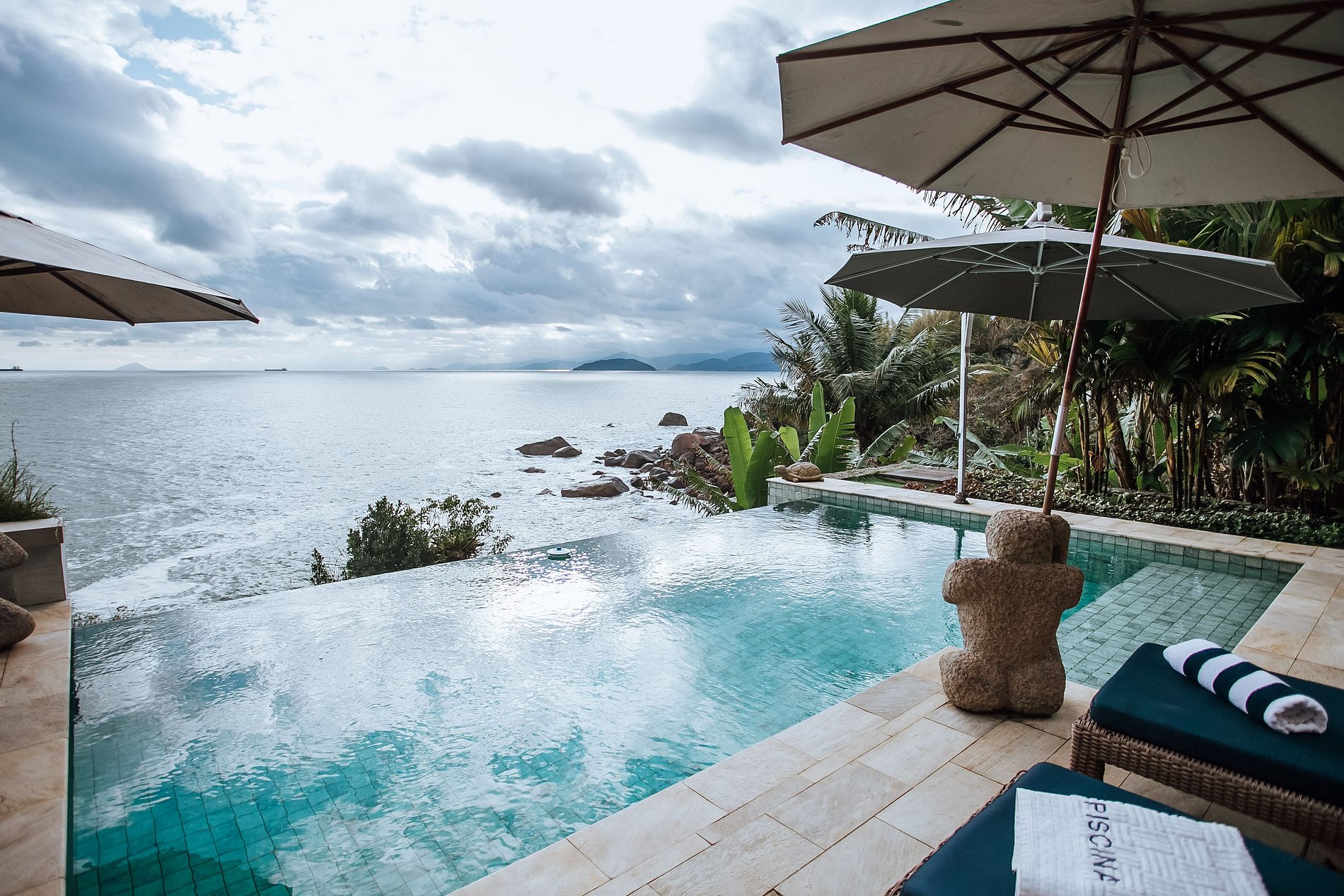 Casa incrível, localizada numa linda costeira ao Sul da ilha. Construída em 3 pavimentos, totalmente integrada à natureza, com uma vista de tirar o fôlego. São 4 suítes com ar-condicionado, que acomodam 8 pessoas confortavelmente. A parte interna conta com Wi-fi/SmarTV, salas de estar, jantar e cozinha integradas à uma ampla varanda. A área externa é um show à parte, com espaço gourmet, uma bela piscina de borda infinita, cercada por muito verde e conforto, com espreguiçadeiras e guarda-sóis.