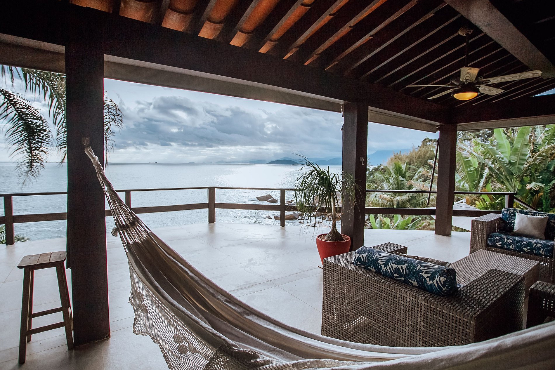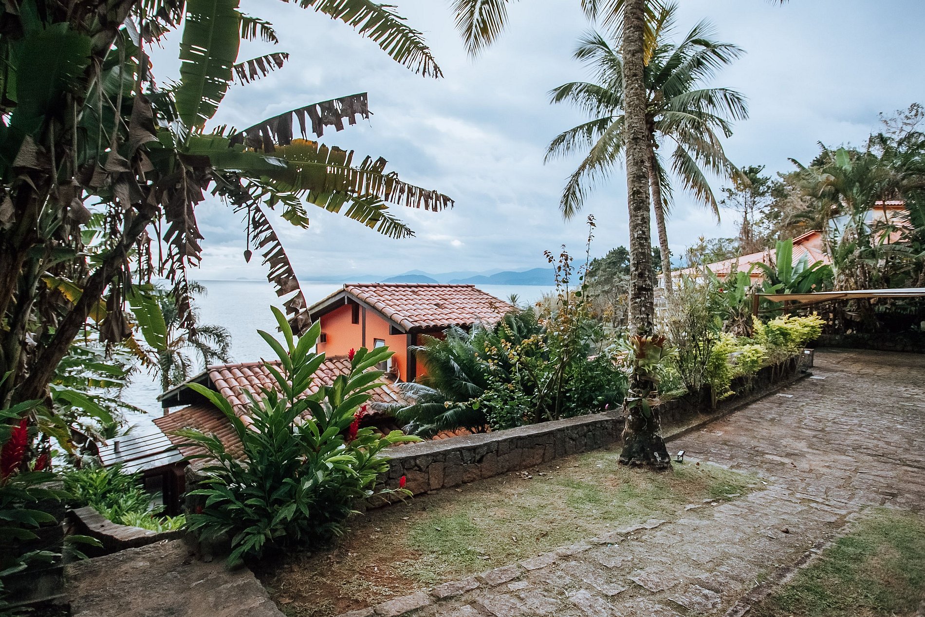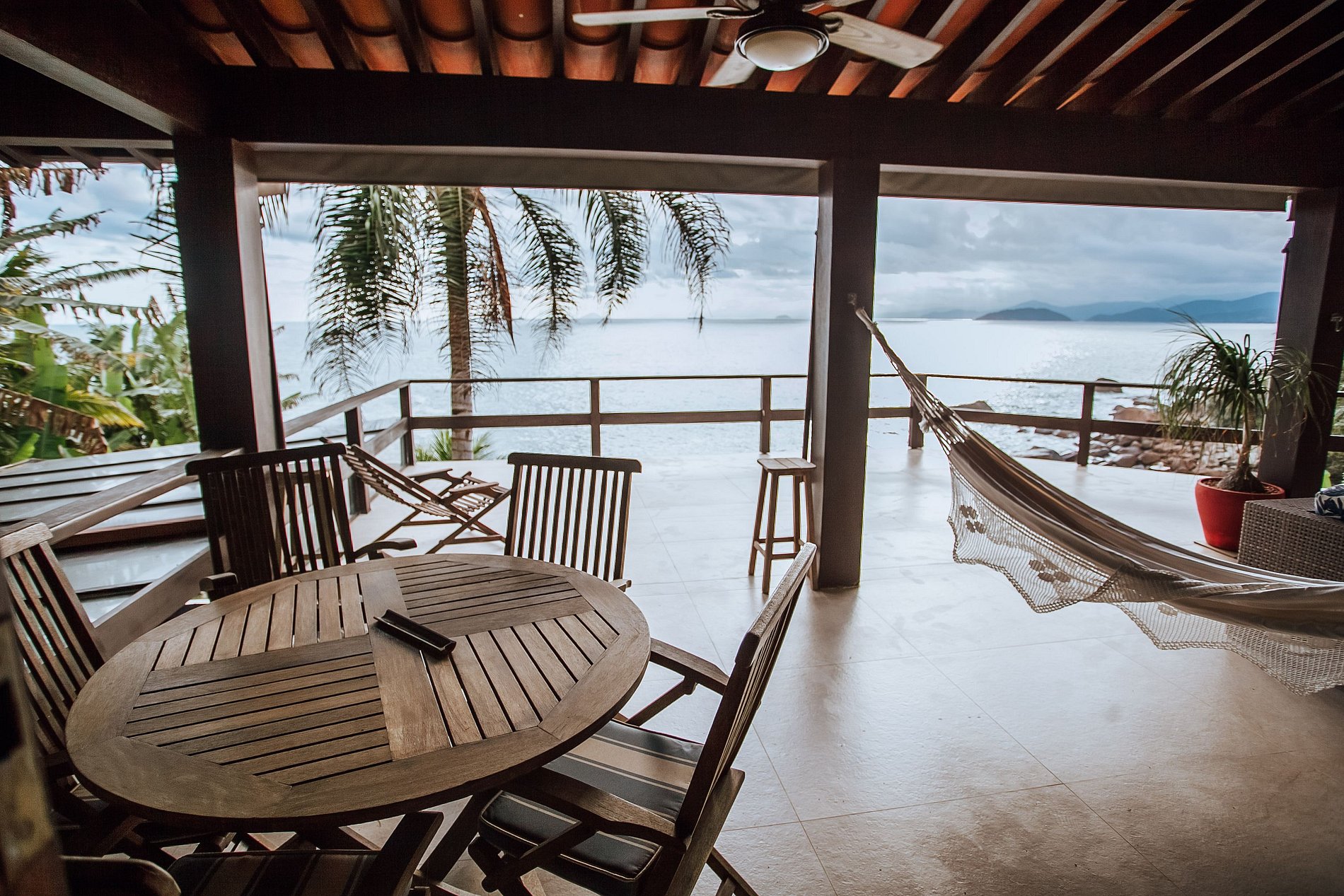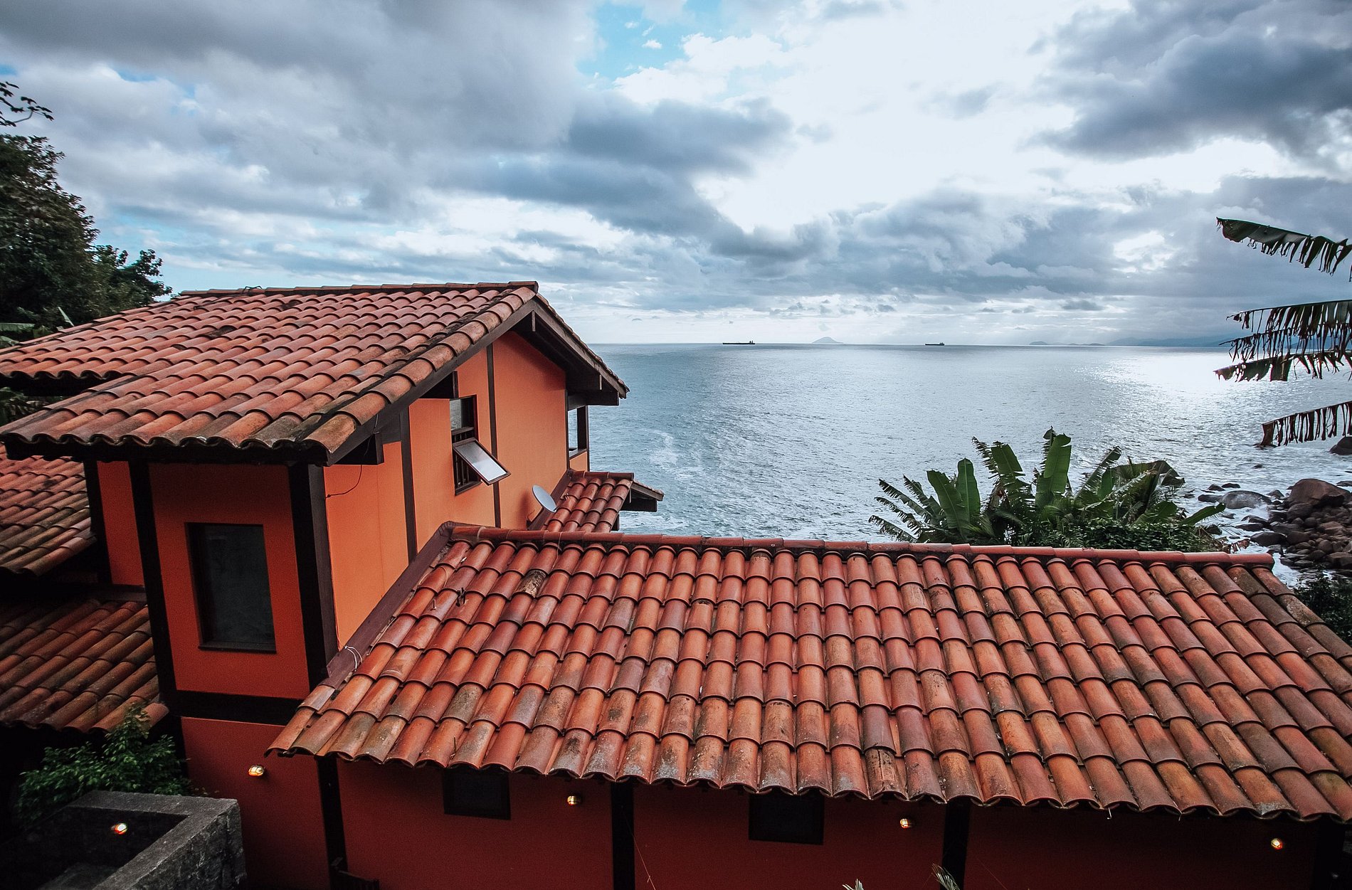 Casa costeira com 3 pavimentos, num local paradisíaco, ao Sul da ilha. De fácil acesso, fica a apenas 14 Km da balsa e muito próxima às piscinas naturais e demais praias locais. Construção integrada à uma bela área verde e de frente para o mar, oferece uma ótima infraestrutura, que garante muito conforto durante toda a estadia. Mesmo não tendo faixa de areia, a proximidade do mar traz uma sensação de tranquilidade e bem-estar.