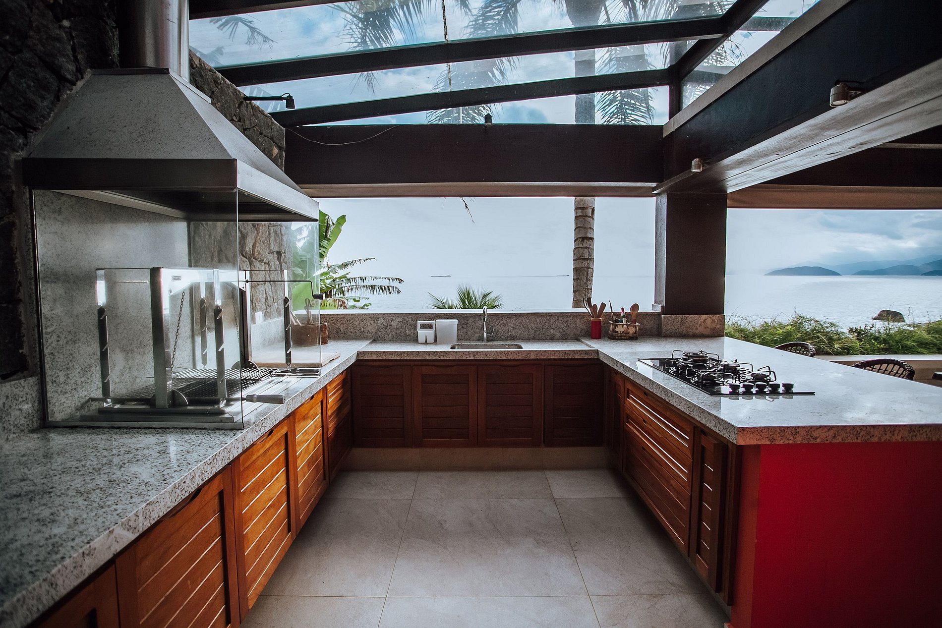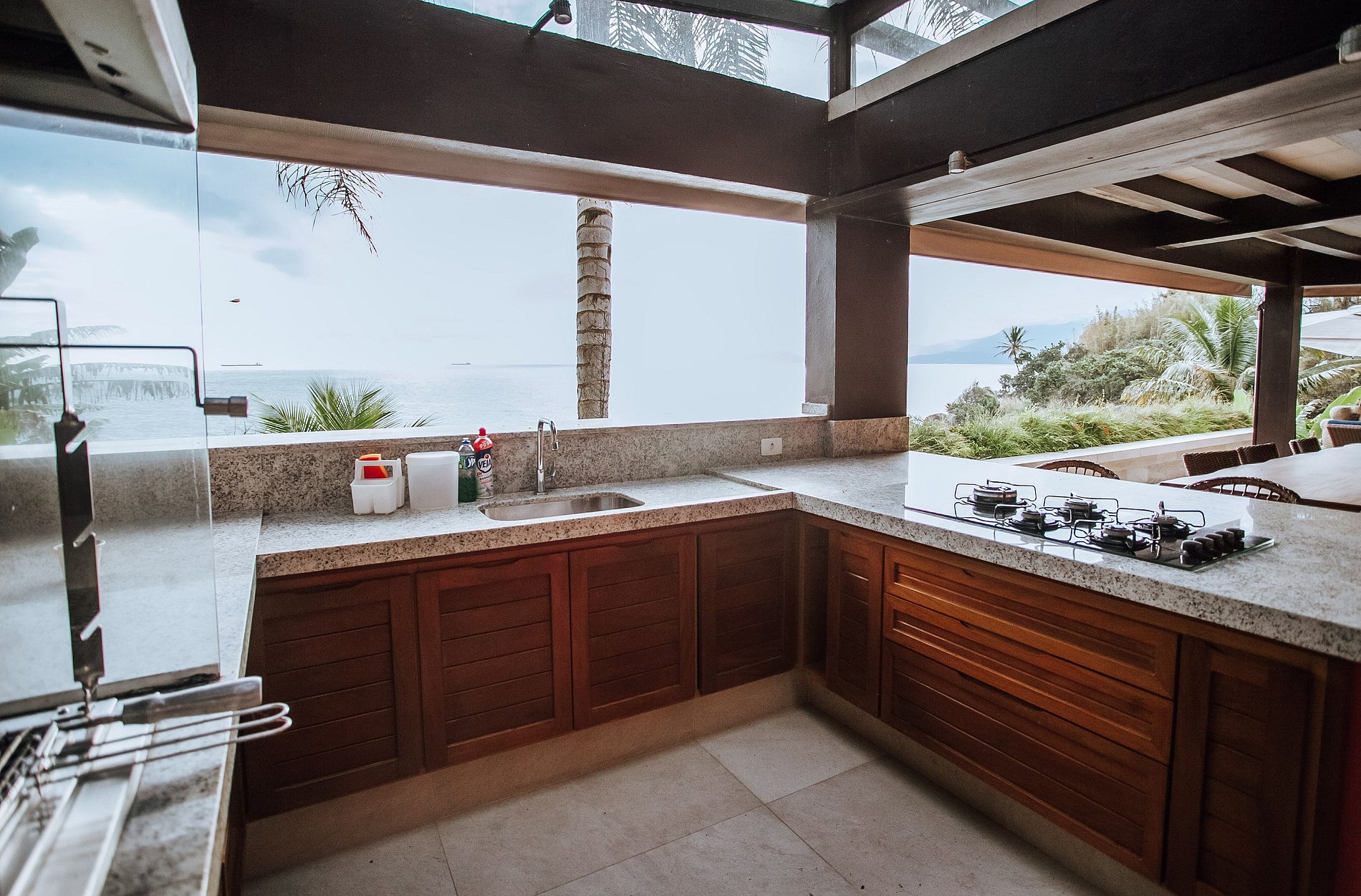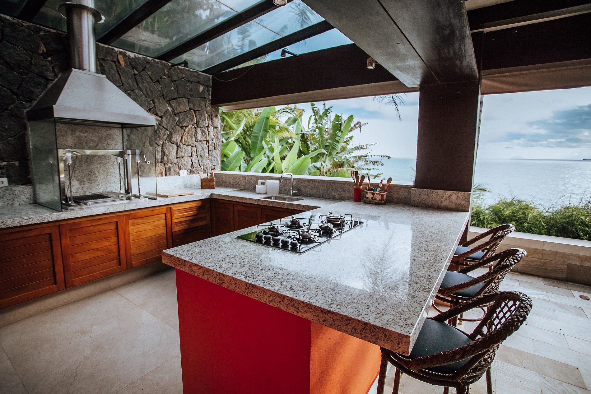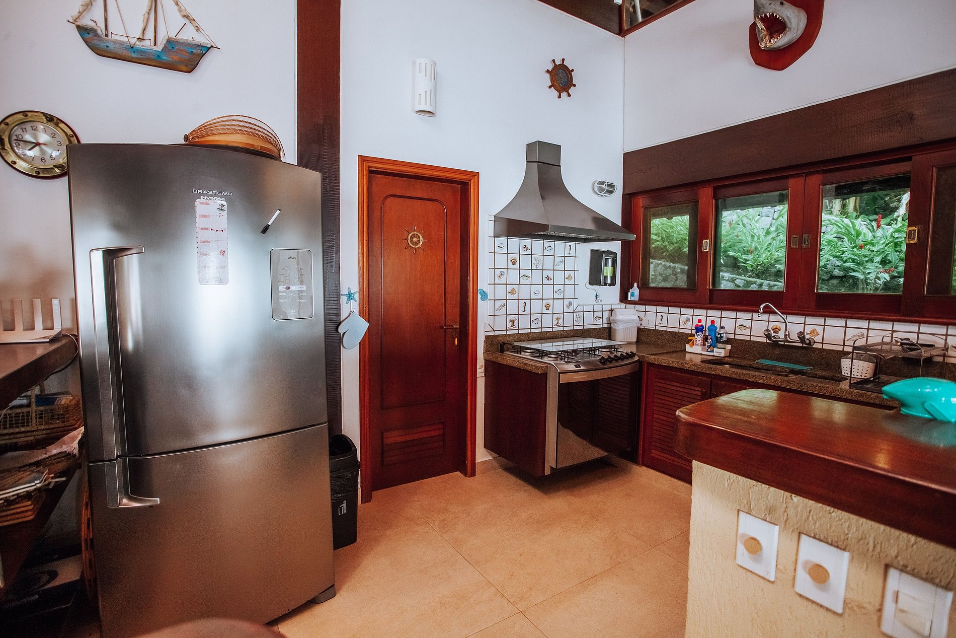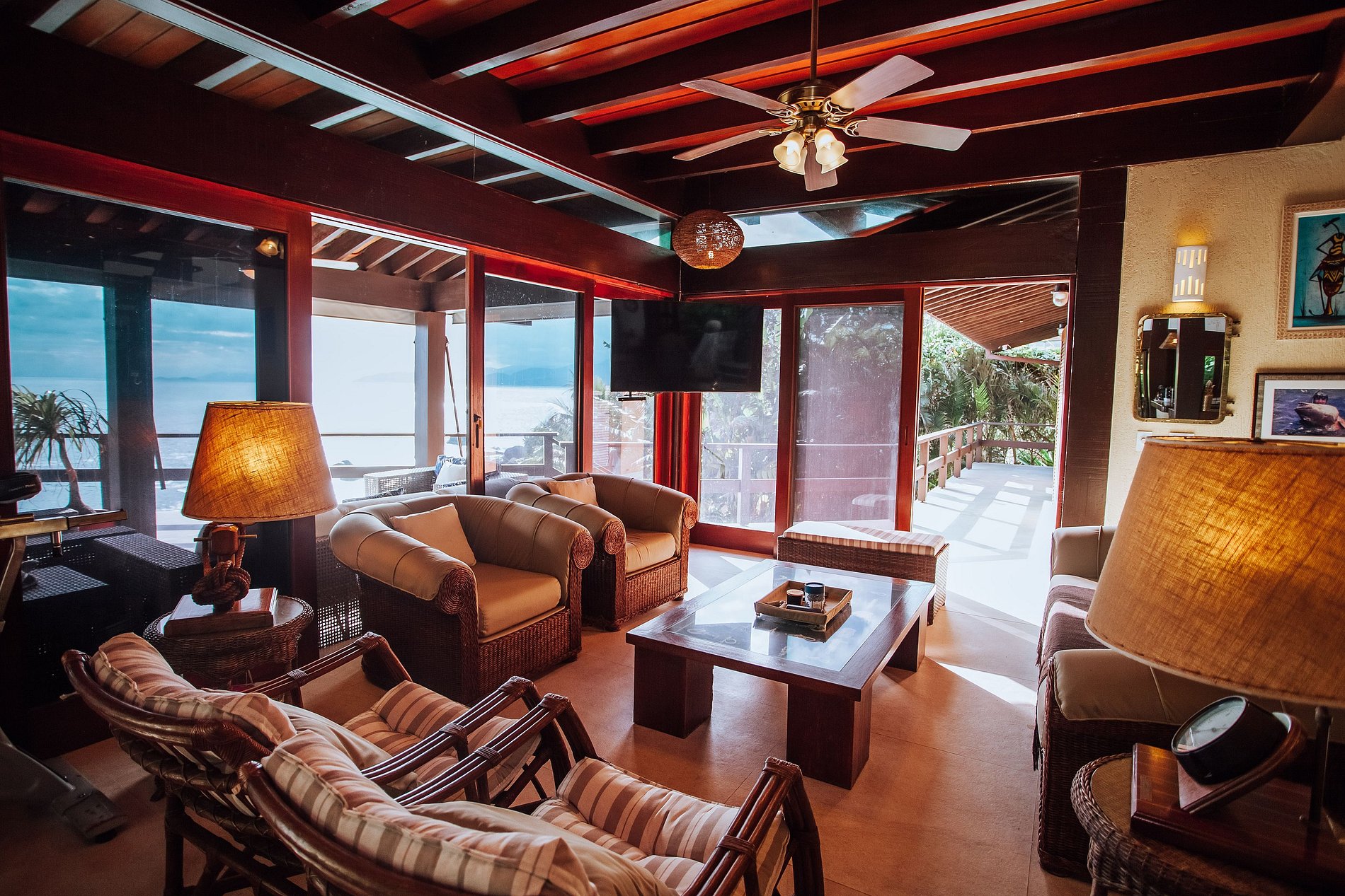 Casa costeira com 3 pavimentos, num local paradisíaco, ao Sul da ilha. De fácil acesso, fica a apenas 14 Km da balsa e muito próxima às piscinas naturais e demais praias locais. Construção integrada à uma bela área verde e de frente para o mar, oferece uma ótima infraestrutura, que garante muito conforto durante toda a estadia. Mesmo não tendo faixa de areia, a proximidade do mar traz uma sensação de tranquilidade e bem-estar.