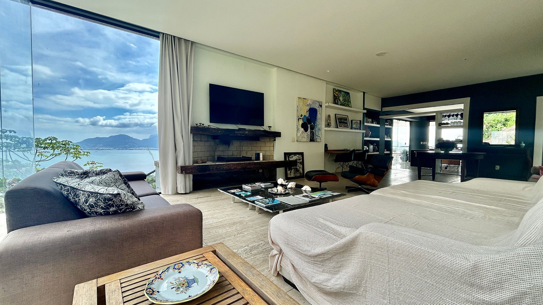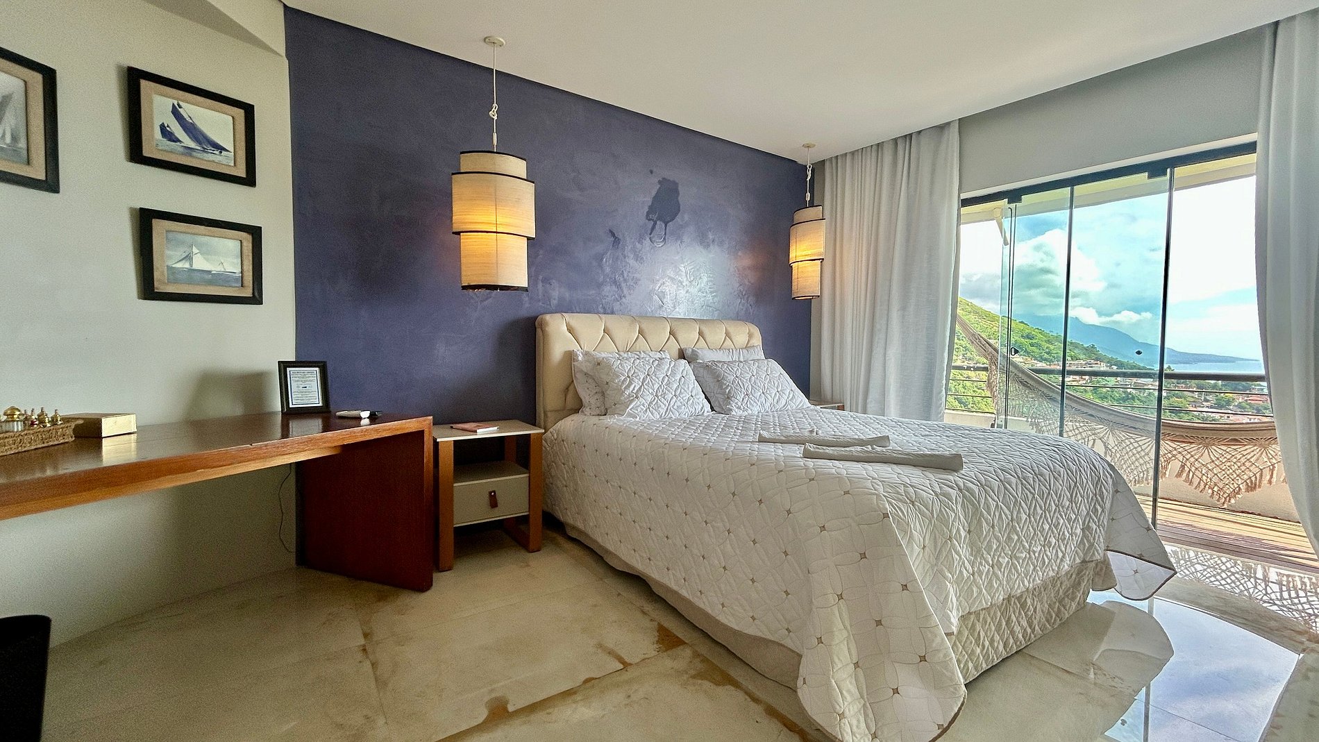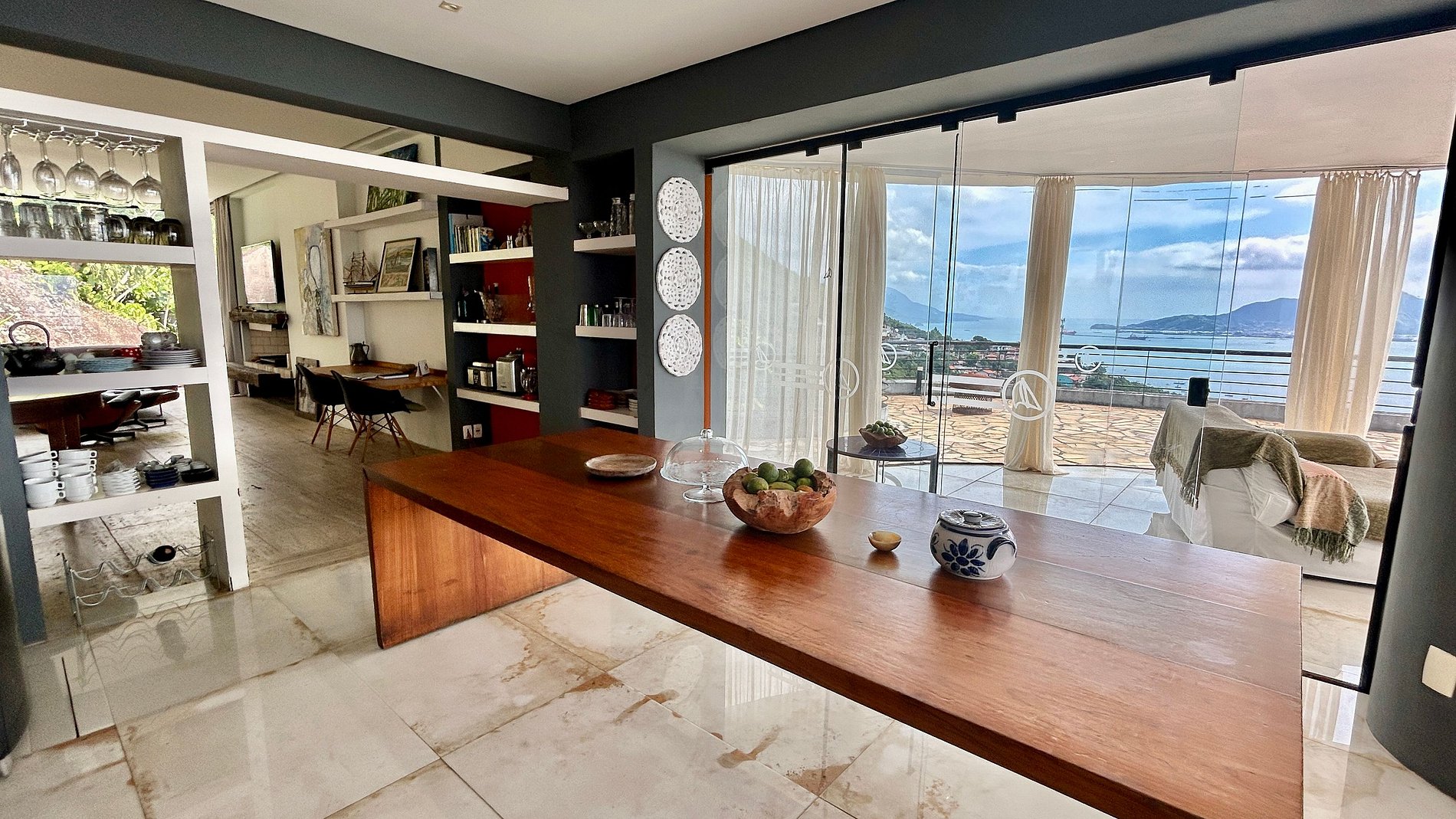 Casa no condomínio Sobreomar, a poucos metros da Vila, com um visual deslumbrante de mar e montanha! Ideal para até 16 pessoas. São 5 suítes com ar-condicionado. Área externa com piscina, varanda gourmet com churrasqueira, forno de pizza e mesa de sinuca. Ambientes internos integrados com salas de estar, jantar, TV, lareira e cozinha completa. Smart TV e Wi-Fi. Seu pet é bem-vindo! Uma experiência única na ilha!