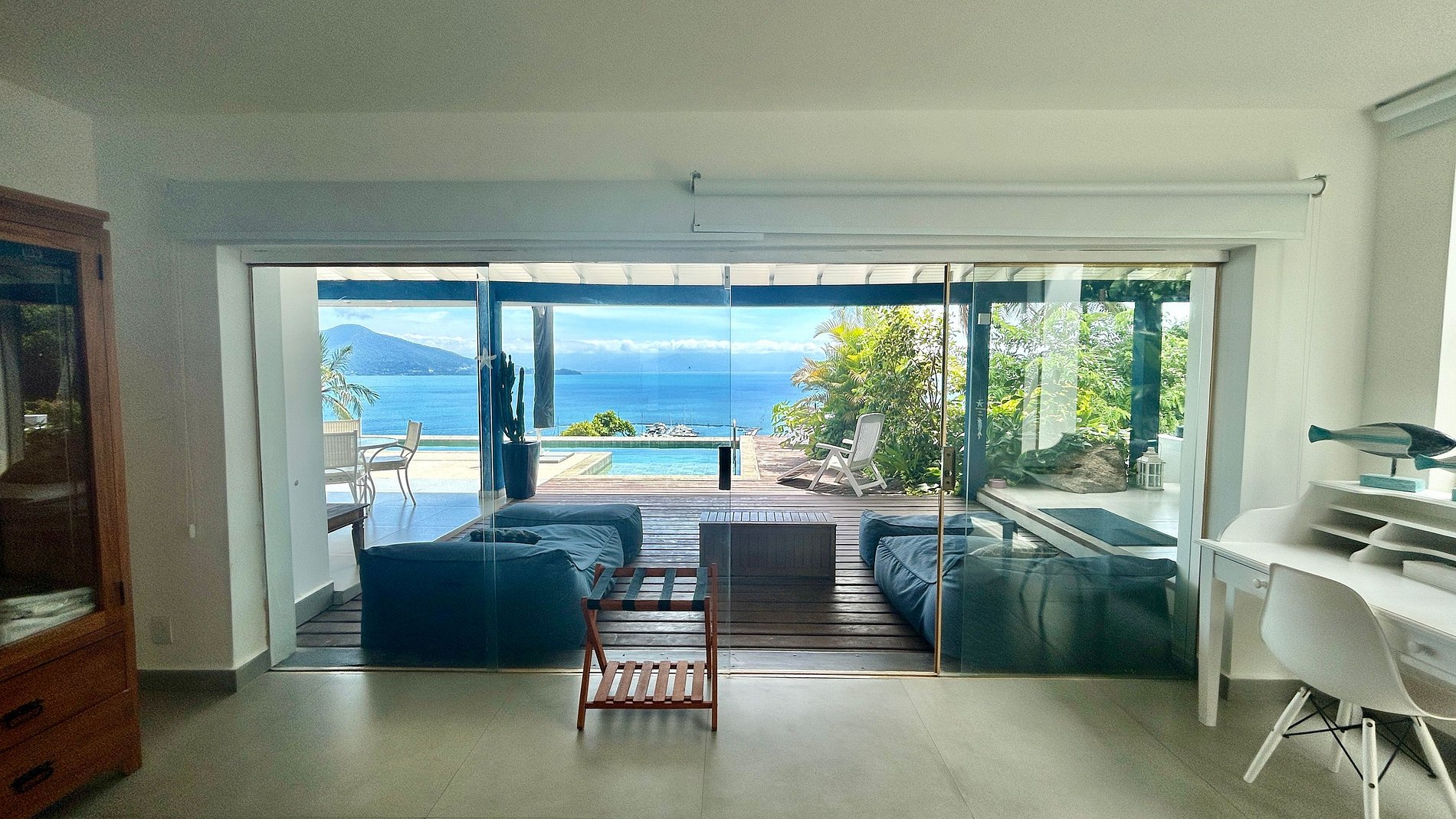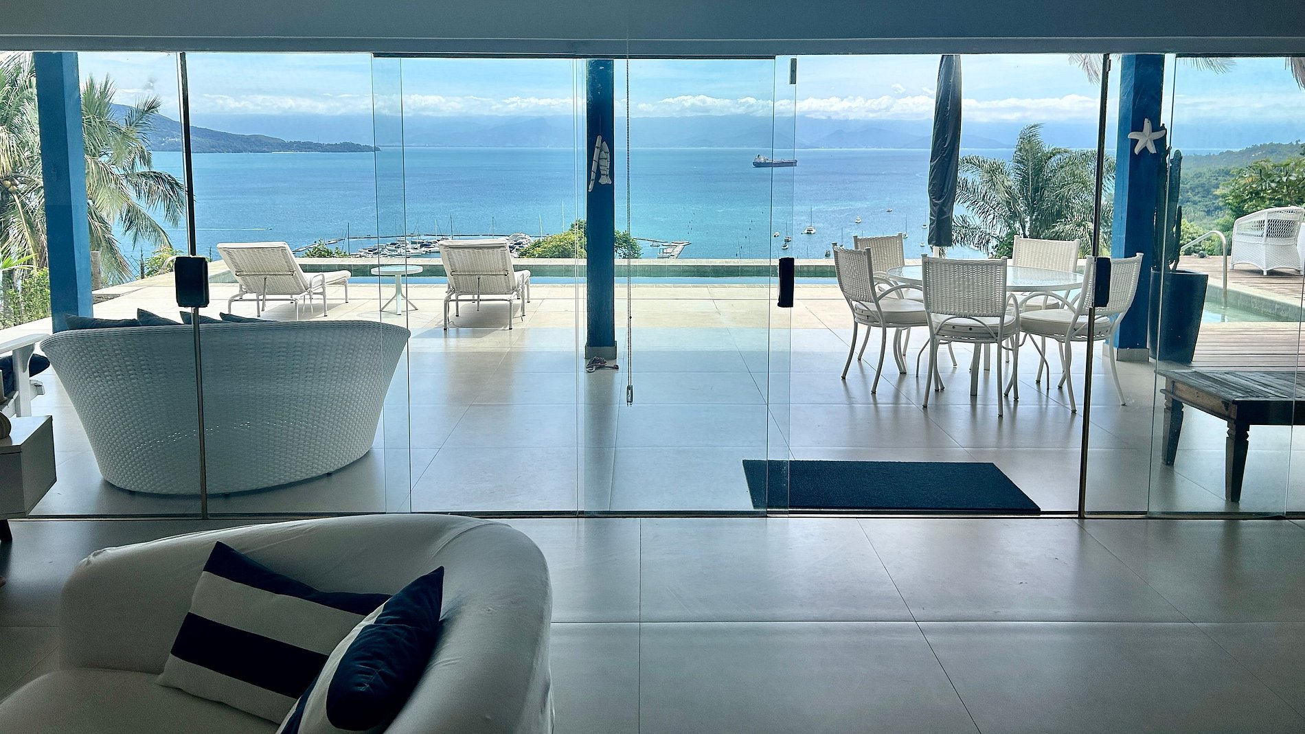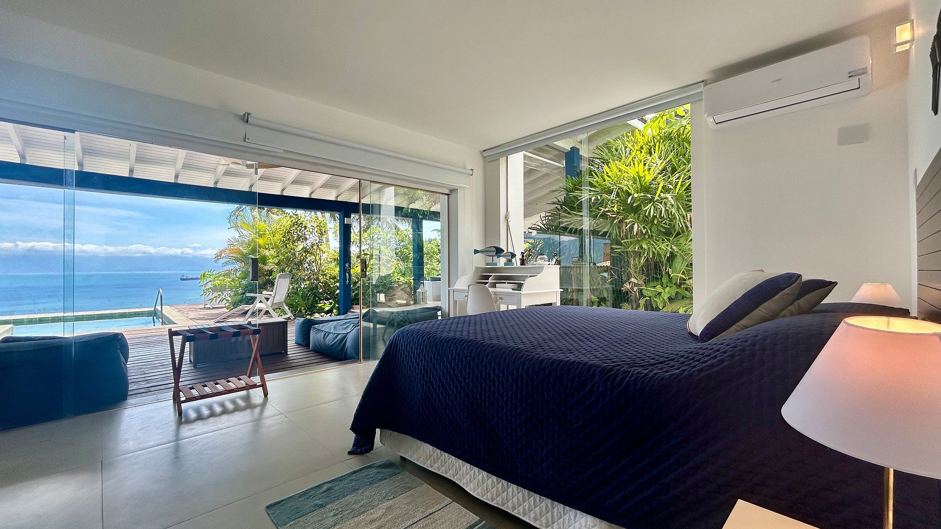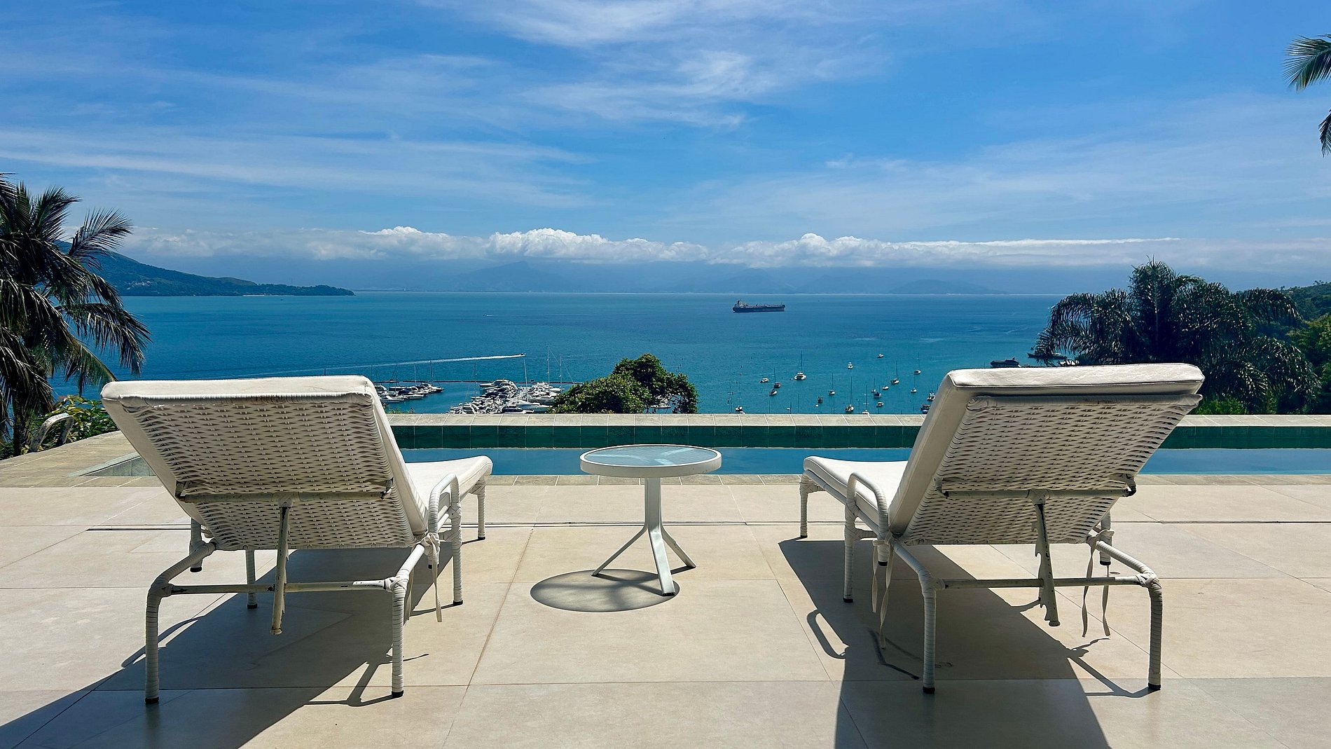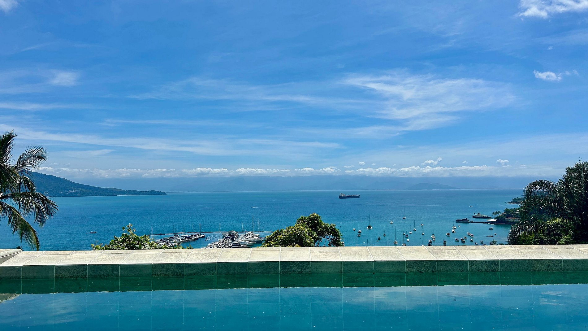 Uma das experiências mais encantadoras de Ilhabela! Refúgio confortável em meio à natureza, a poucos minutos da Vila Histórica. Ideal para 14 pessoas. São 6 suítes com ar-condicionado. Ambientes sociais amplos, com salas de estar, TV, jantar e cozinha completa, todos voltados para uma vista incrível de mar e montanha. Na área externa, espaço gourmet, piscina aquecida, sauna, deck e jardim com vista para o mar, cenário perfeito para reunir familiares e amigos.