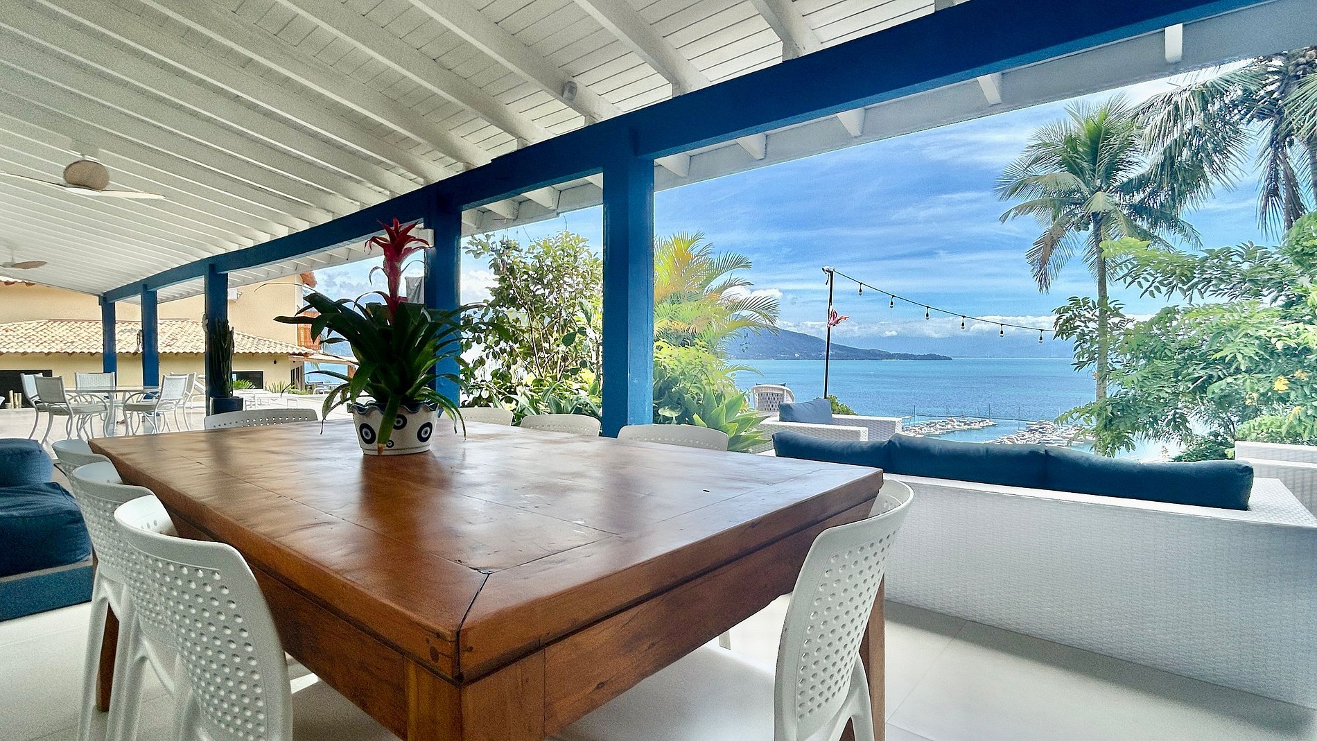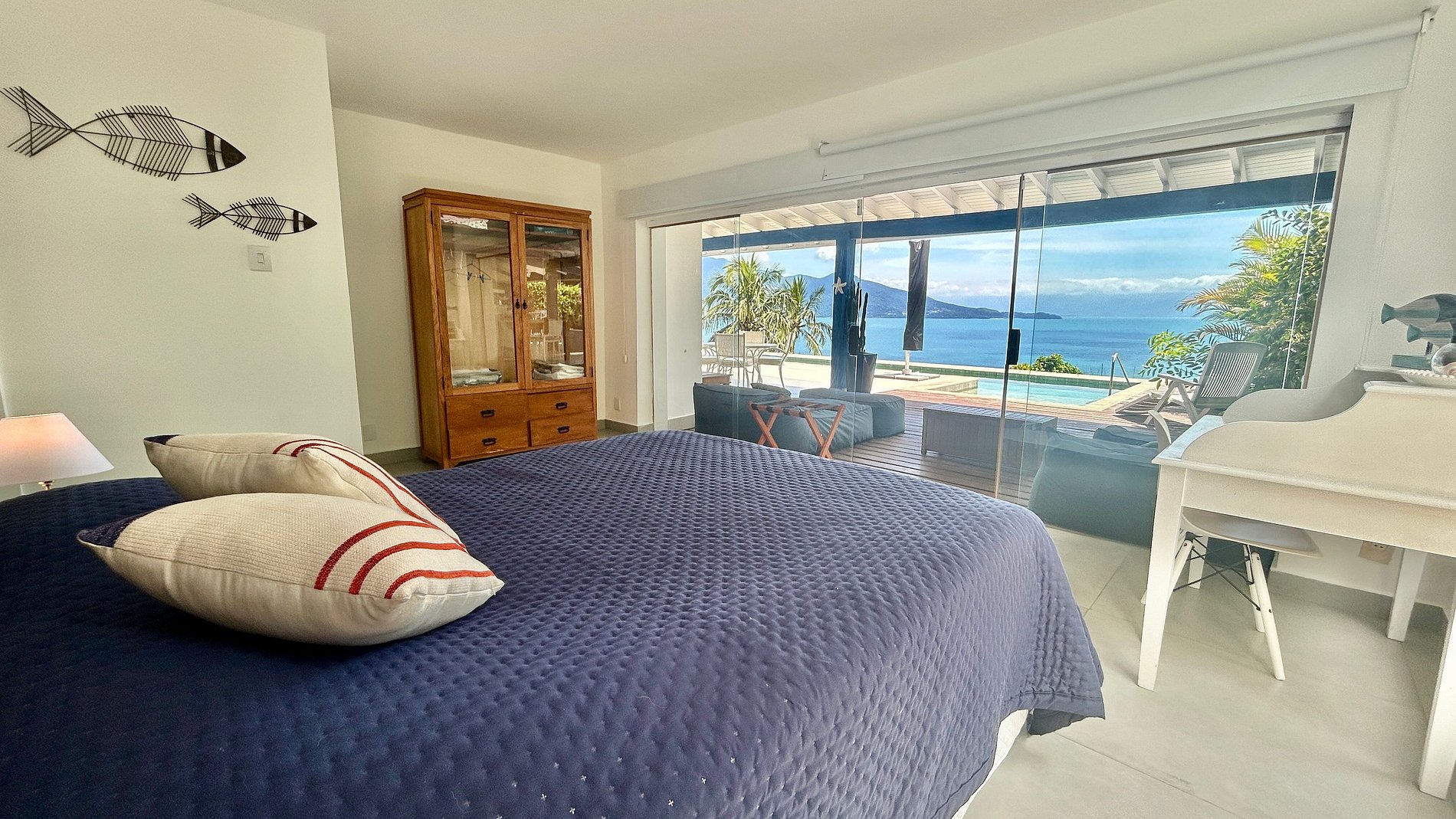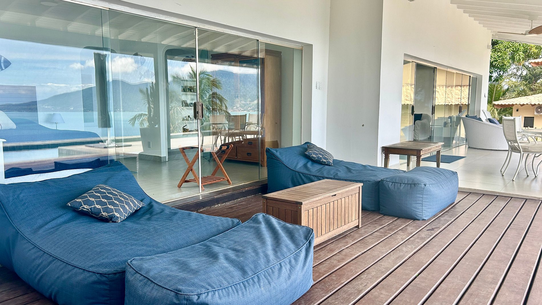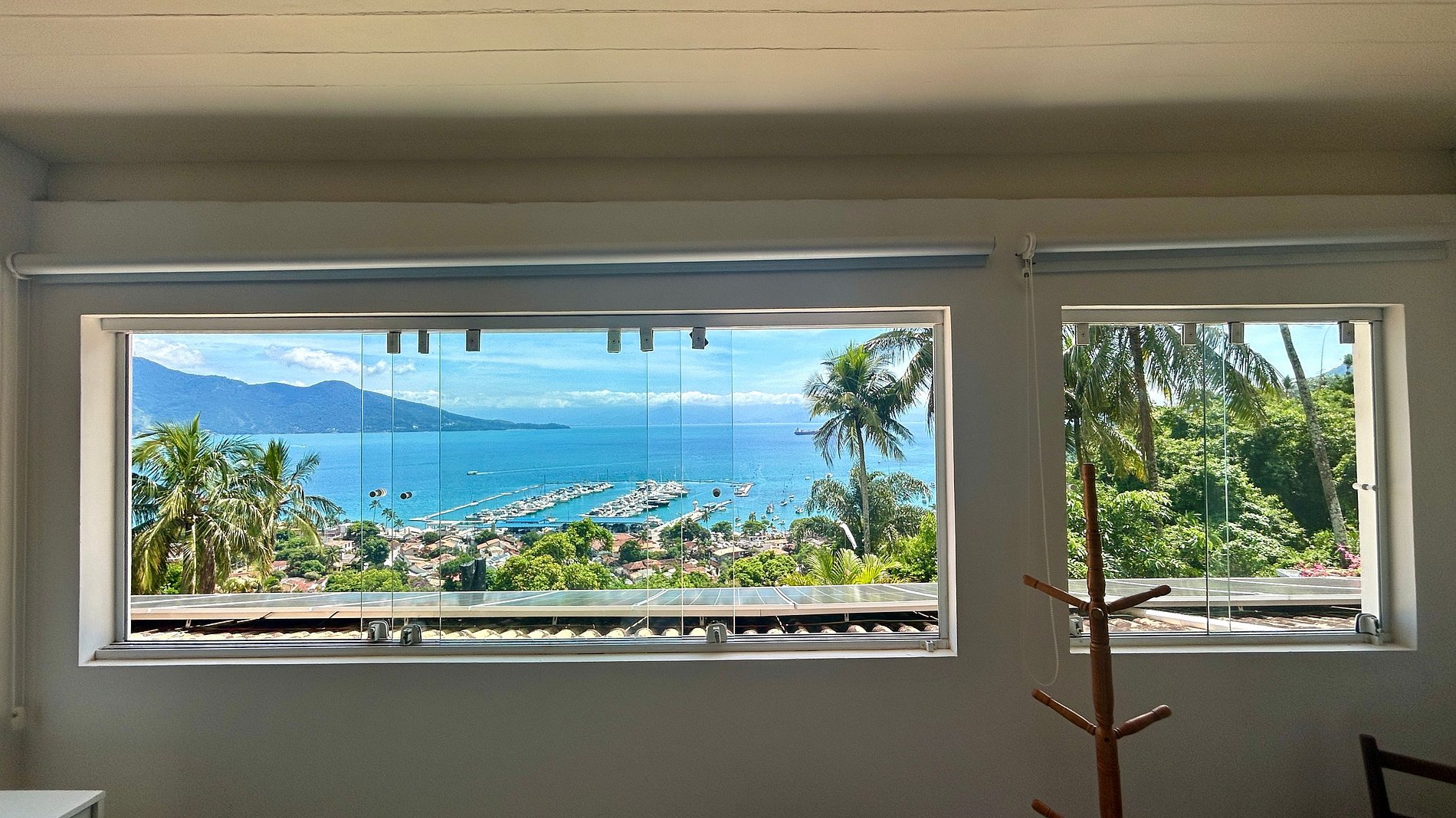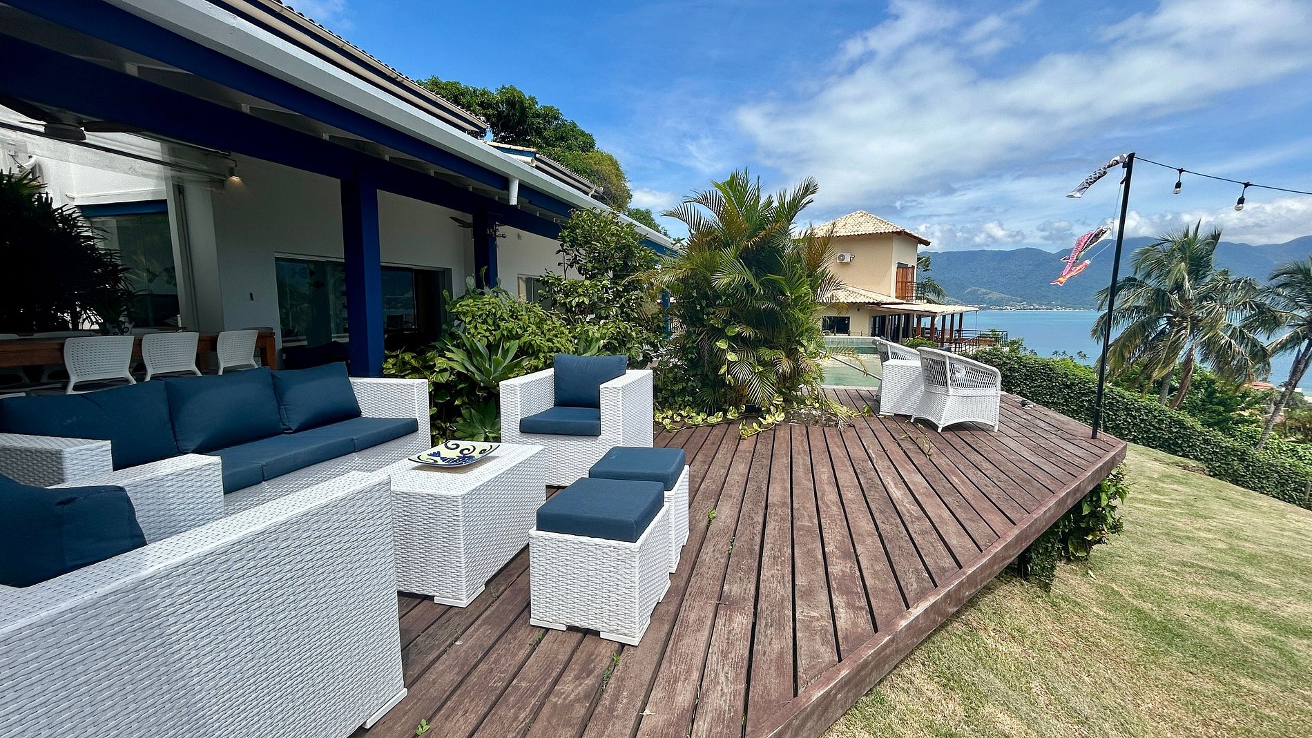 Uma das experiências mais encantadoras de Ilhabela! Refúgio confortável em meio à natureza, a poucos minutos da Vila Histórica. Ideal para 14 pessoas. São 6 suítes com ar-condicionado. Ambientes sociais amplos, com salas de estar, TV, jantar e cozinha completa, todos voltados para uma vista incrível de mar e montanha. Na área externa, espaço gourmet, piscina aquecida, sauna, deck e jardim com vista para o mar, cenário perfeito para reunir familiares e amigos.