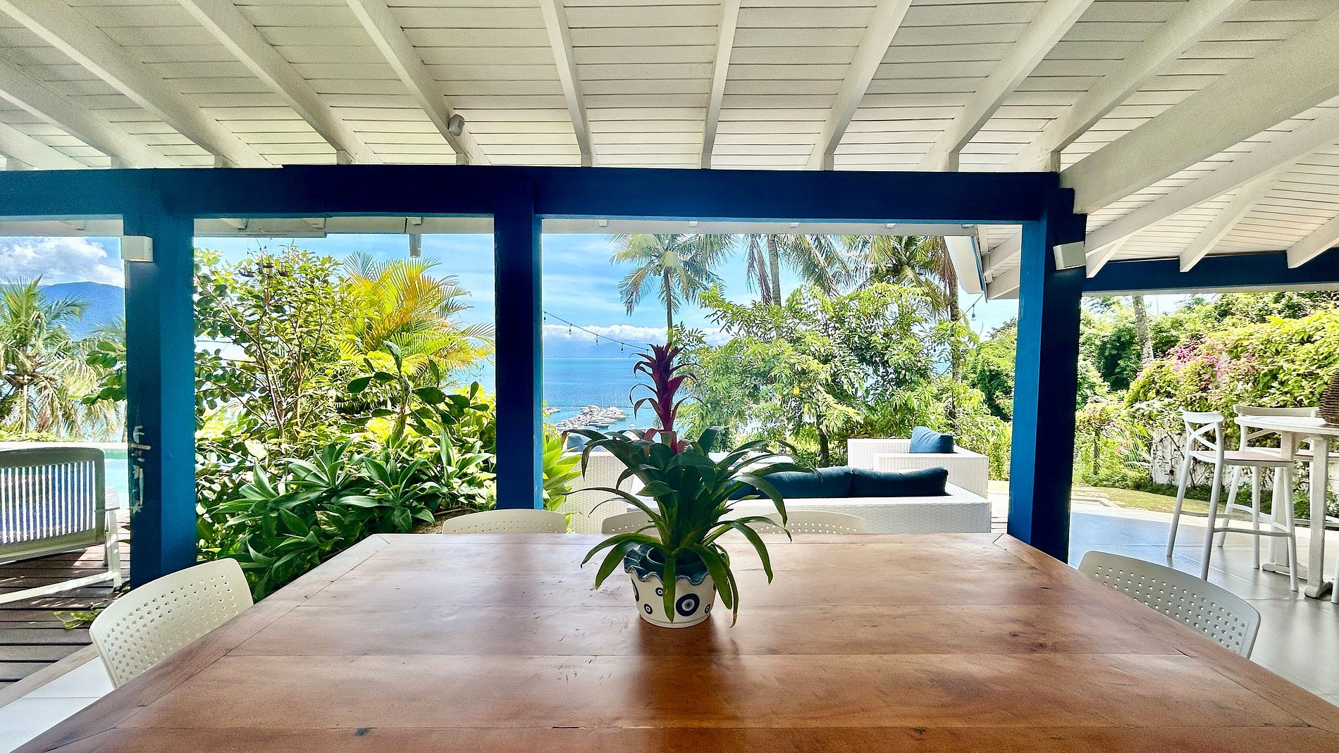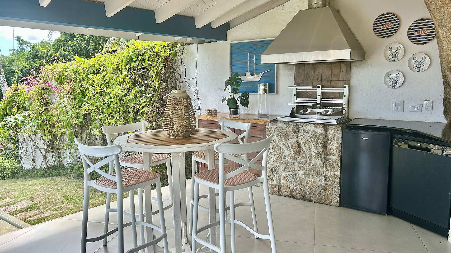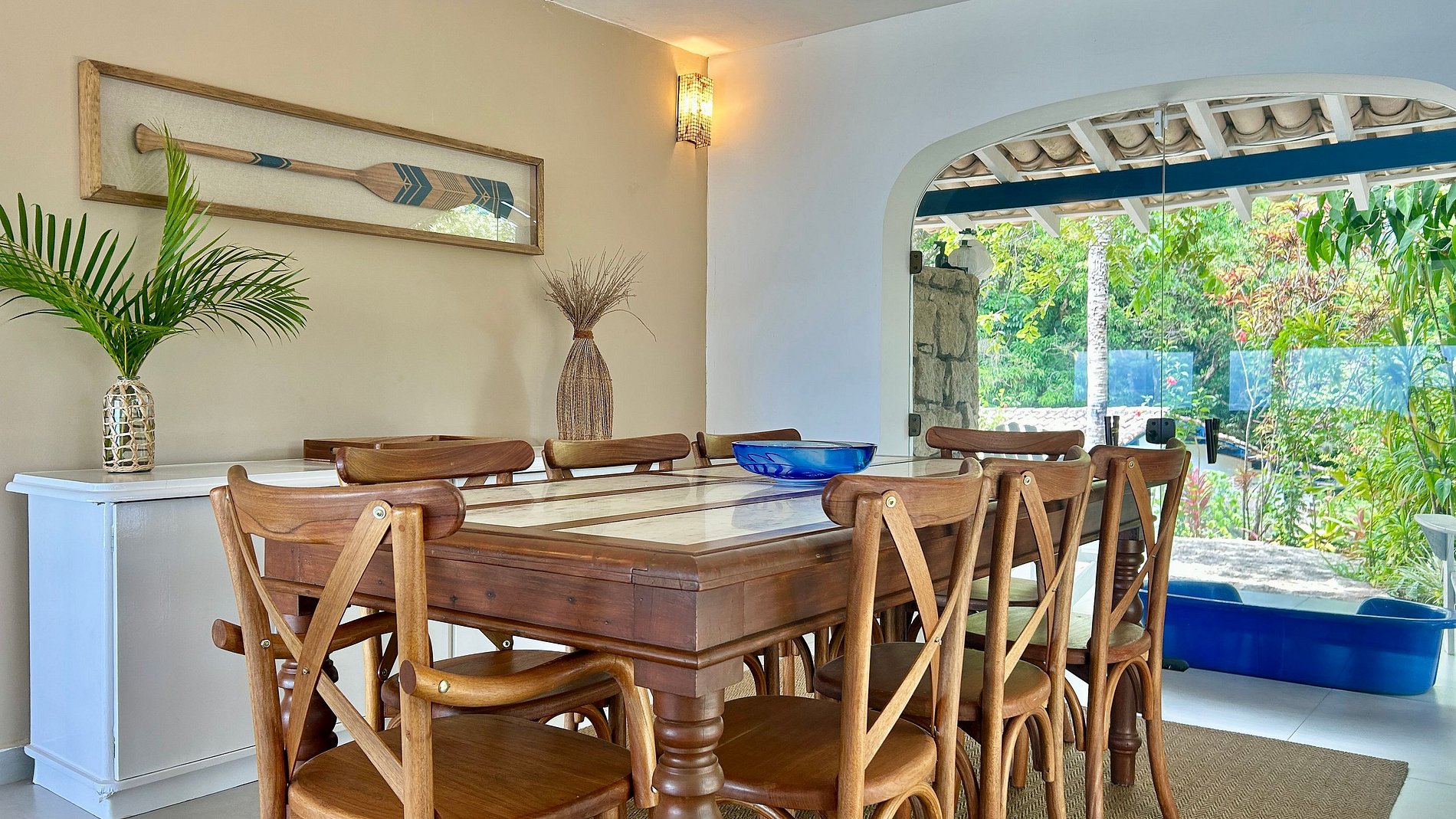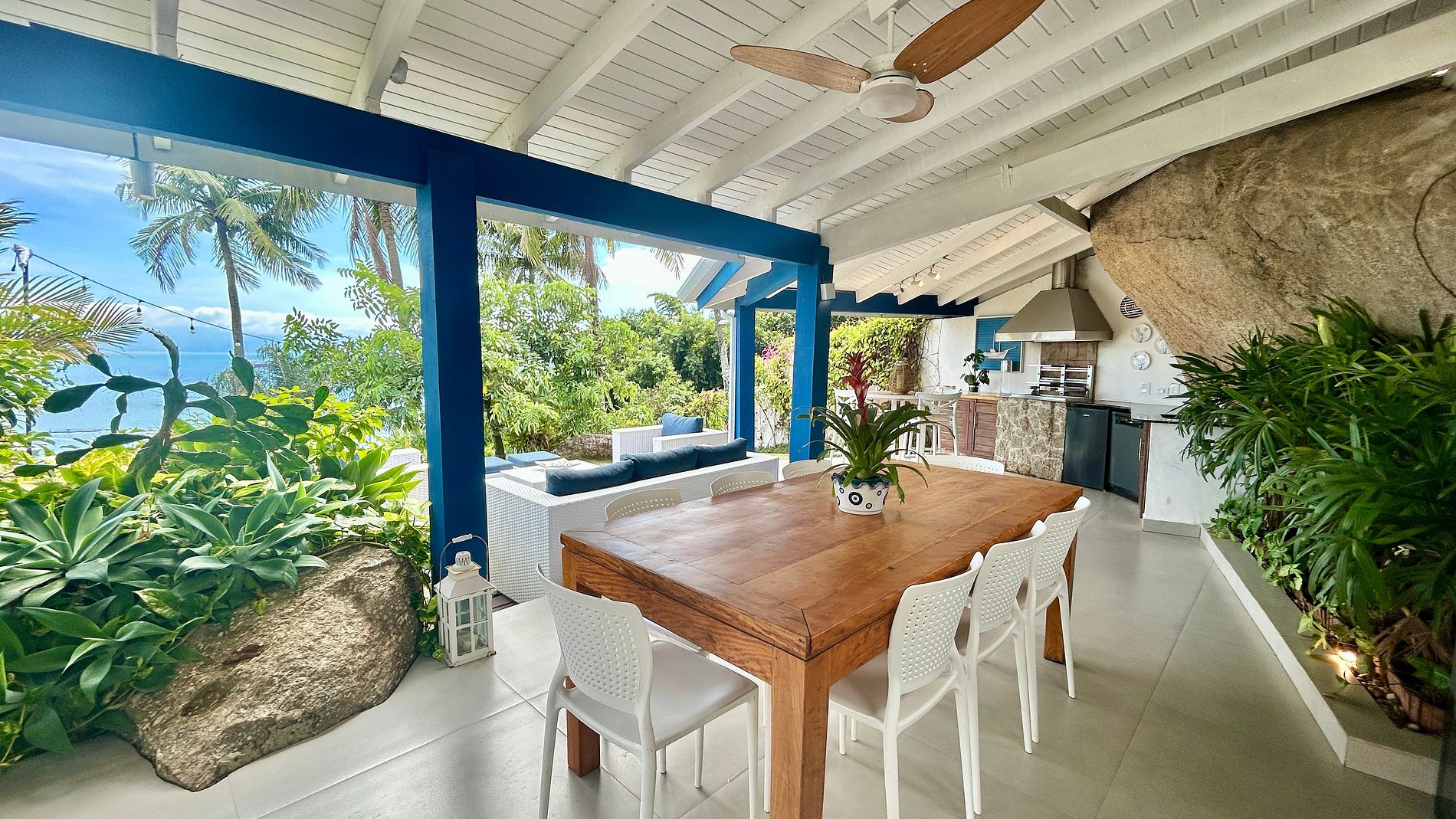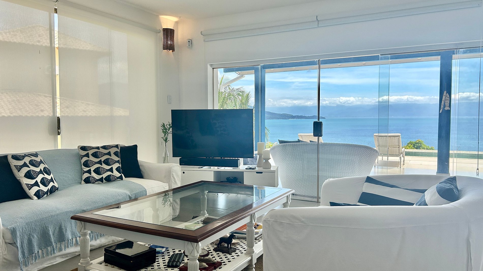 Uma das experiências mais encantadoras de Ilhabela! Refúgio confortável em meio à natureza, a poucos minutos da Vila Histórica. Ideal para 14 pessoas. São 6 suítes com ar-condicionado. Ambientes sociais amplos, com salas de estar, TV, jantar e cozinha completa, todos voltados para uma vista incrível de mar e montanha. Na área externa, espaço gourmet, piscina aquecida, sauna, deck e jardim com vista para o mar, cenário perfeito para reunir familiares e amigos.
