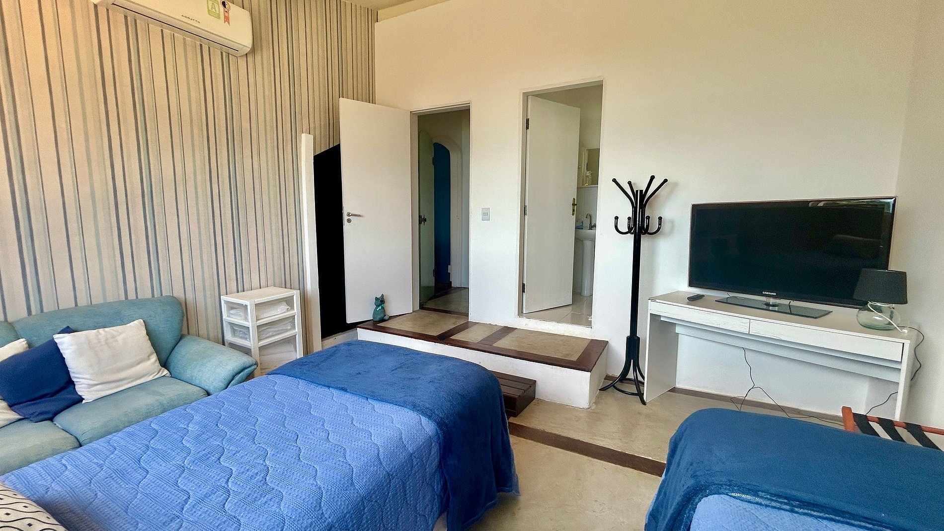 São 6 suítes, todas com ar-condicionado e enxoval completo, na seguinte configuração: