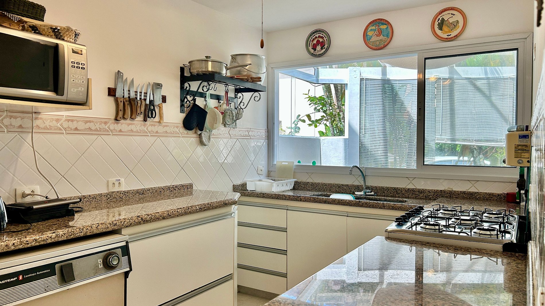 - Cozinha bem equipada, com fogão, forno, geladeira, freezer, micro-ondas, lava louças, filtro de água, liquidificador, torradeira, cafeteira Nespresso, louças, talheres e demais utensílios;