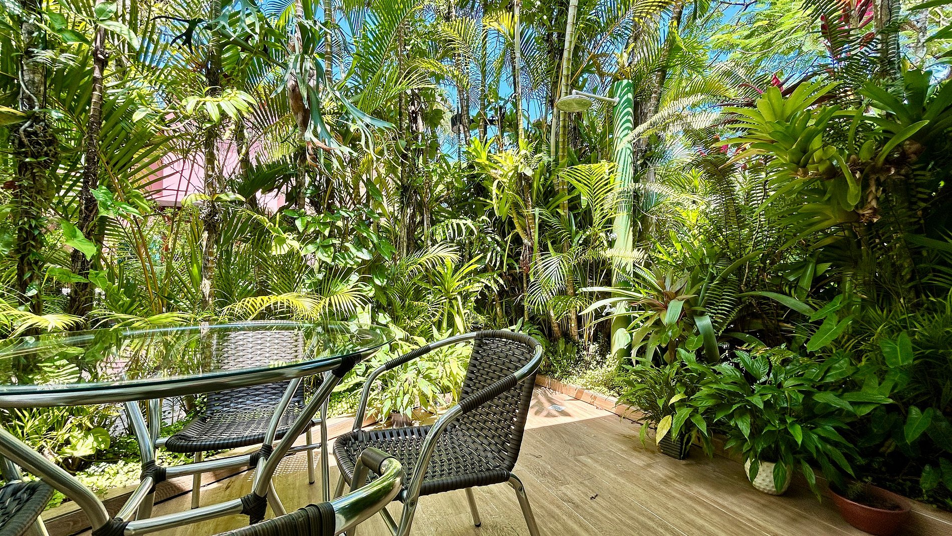 - Área externa deliciosa, que conta com ampla varanda mobiliada, com espaço gourmet com mesas para refeições ao ar livre, churrasqueira, forno de pizza e uma ducha para ajudar a refrescar ao chegar da praia;
