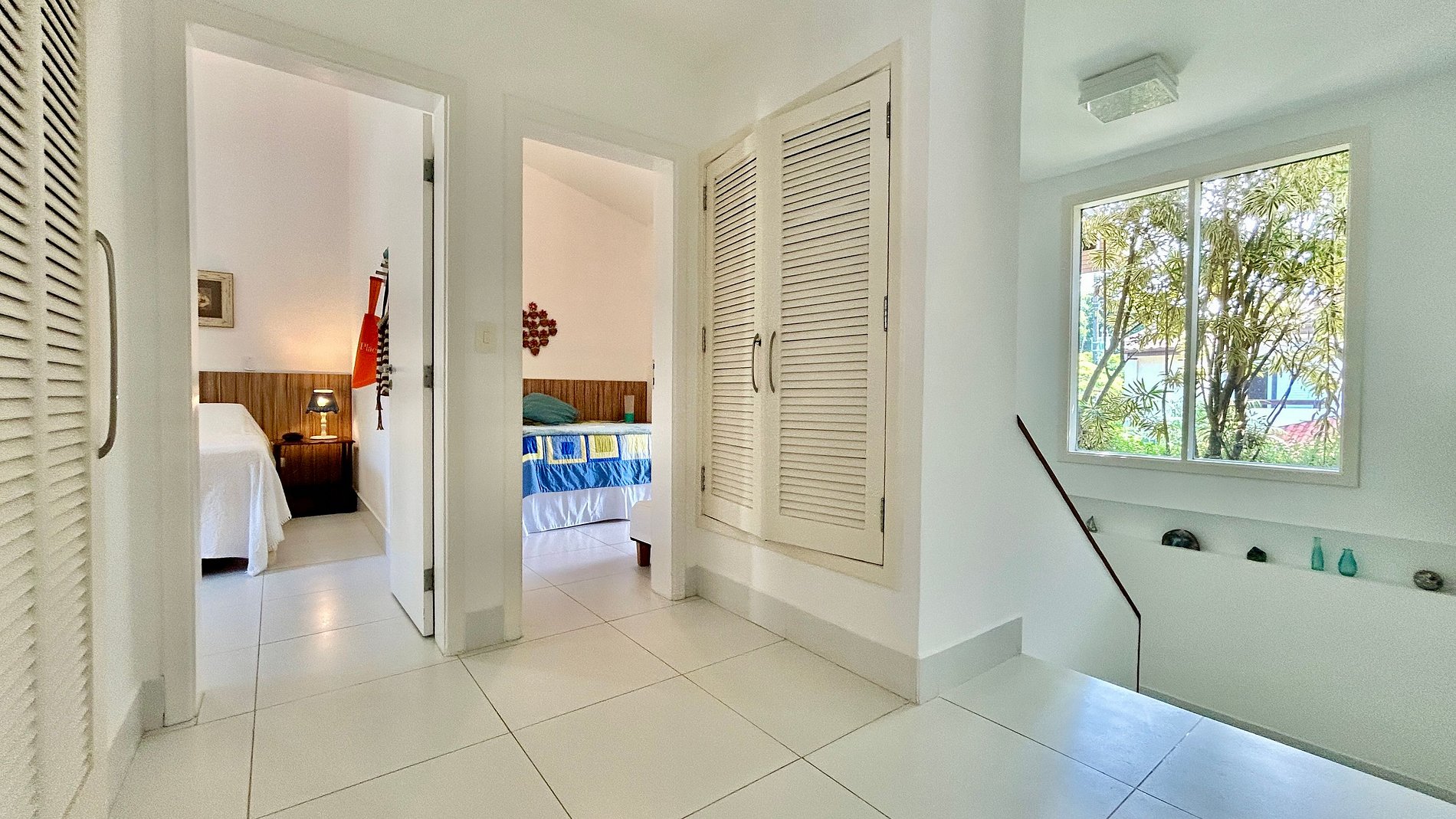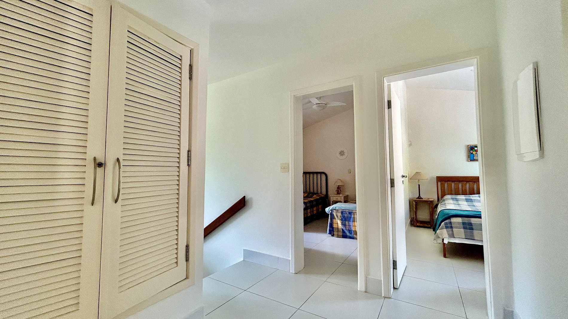 São 4 suítes, todas com ar-condicionado e enxoval completo, na seguinte configuração: