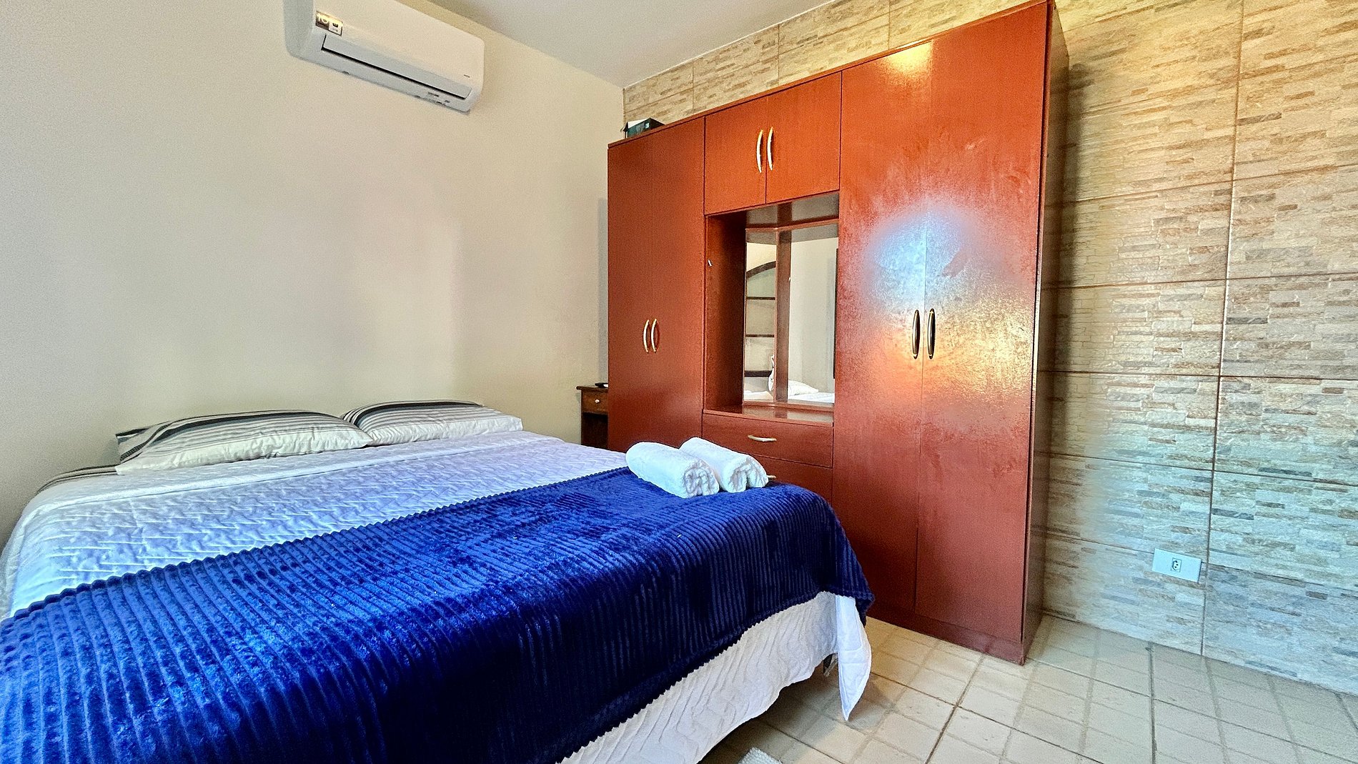 - São 1 quarto e 1 suíte, ambos com ar-condicionado, armários e ventiladores, na seguinte confirmação: