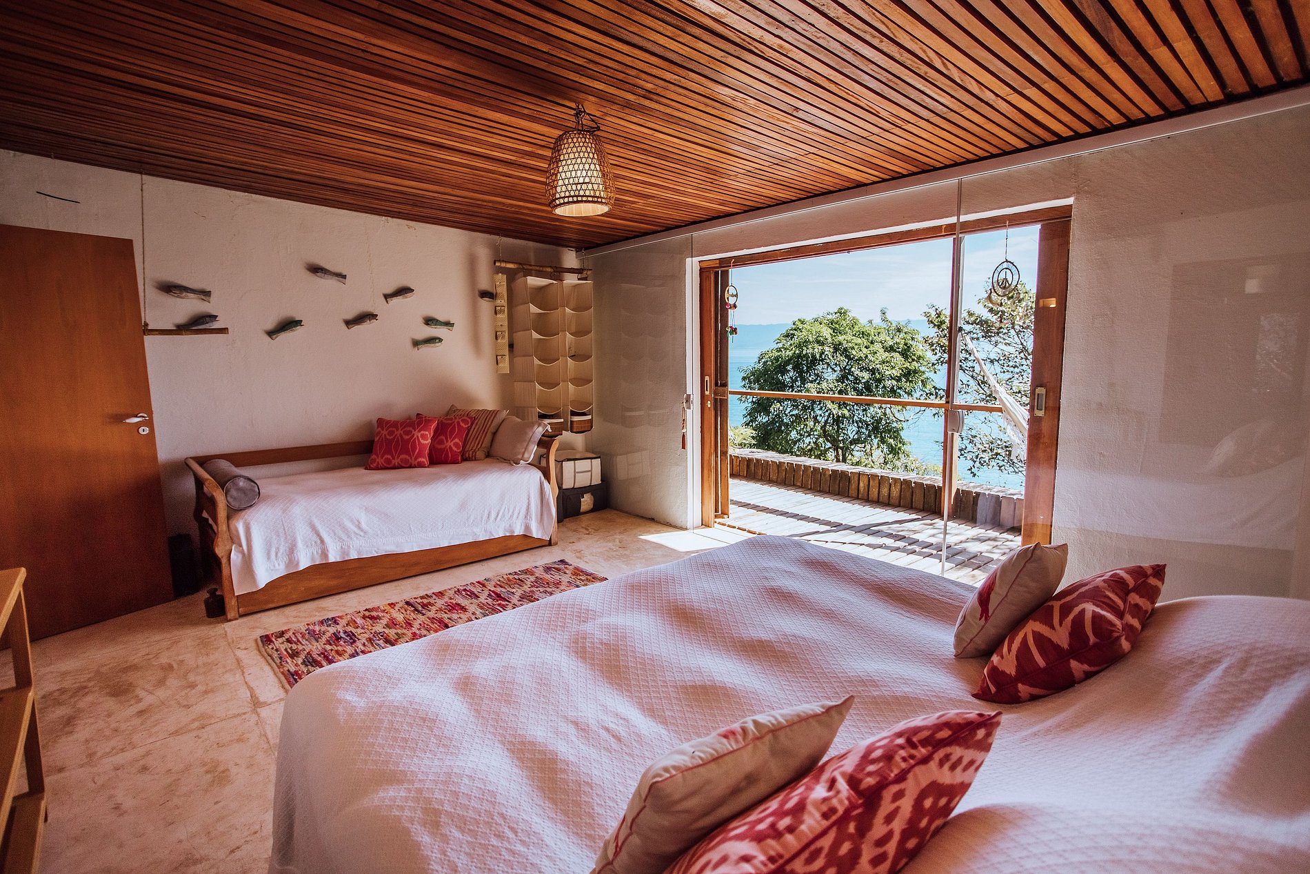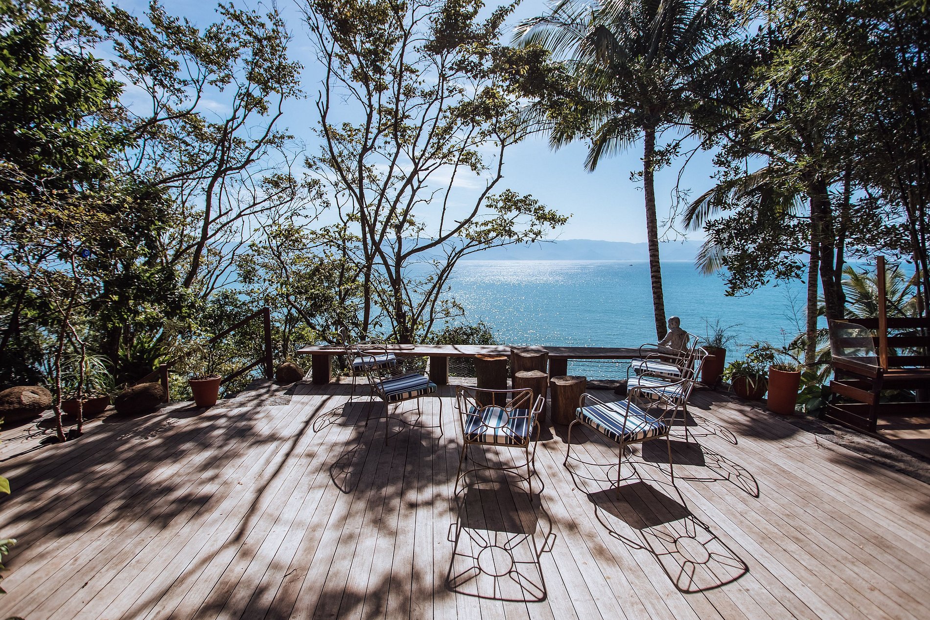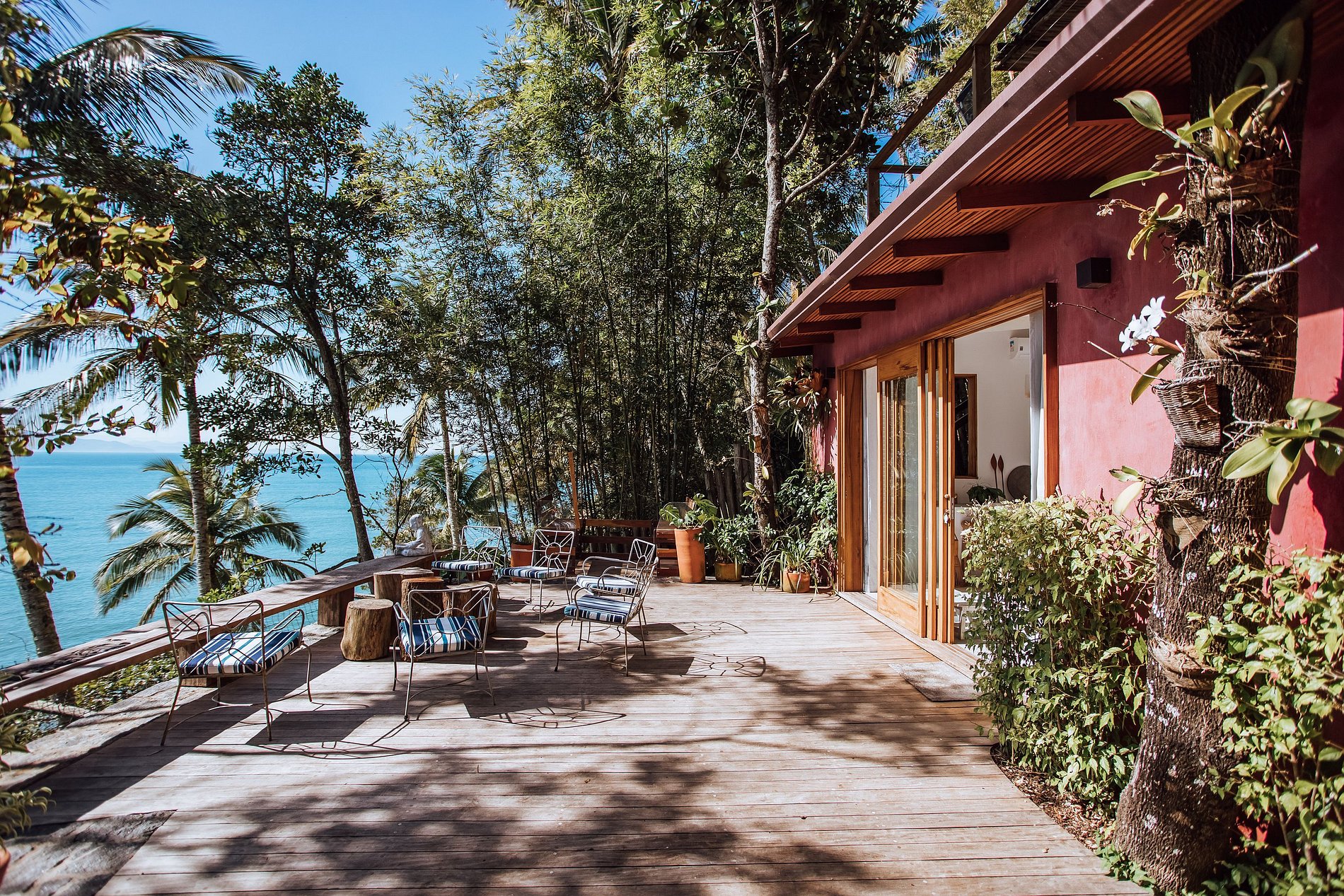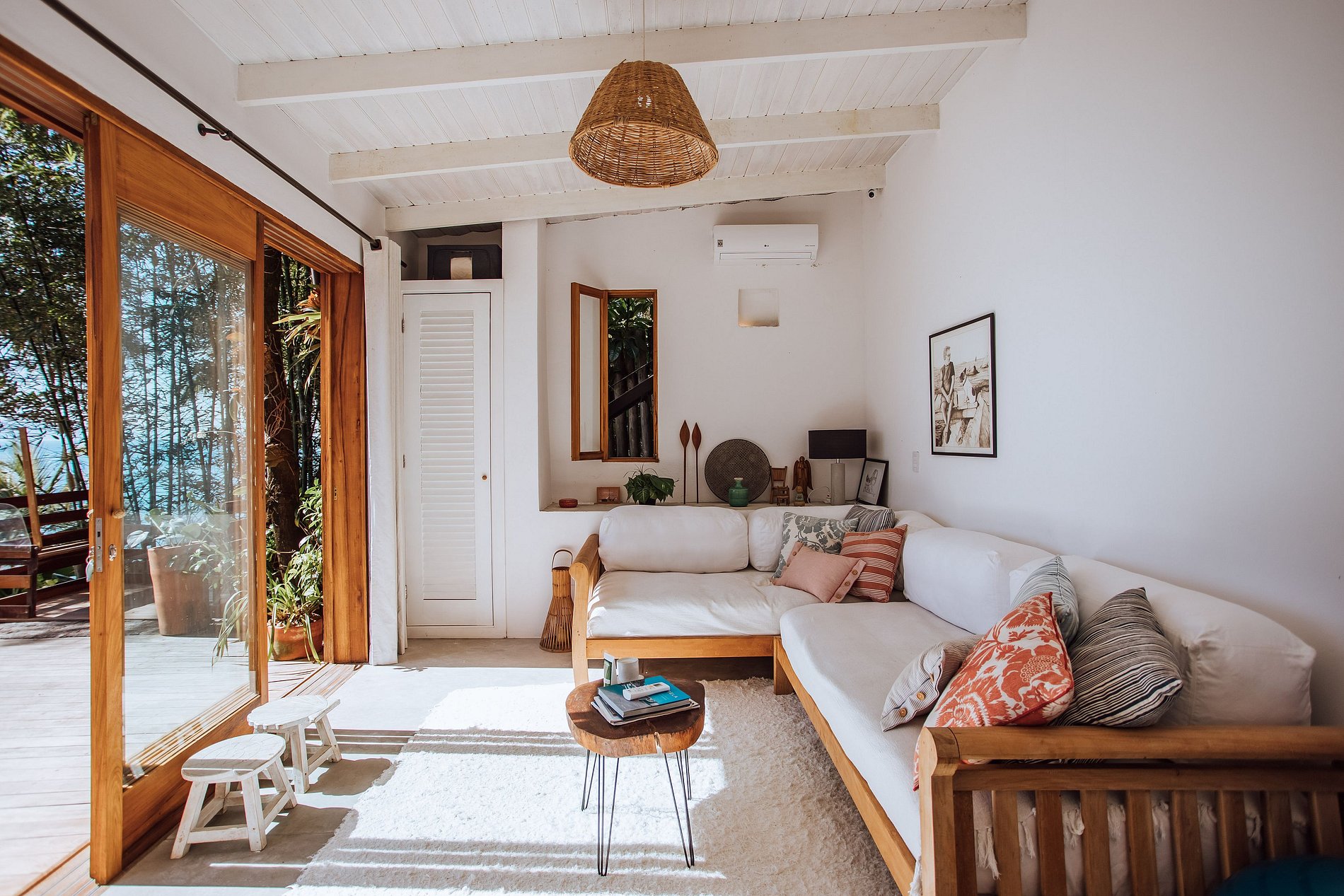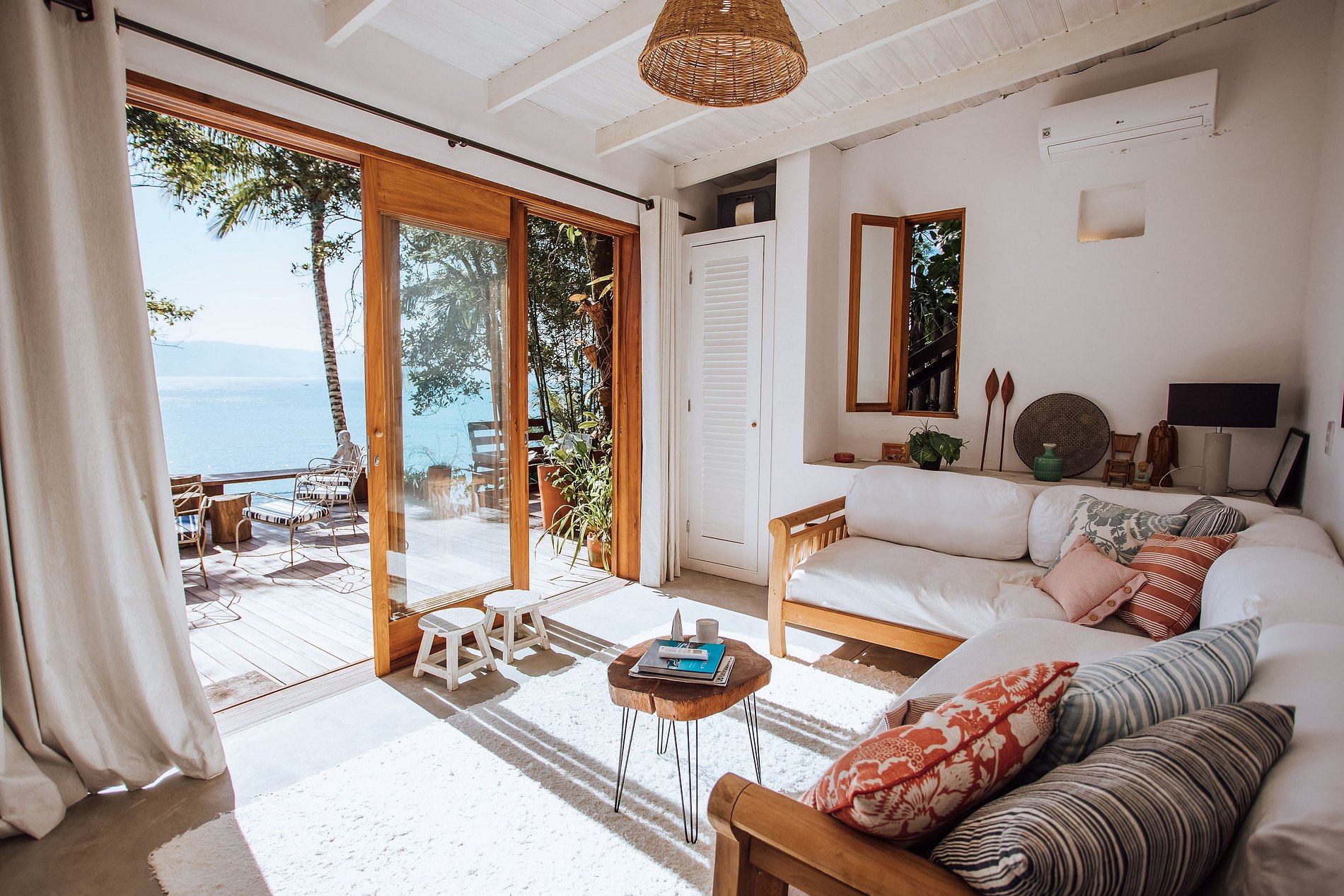 Uma experiência sensorial, em meio à natureza exuberante da ilha. E para quem não quer se desconectar totalmente há Smart TV com acesso à Sky, Netflix, Prime e um bom sinal de Wi-fi.