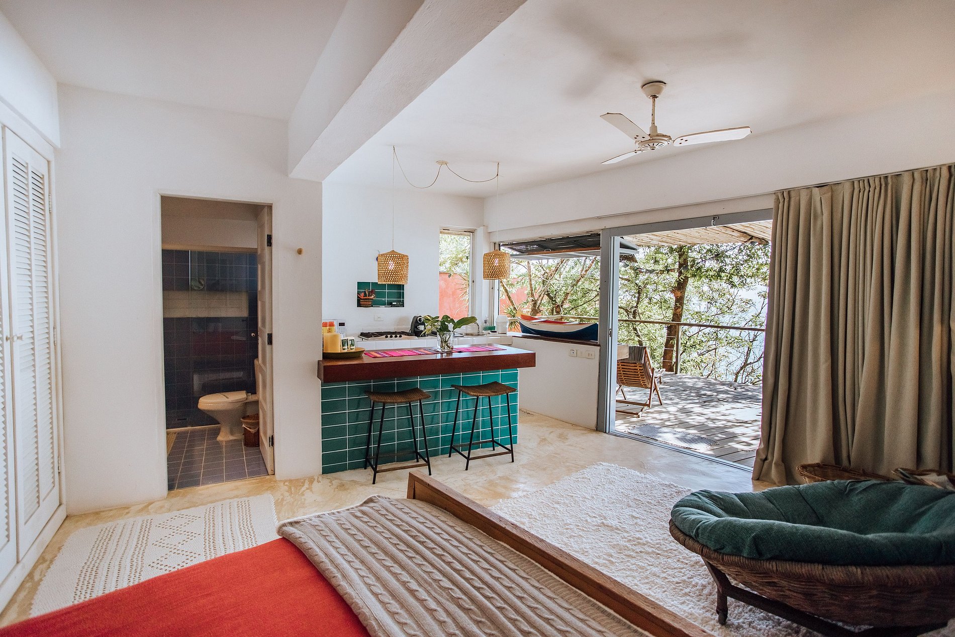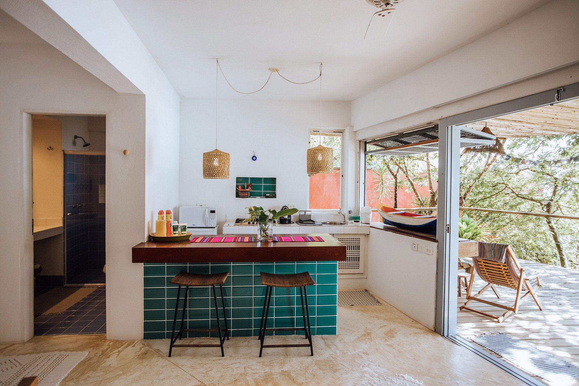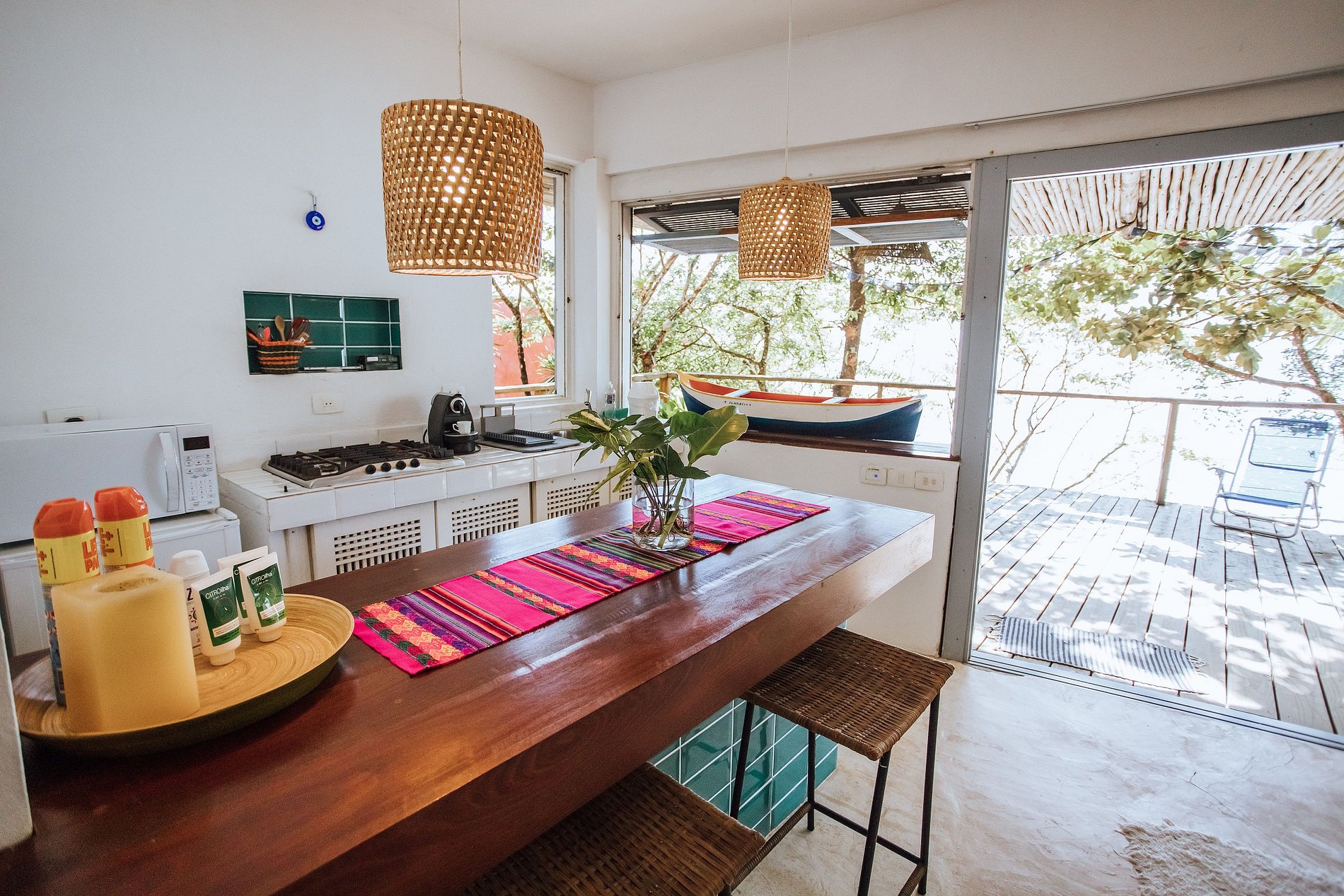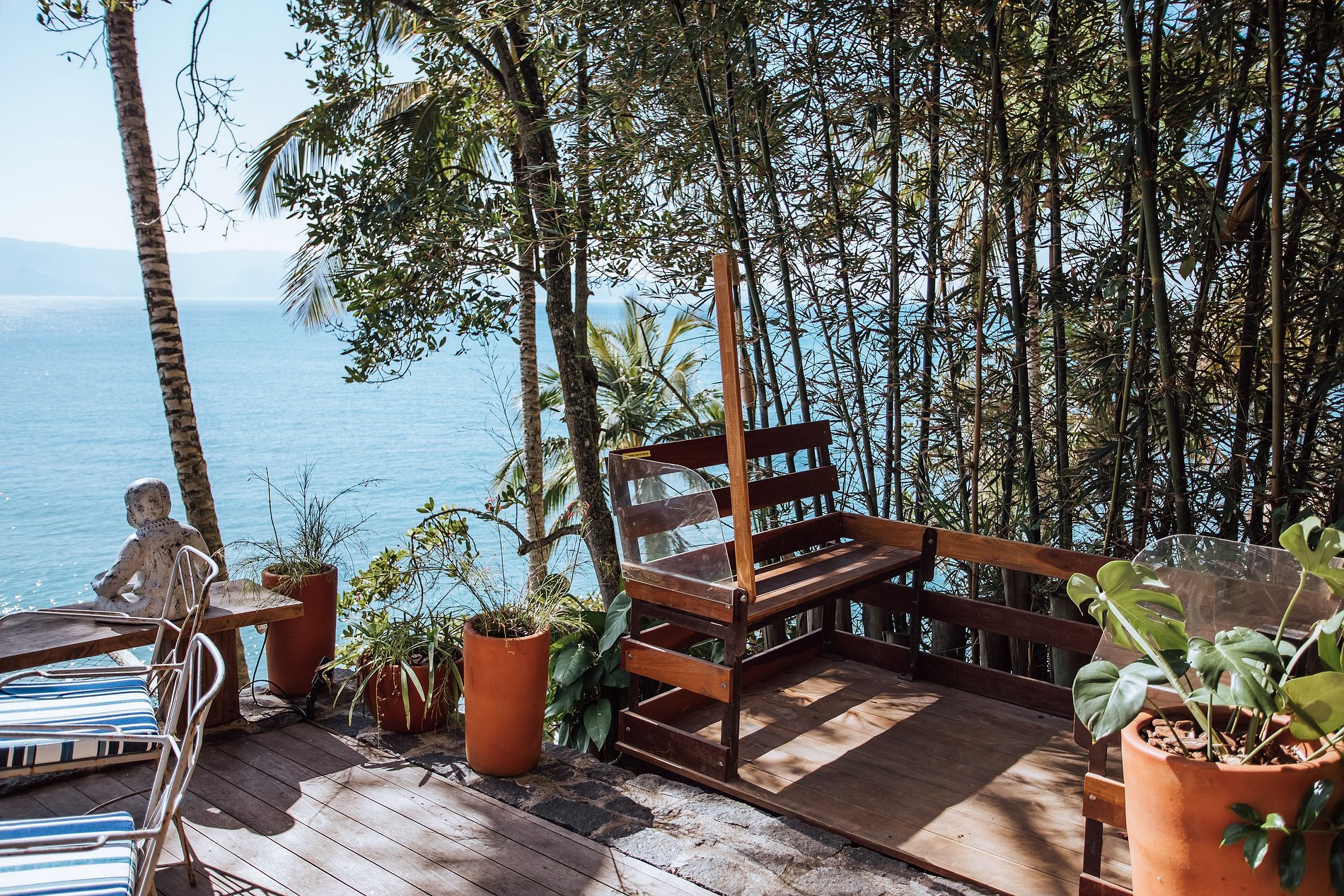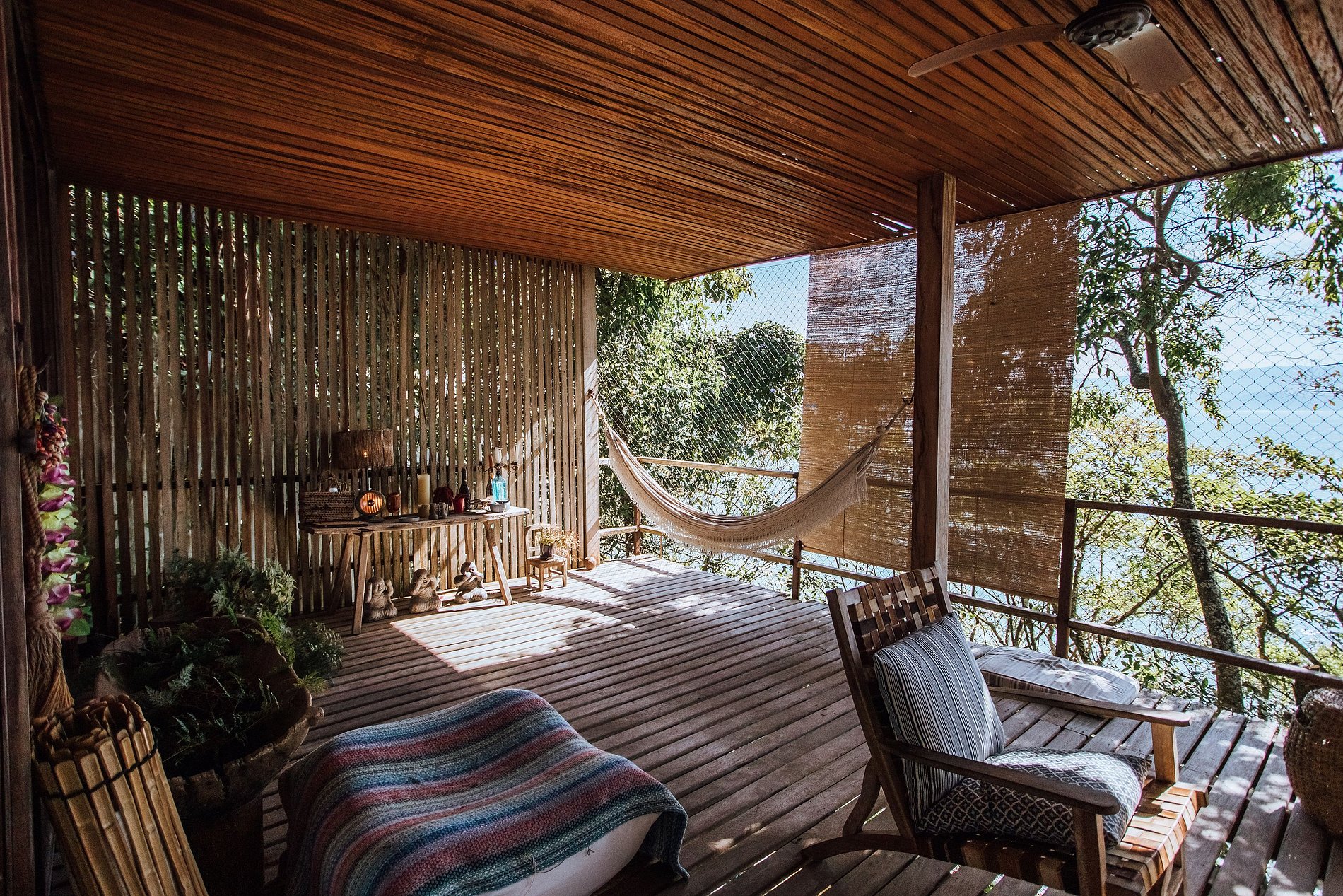 Uma experiência sensorial, em meio à natureza exuberante da ilha. E para quem não quer se desconectar totalmente há Smart TV com acesso à Sky, Netflix, Prime e um bom sinal de Wi-fi.