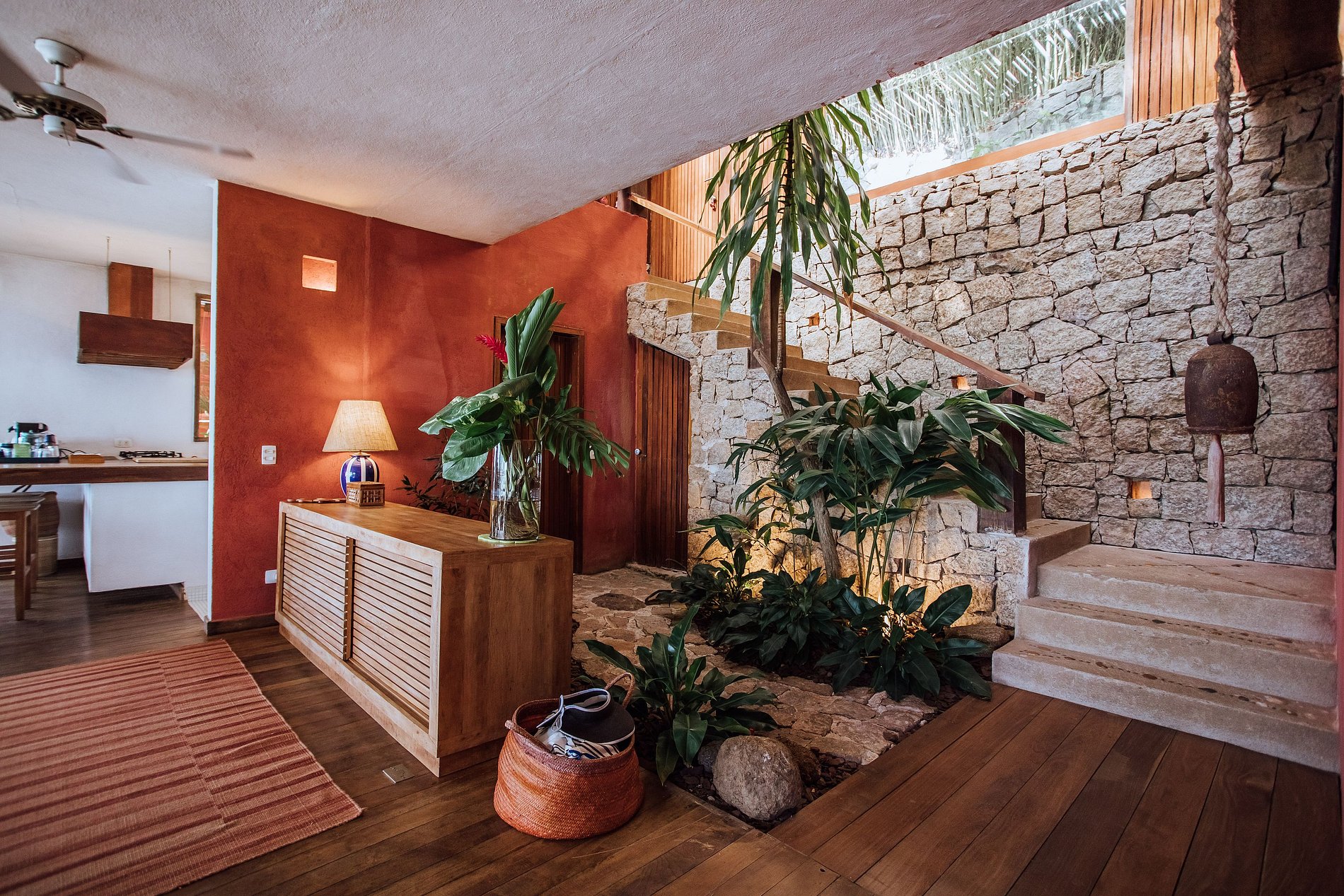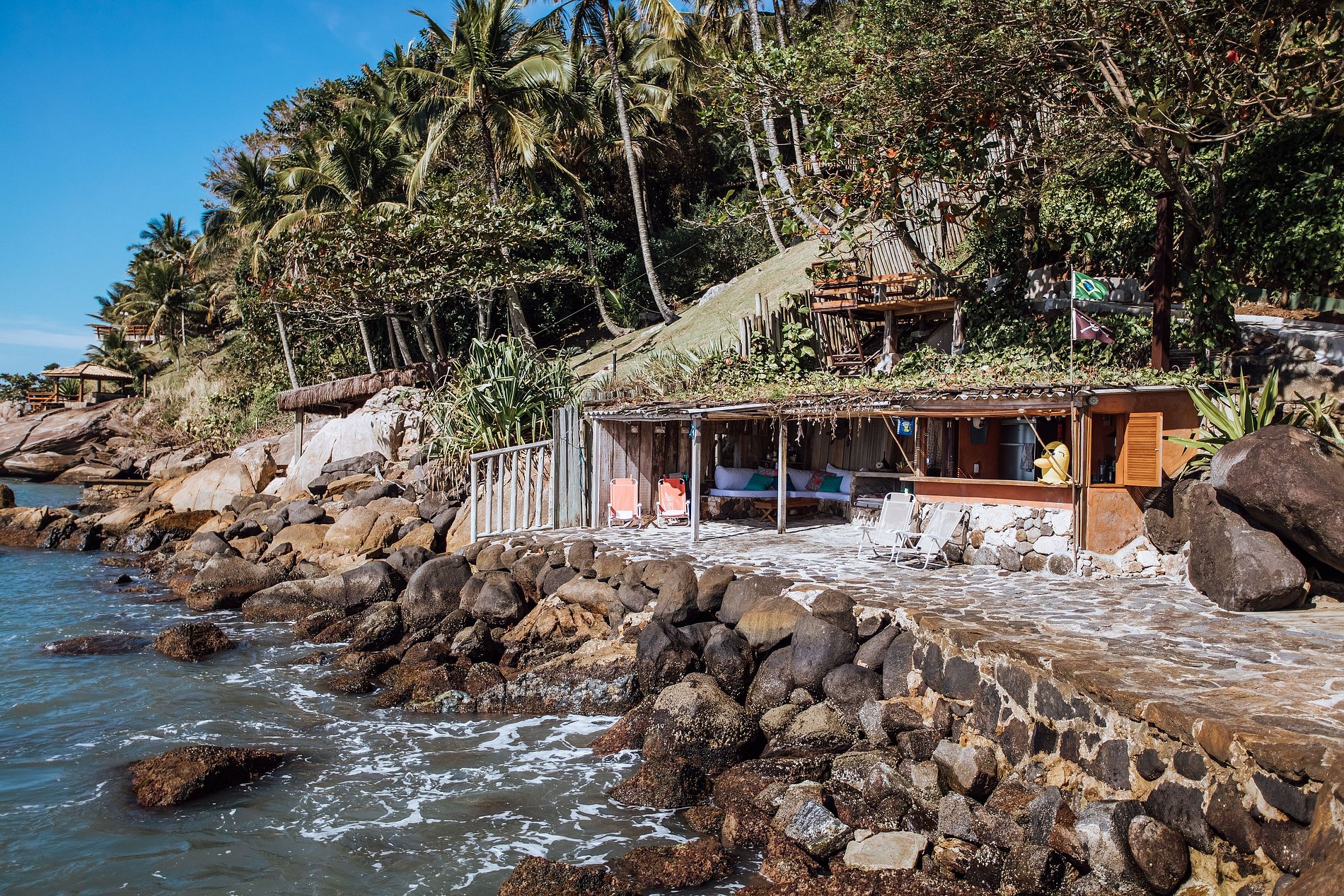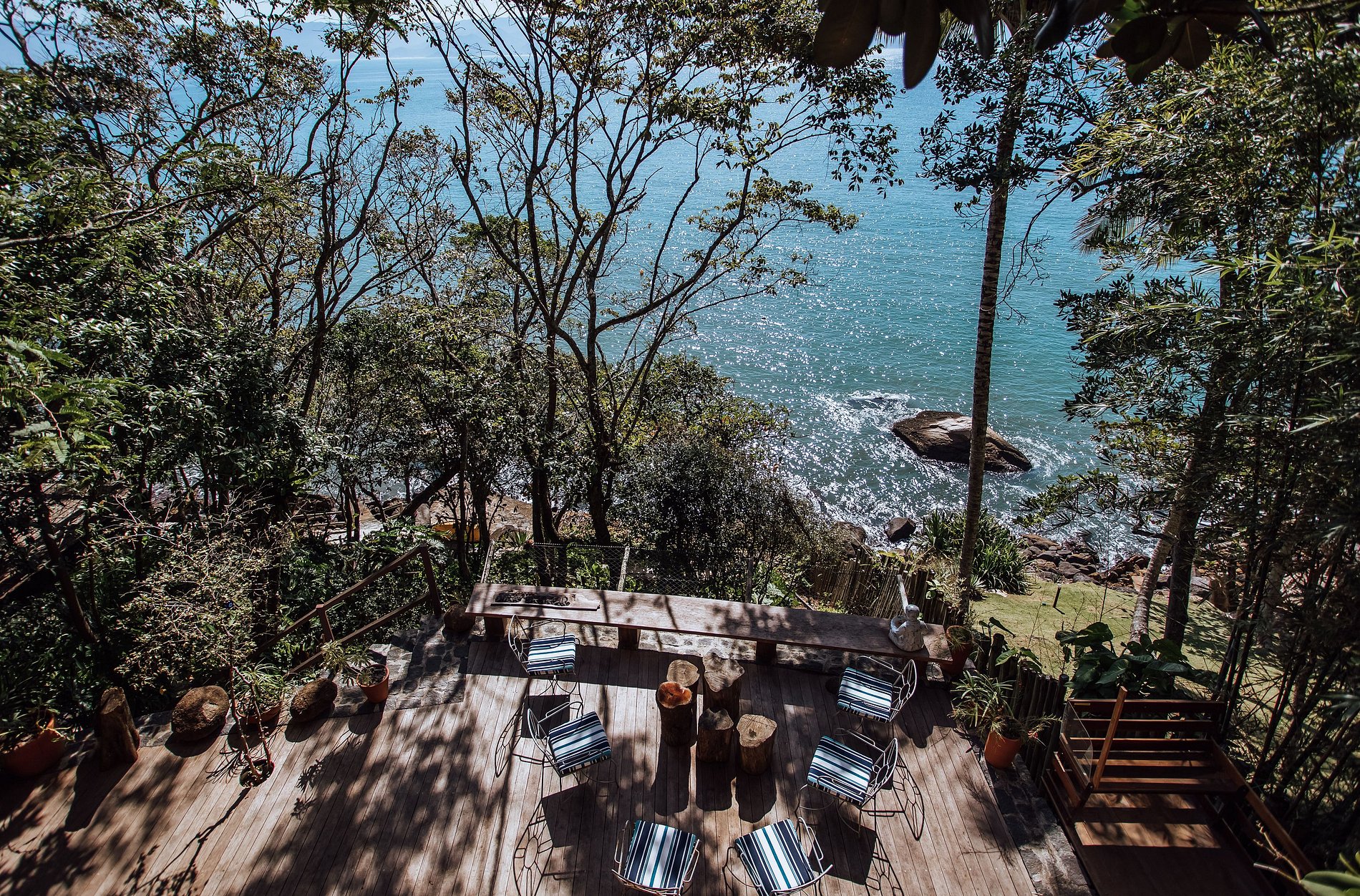 Esta propriedade possui algumas particularidades, pois está completamente integrada à natureza e dividida em 3 pavimentos: topo da encosta, meio da encosta (deck) e um belo espaço à beira-mar.