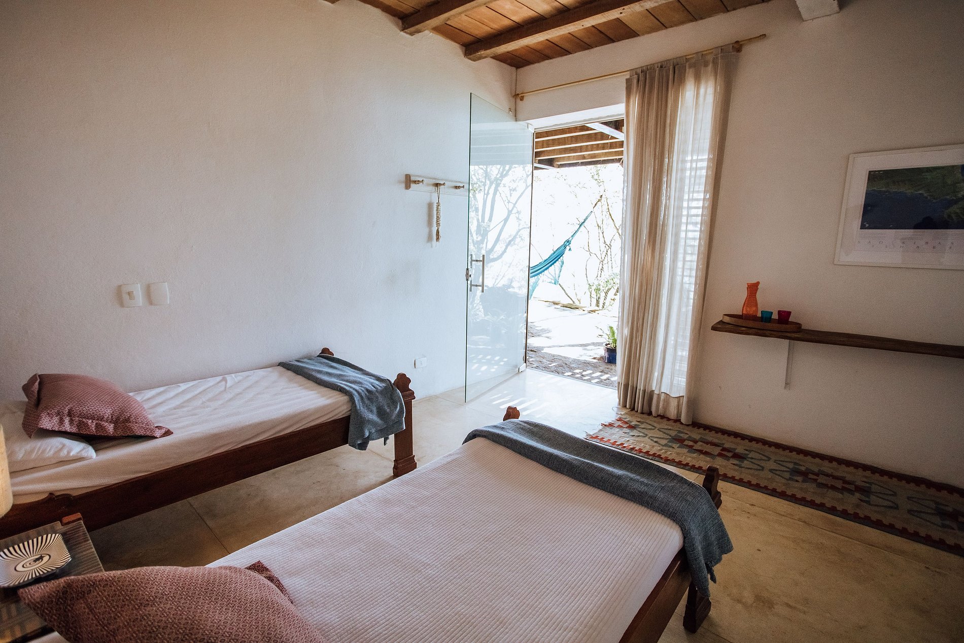 Suíte 1 - 3 camas de solteiro; mas, que podem ficar na configuração de 1 cama de casal e 1 de solteiro; varanda com vista;