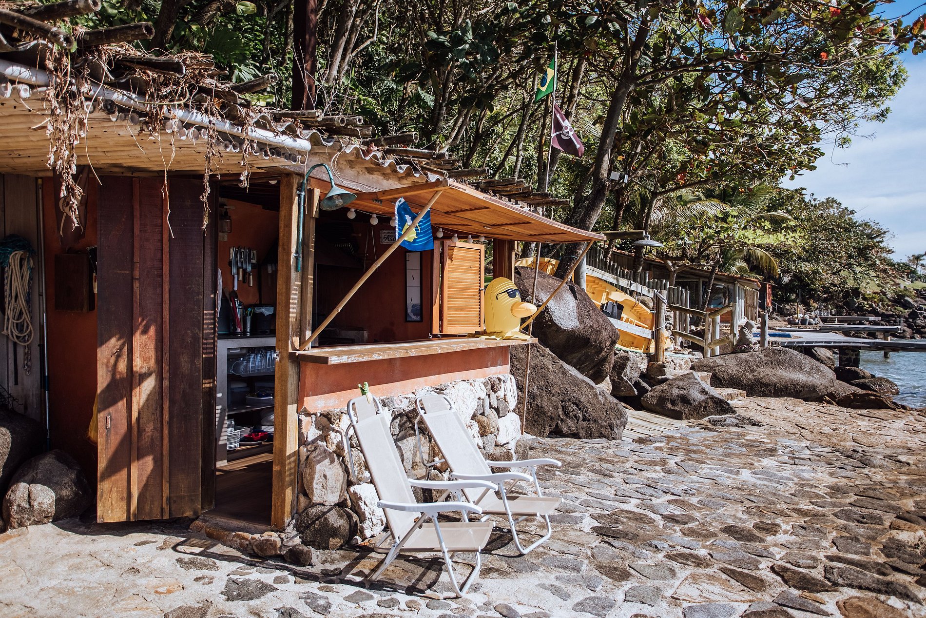- Por favor, tenham cuidado com almofadas e cadeiras na costeira, todas precisam ser guardadas à tarde, pois a maré alta leva tudo.