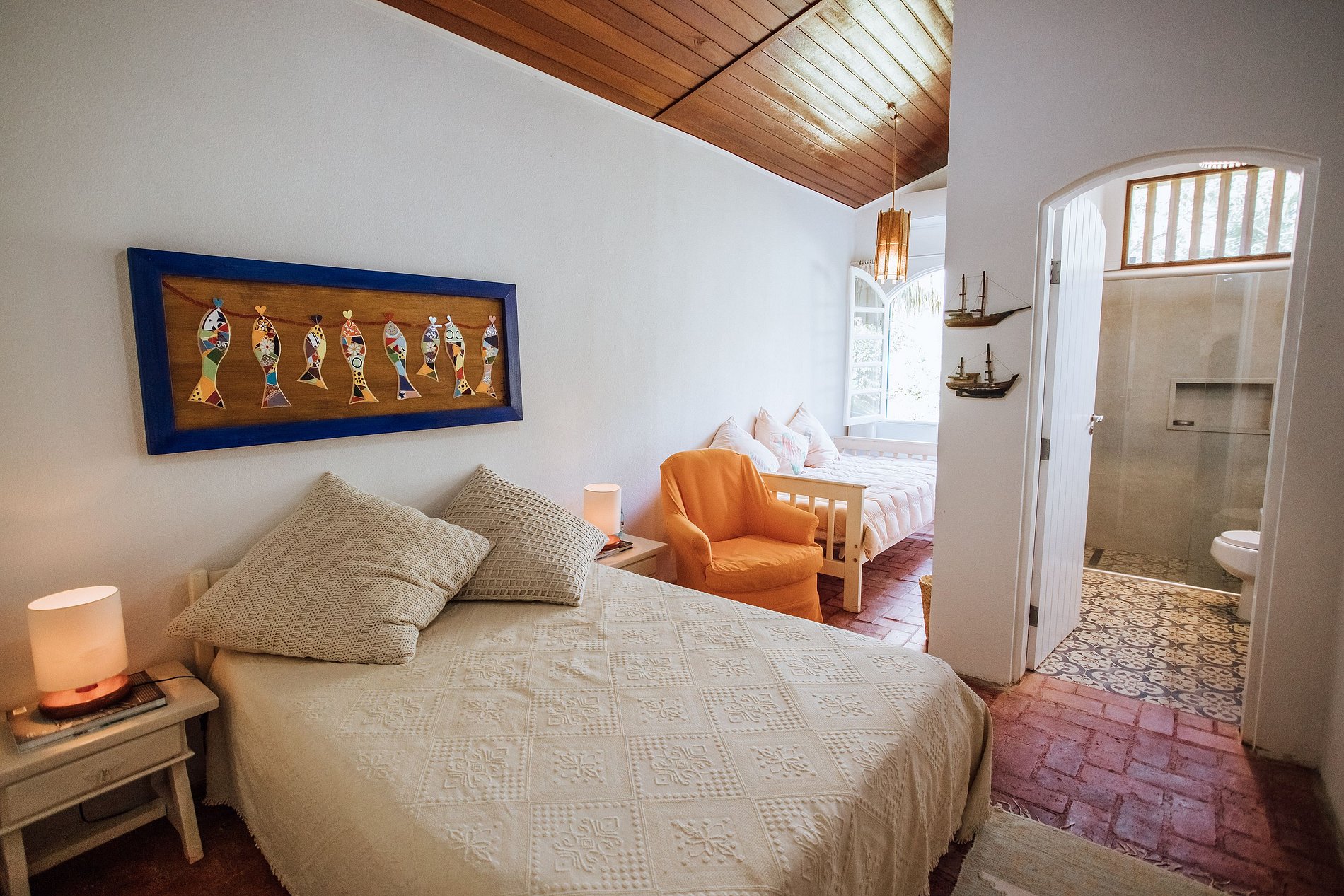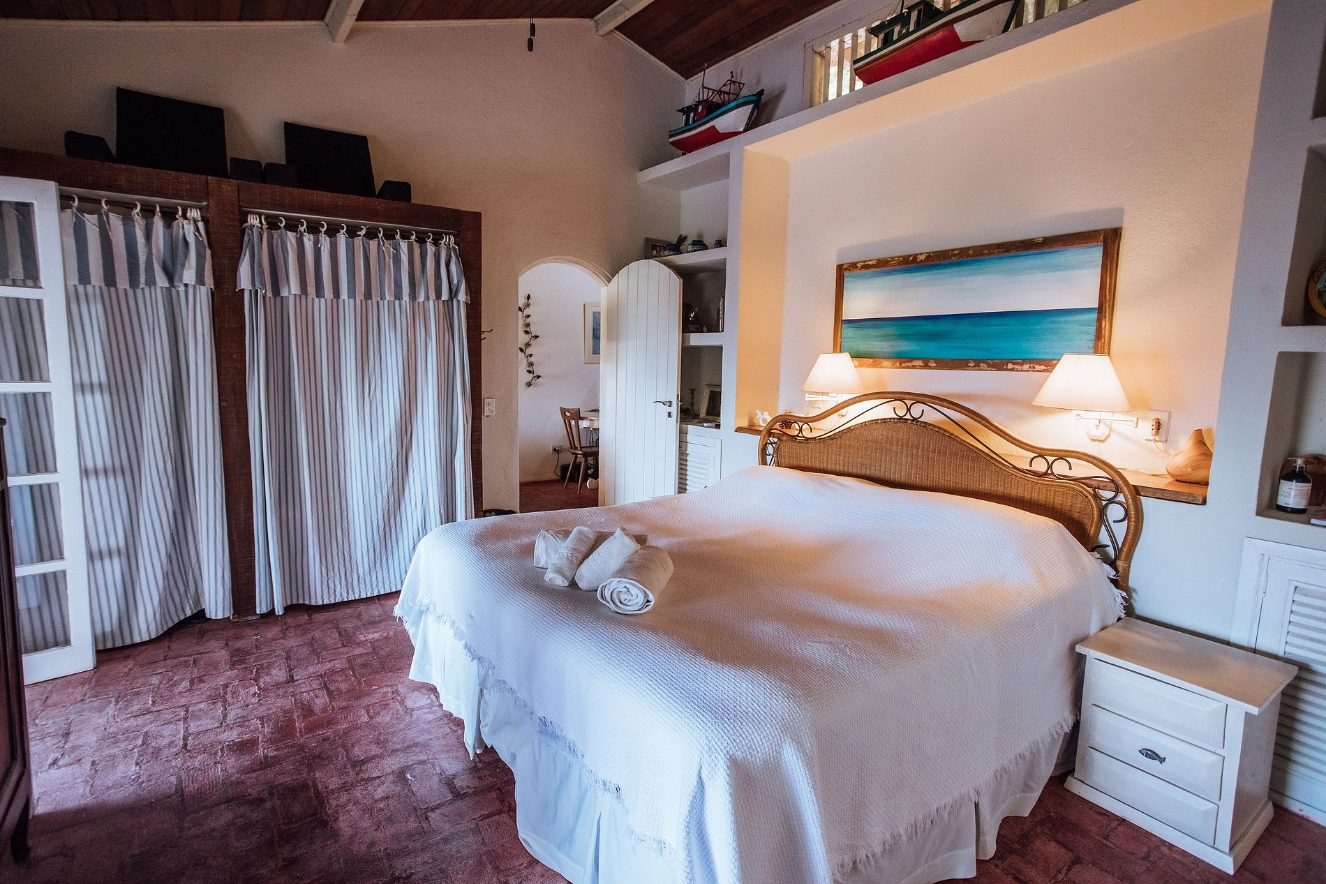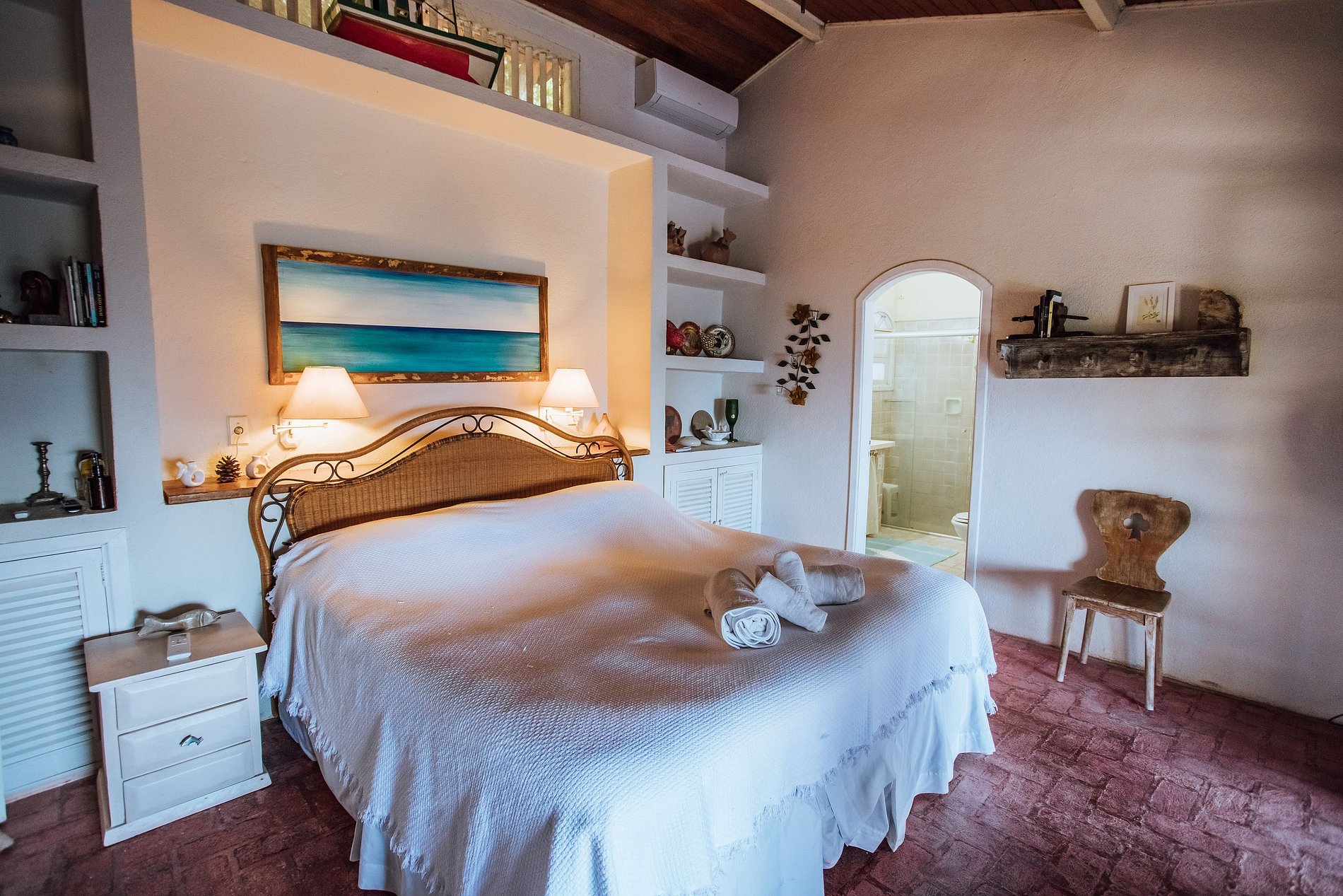 Suíte 1 - 1 cama de casal king, armário, ventilador, ar-condicionado, Smart TV, enxoval completo e vista para o mar;