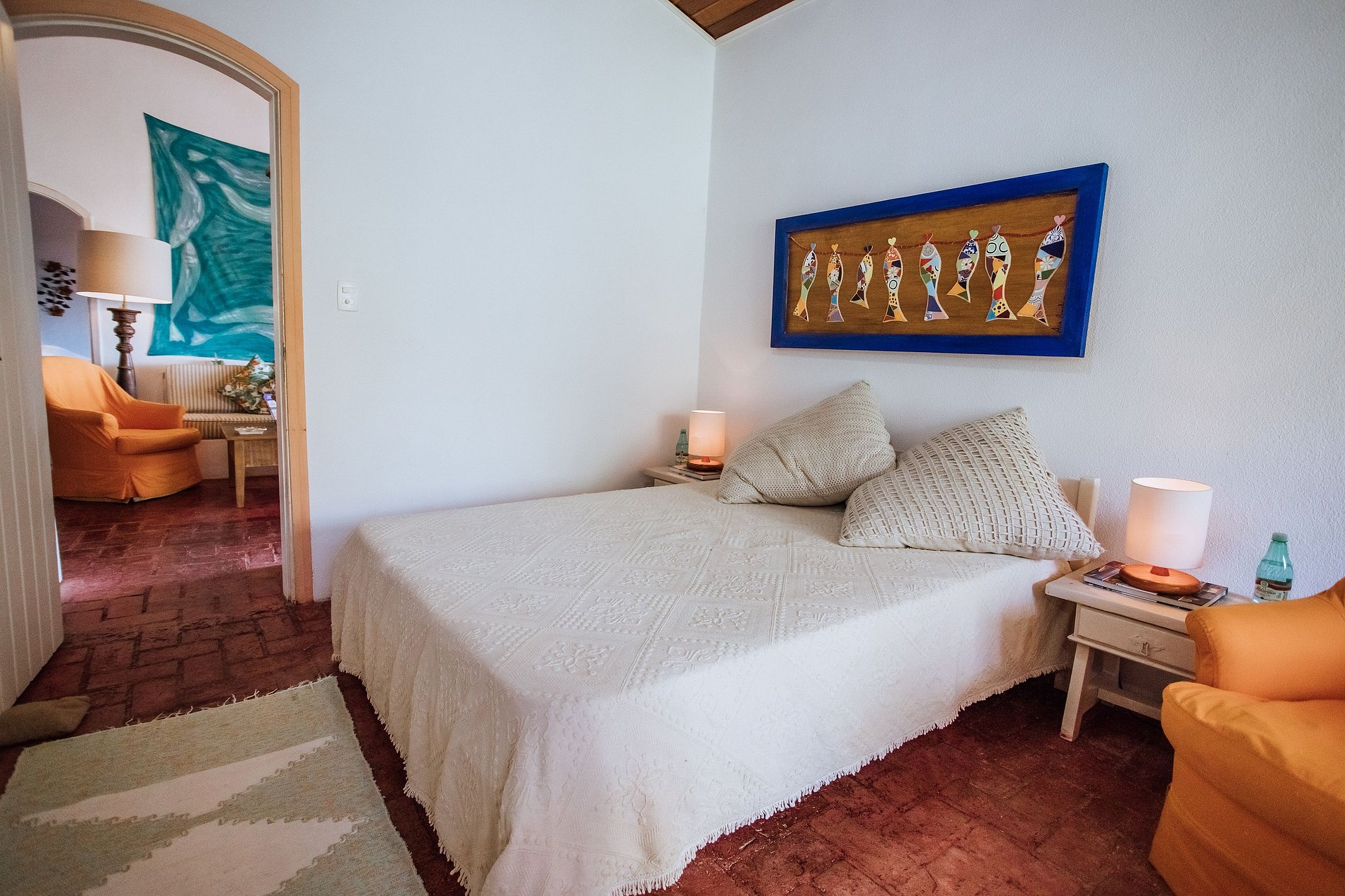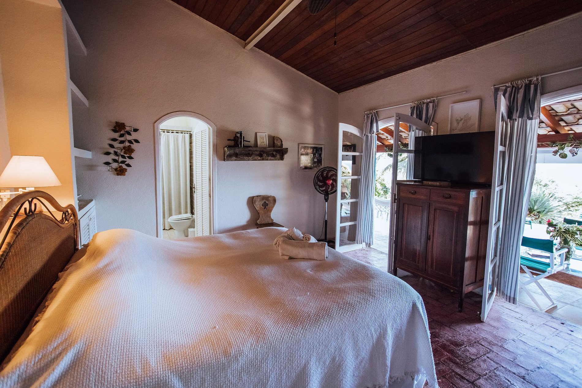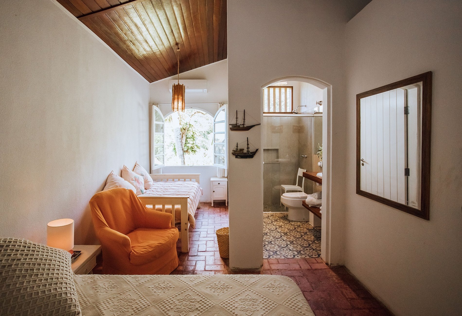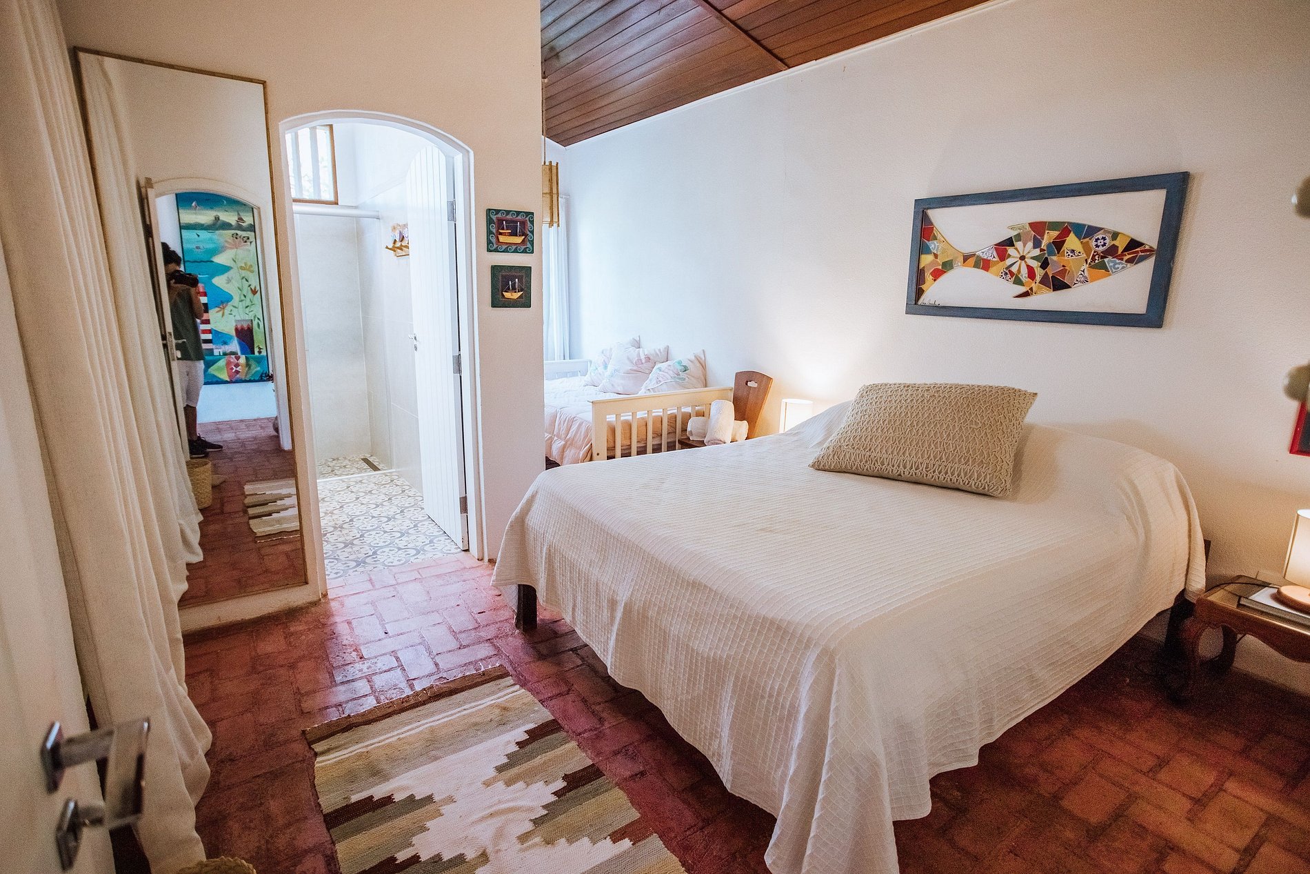 Suíte 1 - 1 cama de casal king, armário, ventilador, ar-condicionado, Smart TV, enxoval completo e vista para o mar;