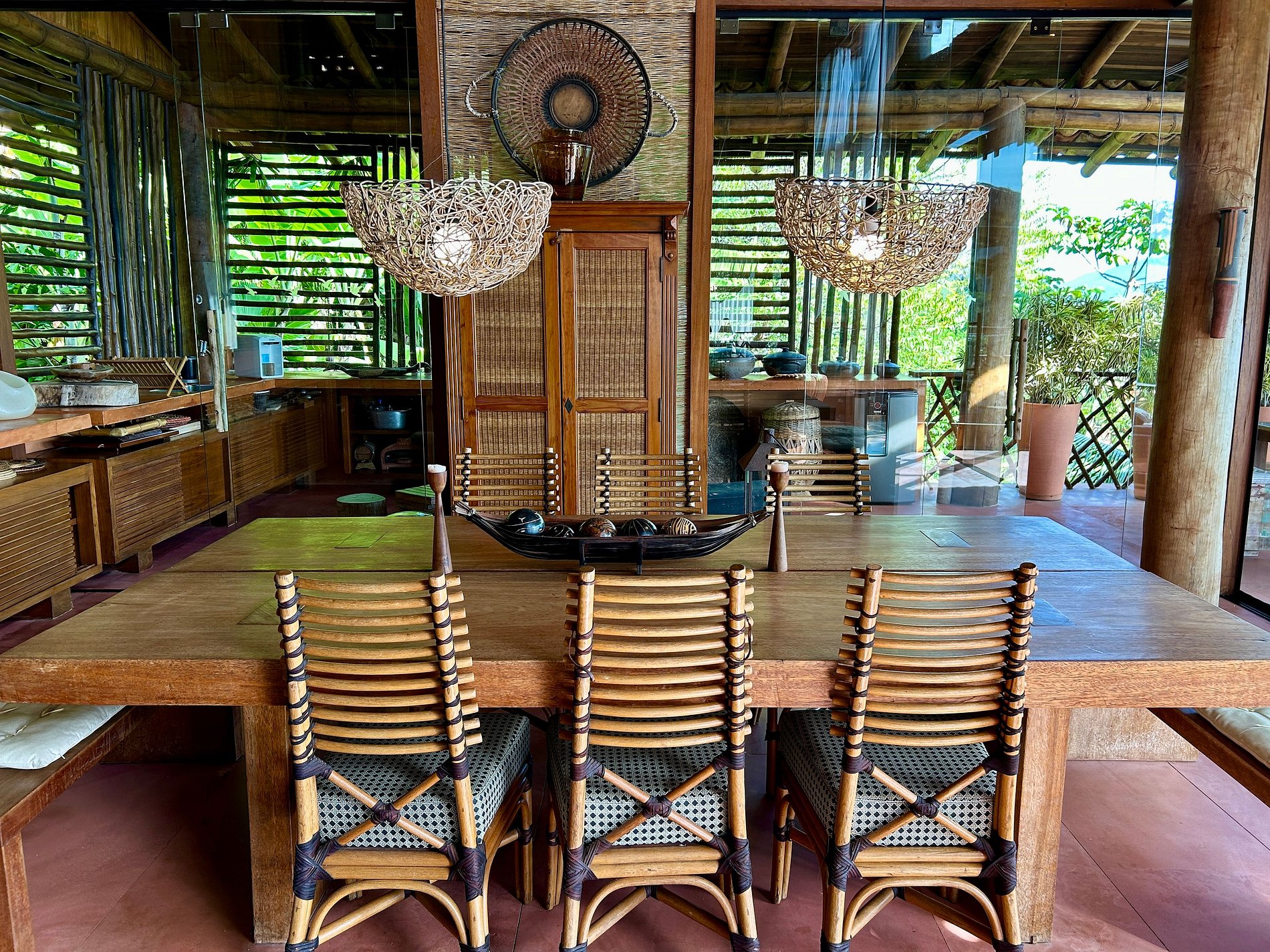 É totalmente voltada para o mar com varandas enormes em madeira e vidros, o que permite uma bela vista do mar e das montanhas.