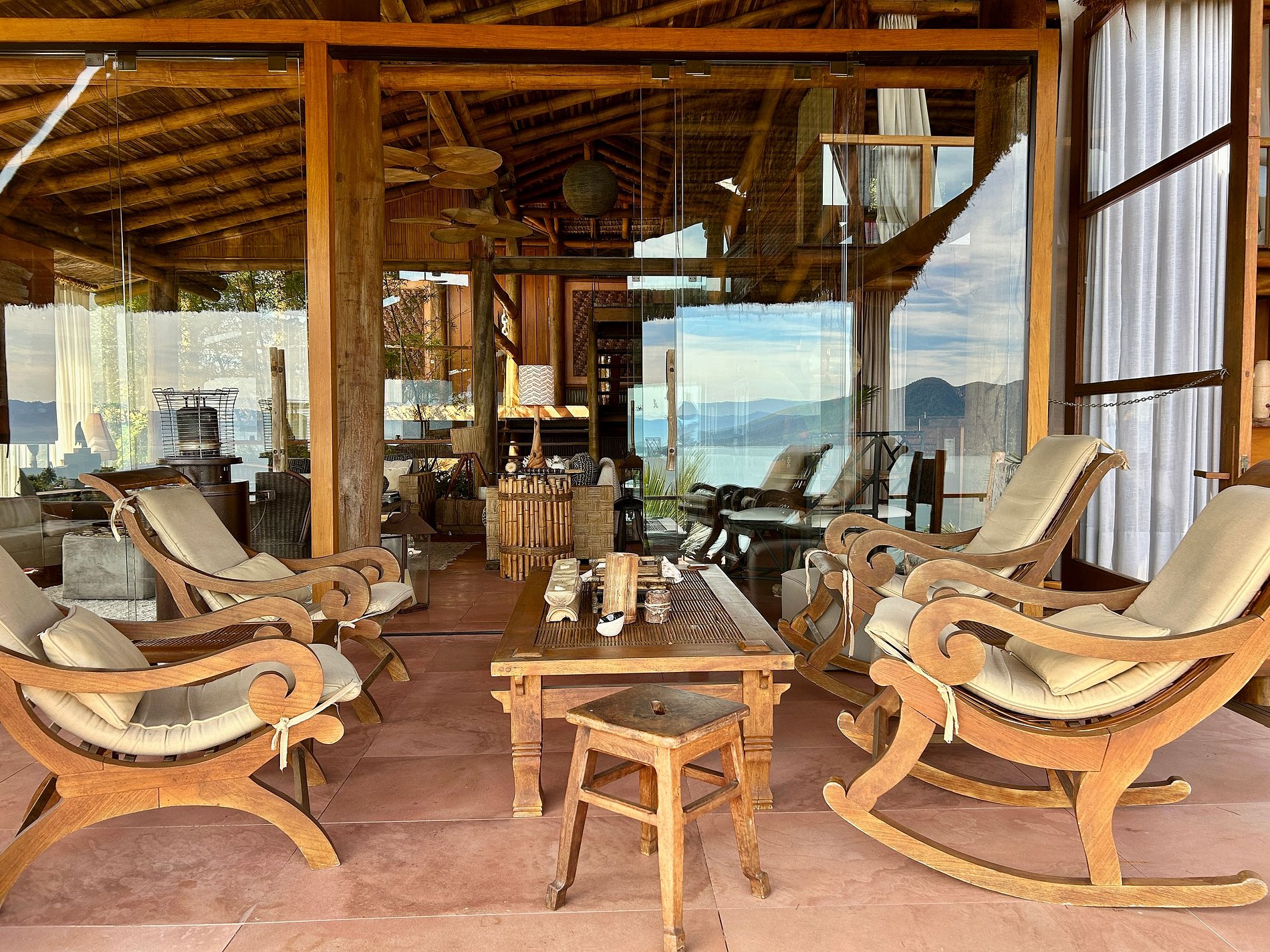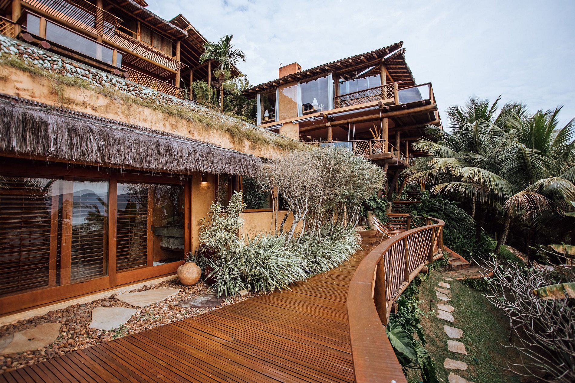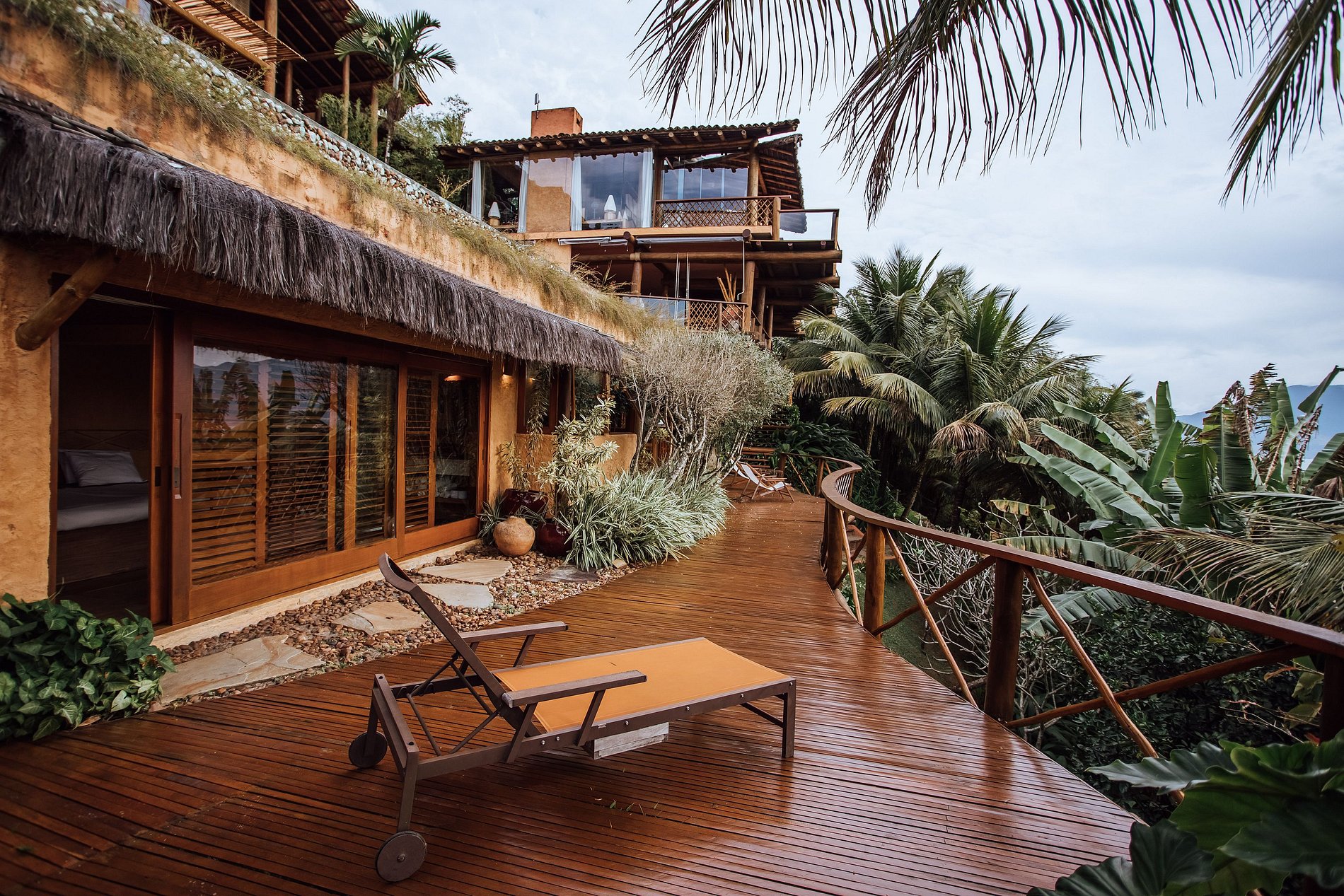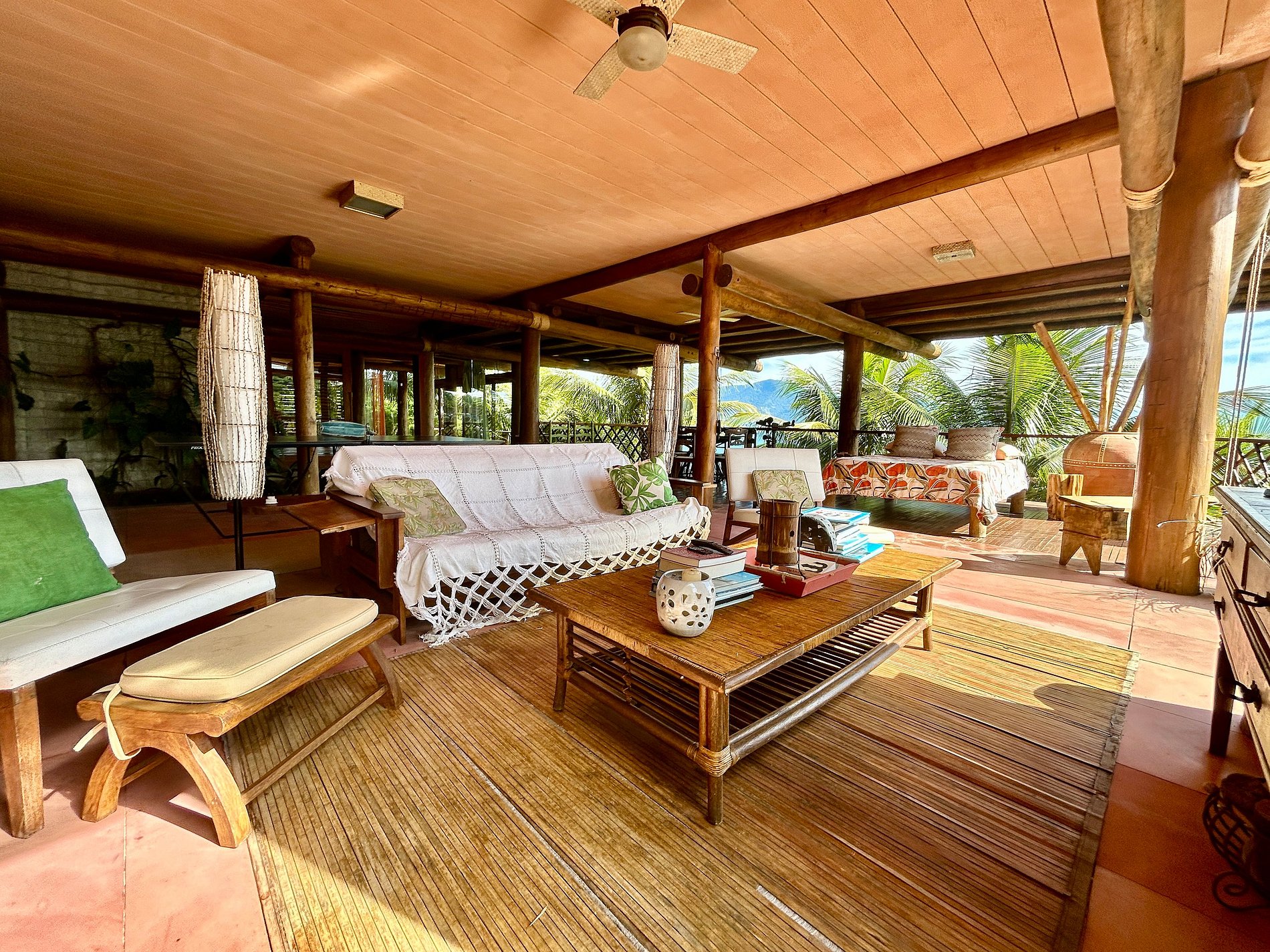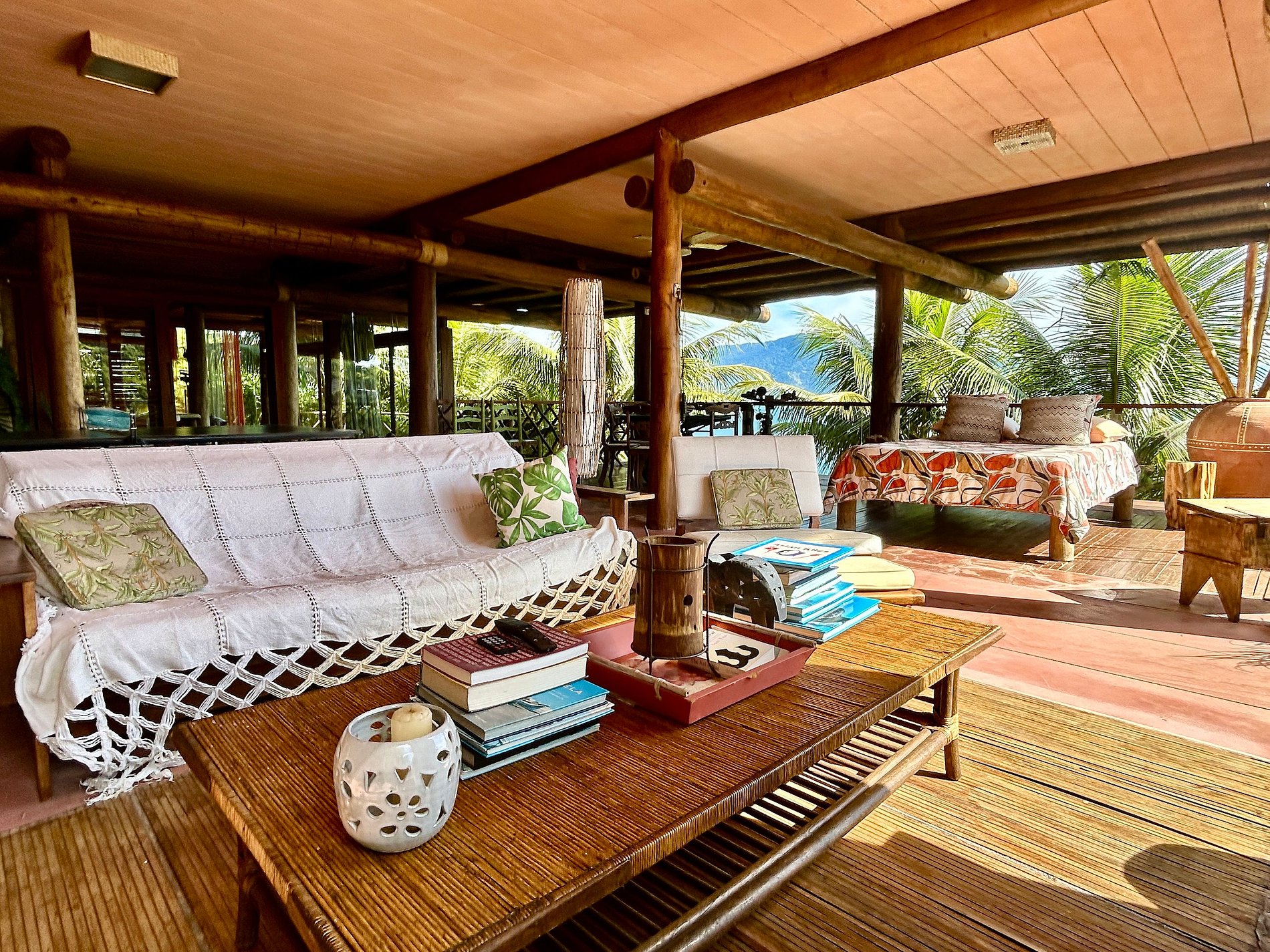 É totalmente voltada para o mar com varandas enormes em madeira e vidros, o que permite uma bela vista do mar e das montanhas.