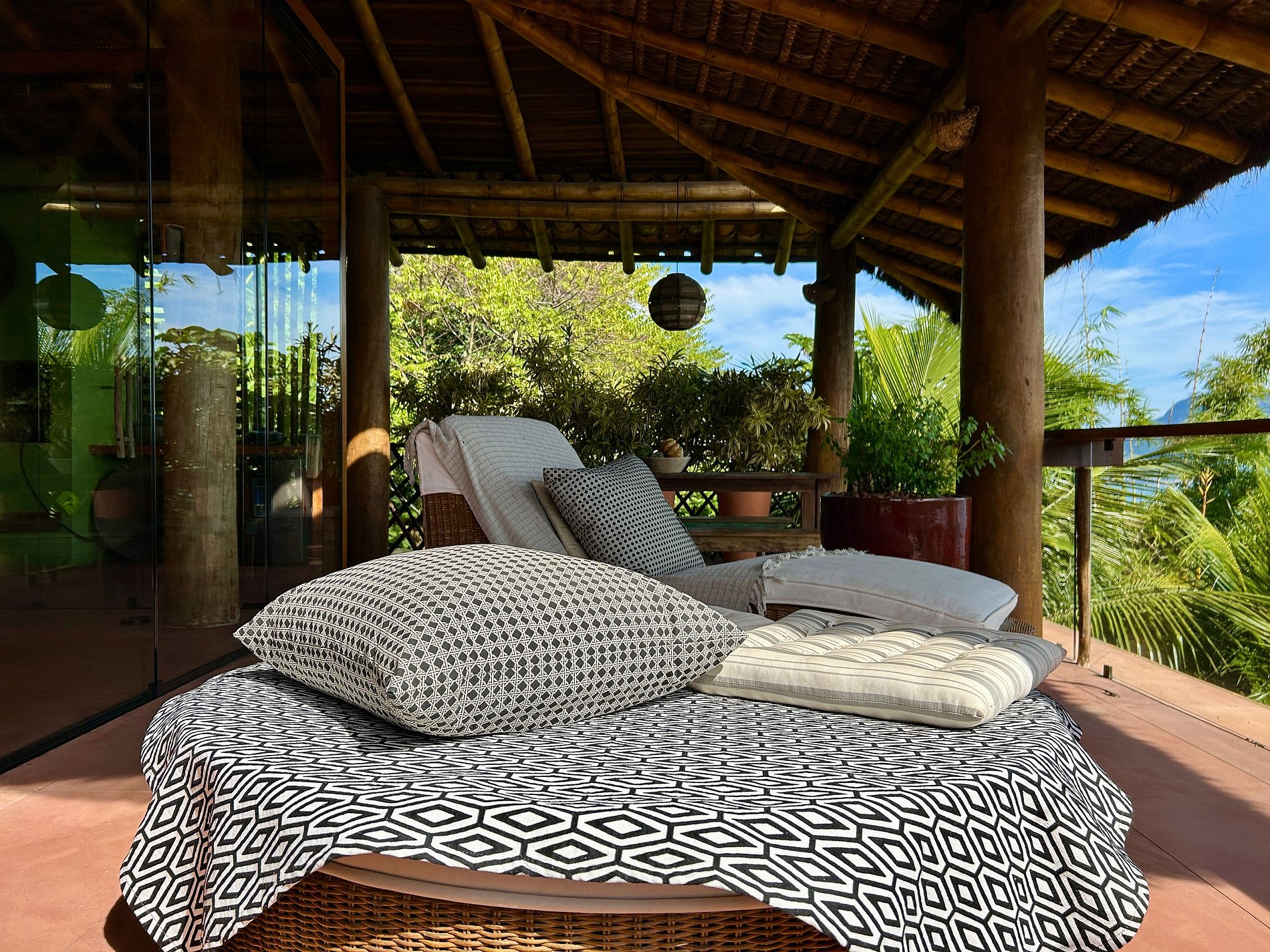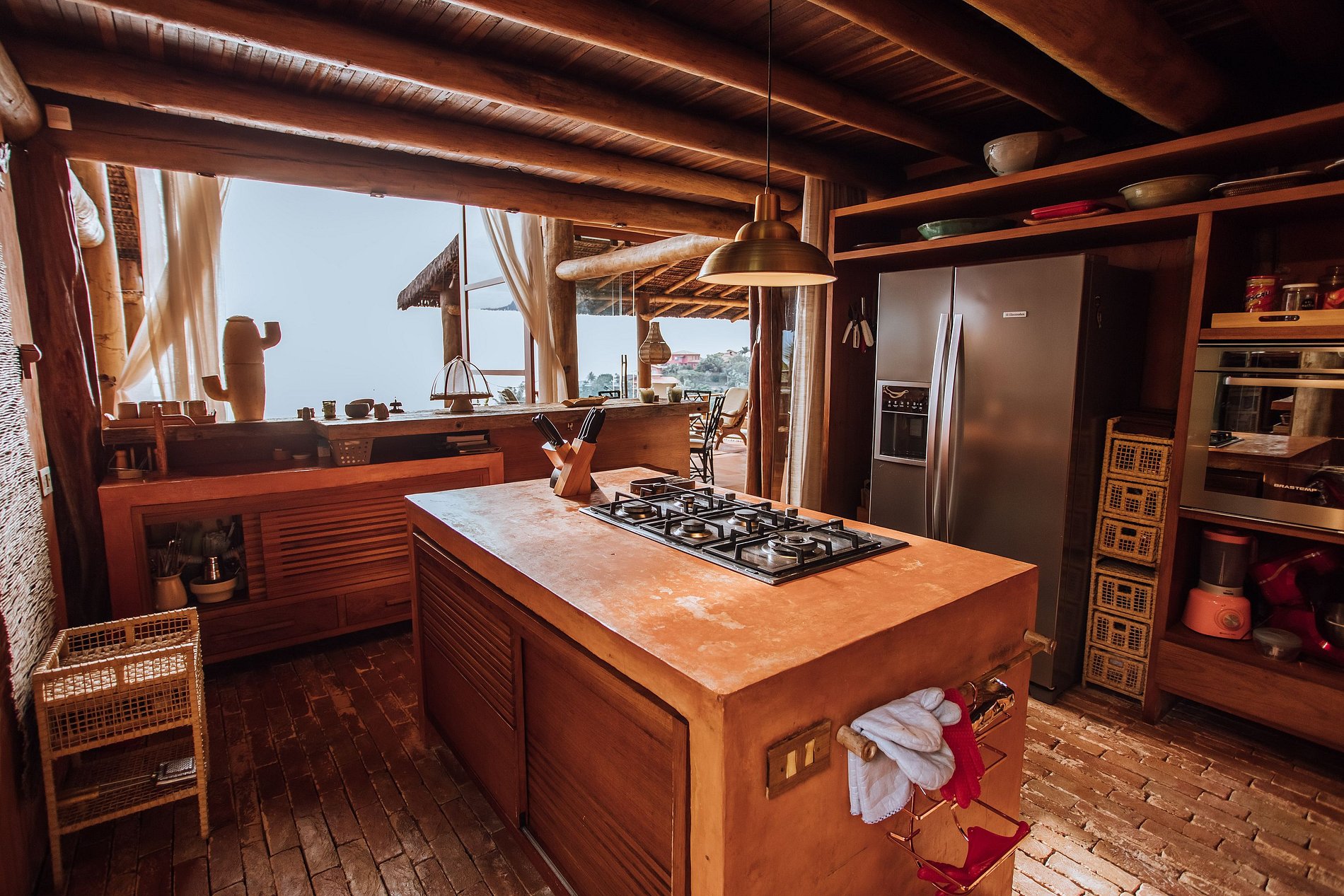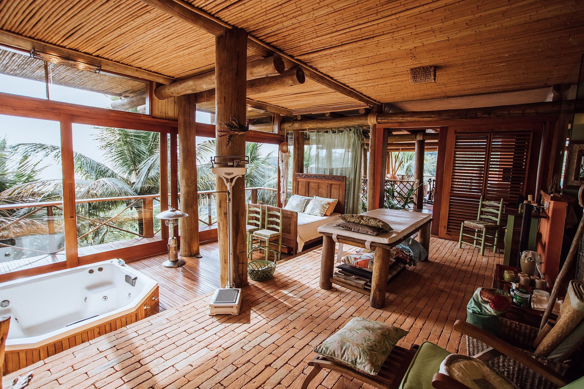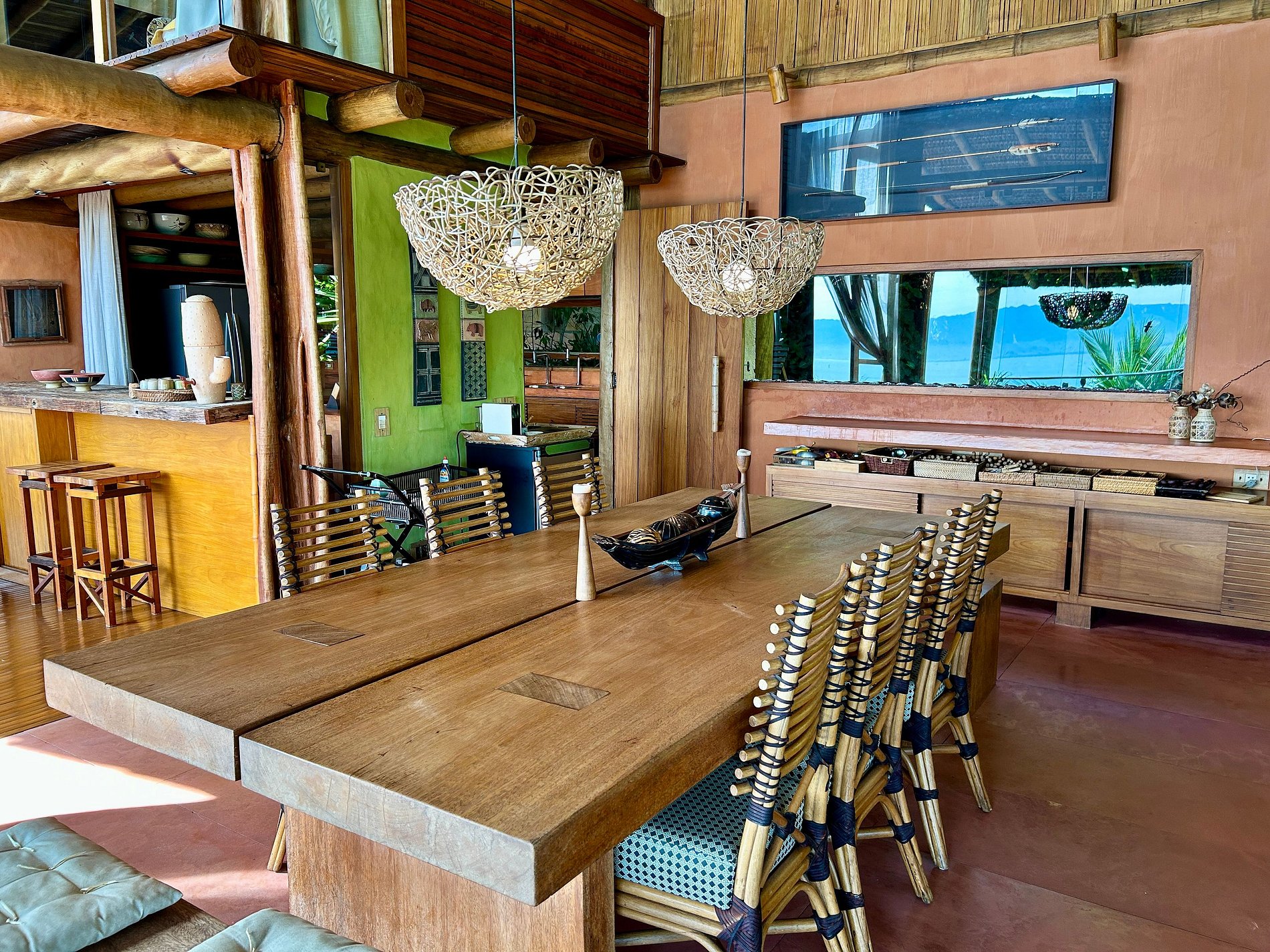 É totalmente voltada para o mar com varandas enormes em madeira e vidros, o que permite uma bela vista do mar e das montanhas.