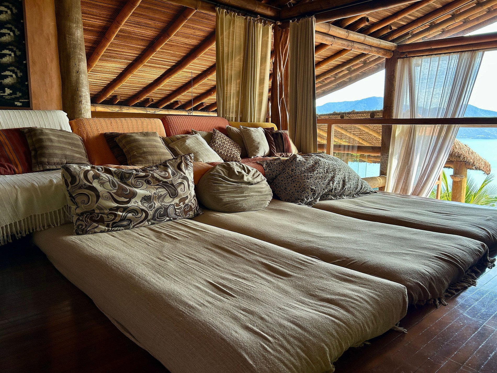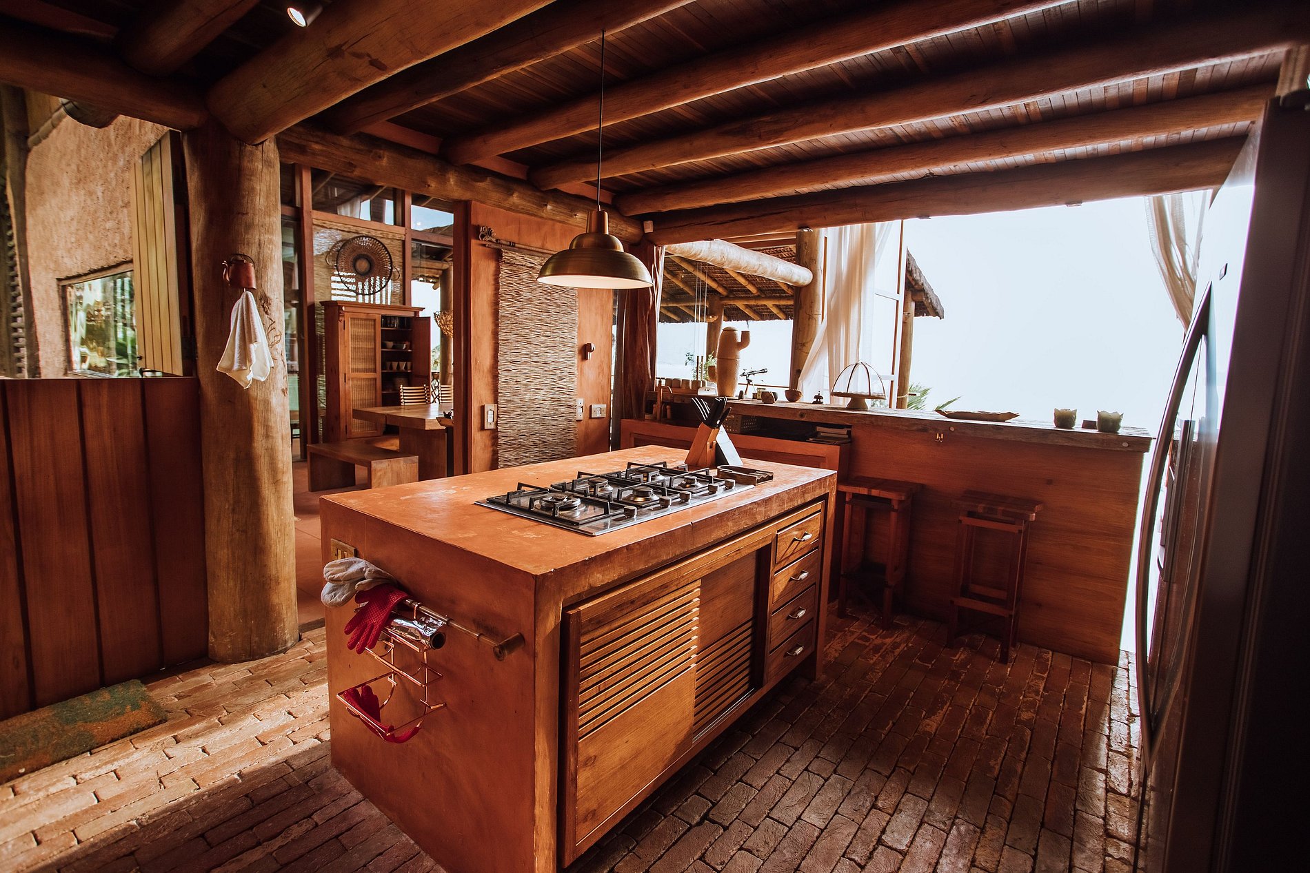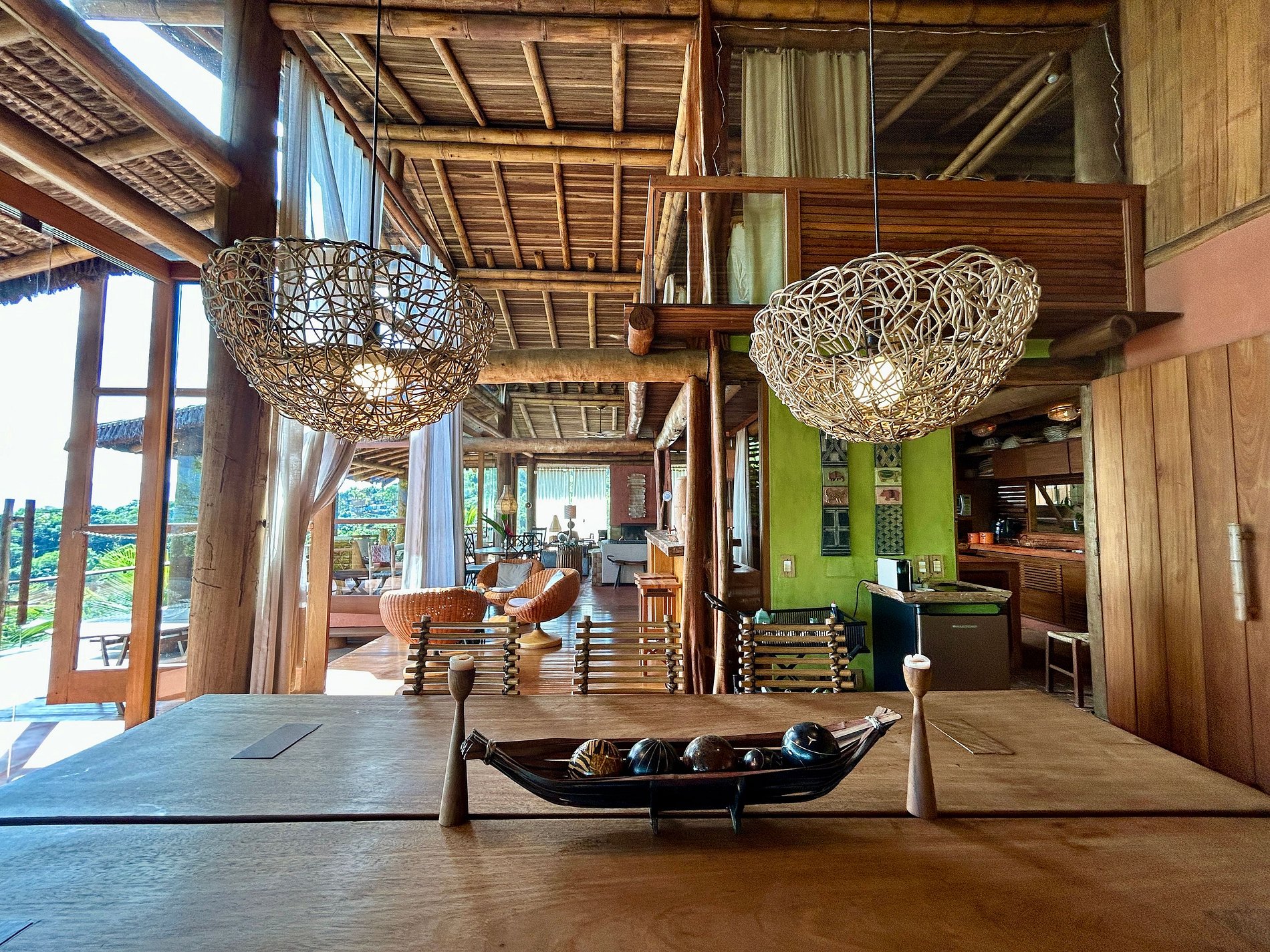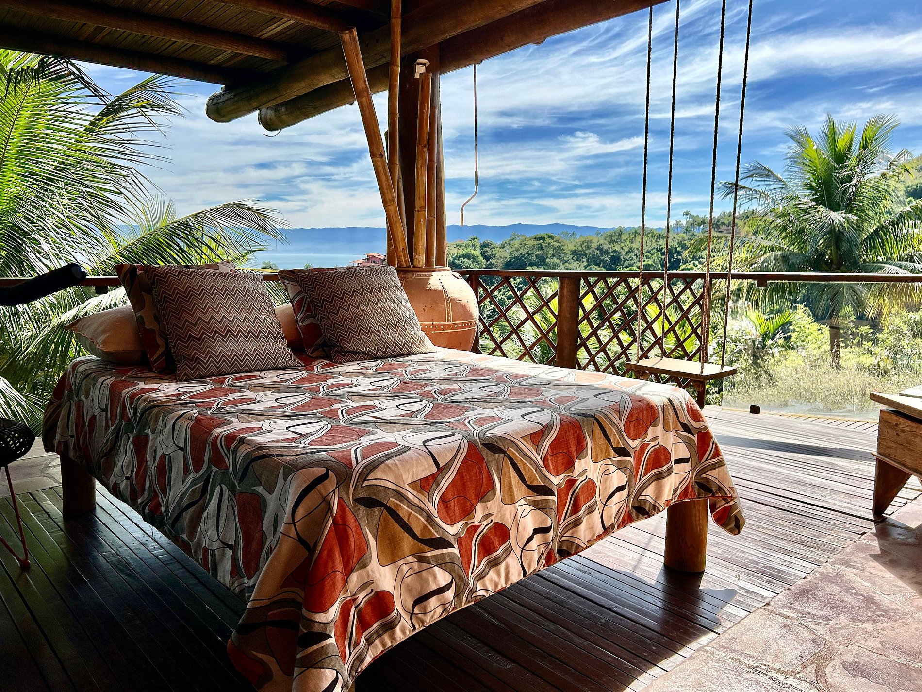 É totalmente voltada para o mar com varandas enormes em madeira e vidros, o que permite uma bela vista do mar e das montanhas.