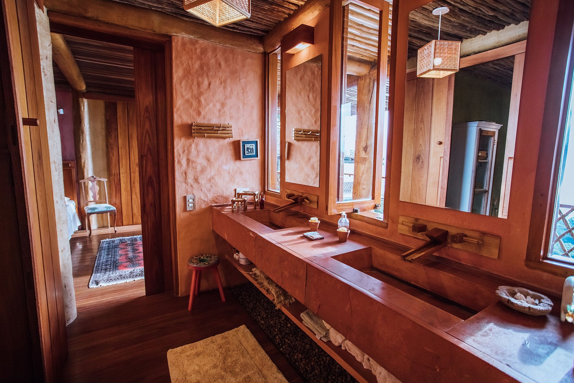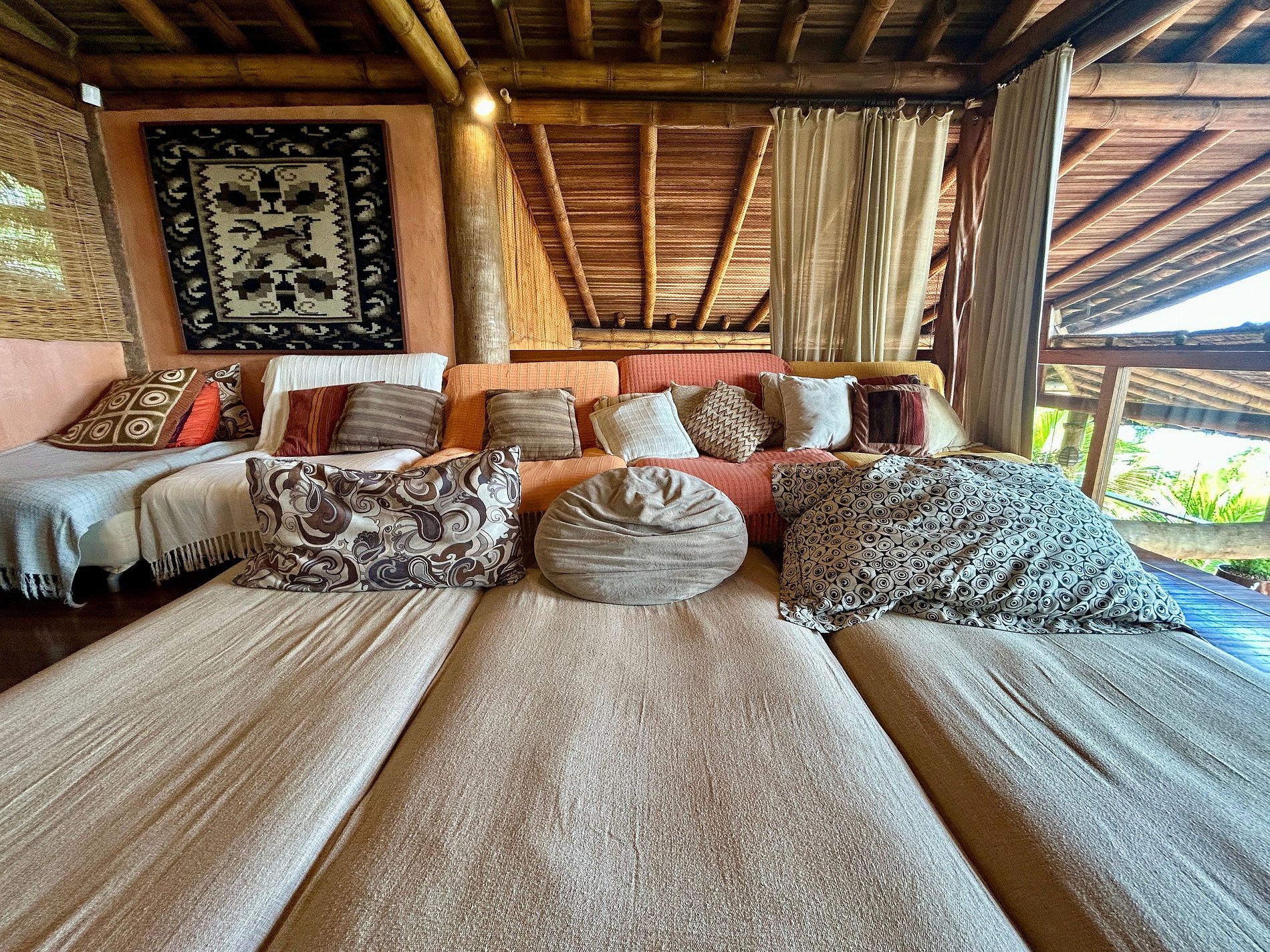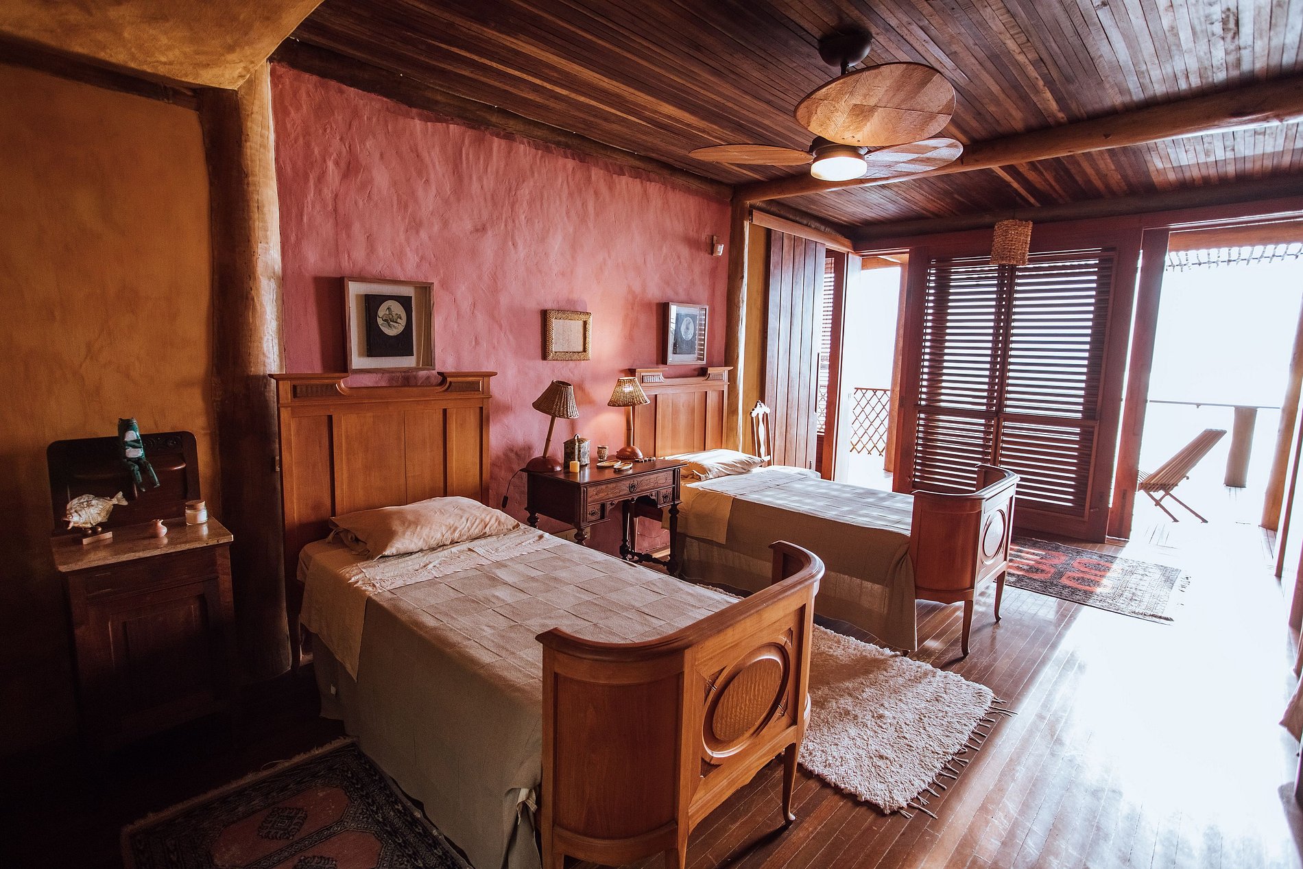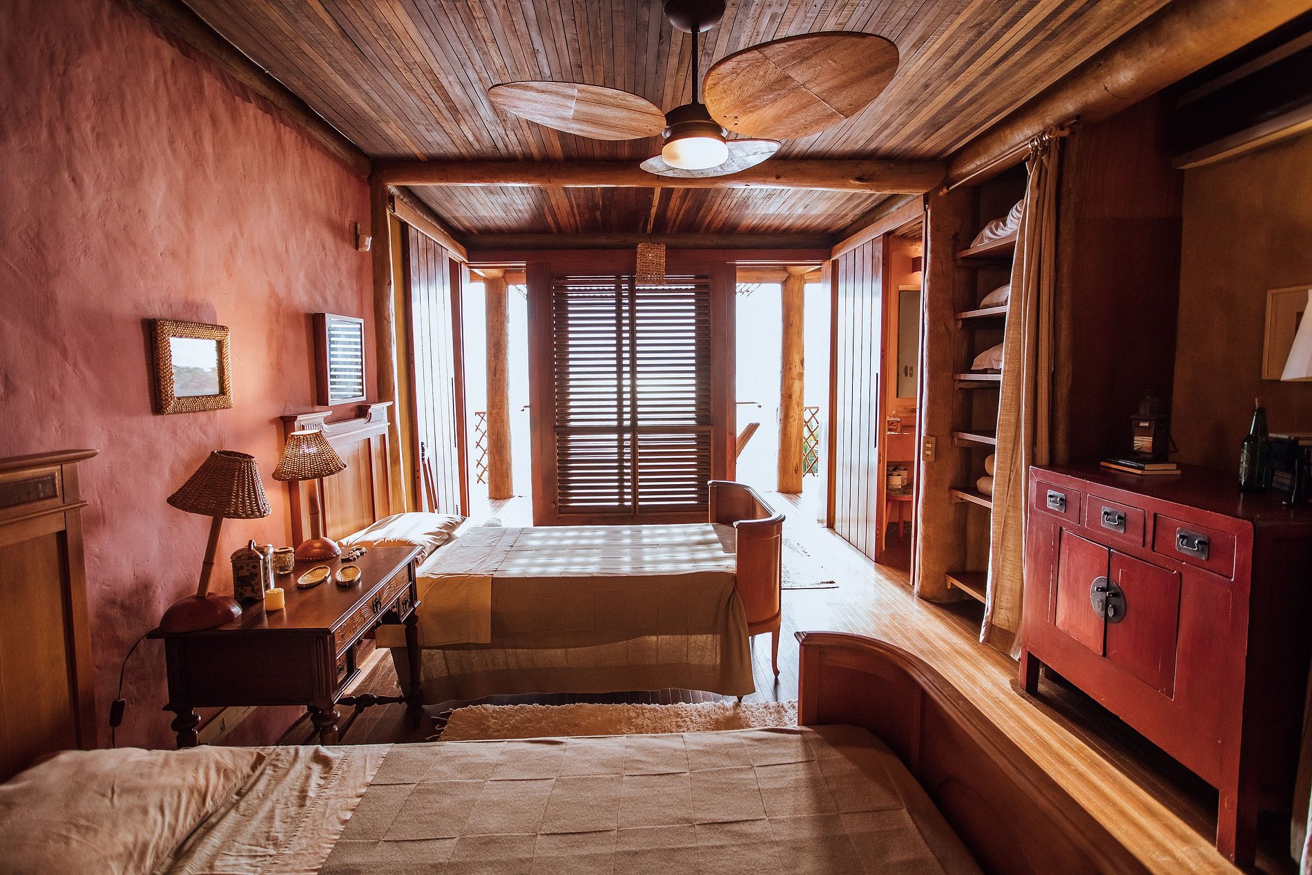 QUARTOS SUPERIORES - COM VARANDAS São 3 quartos e 2 banheiros, que ficam no ponto mais alto da casa, podem ser usados nas seguintes configurações:
