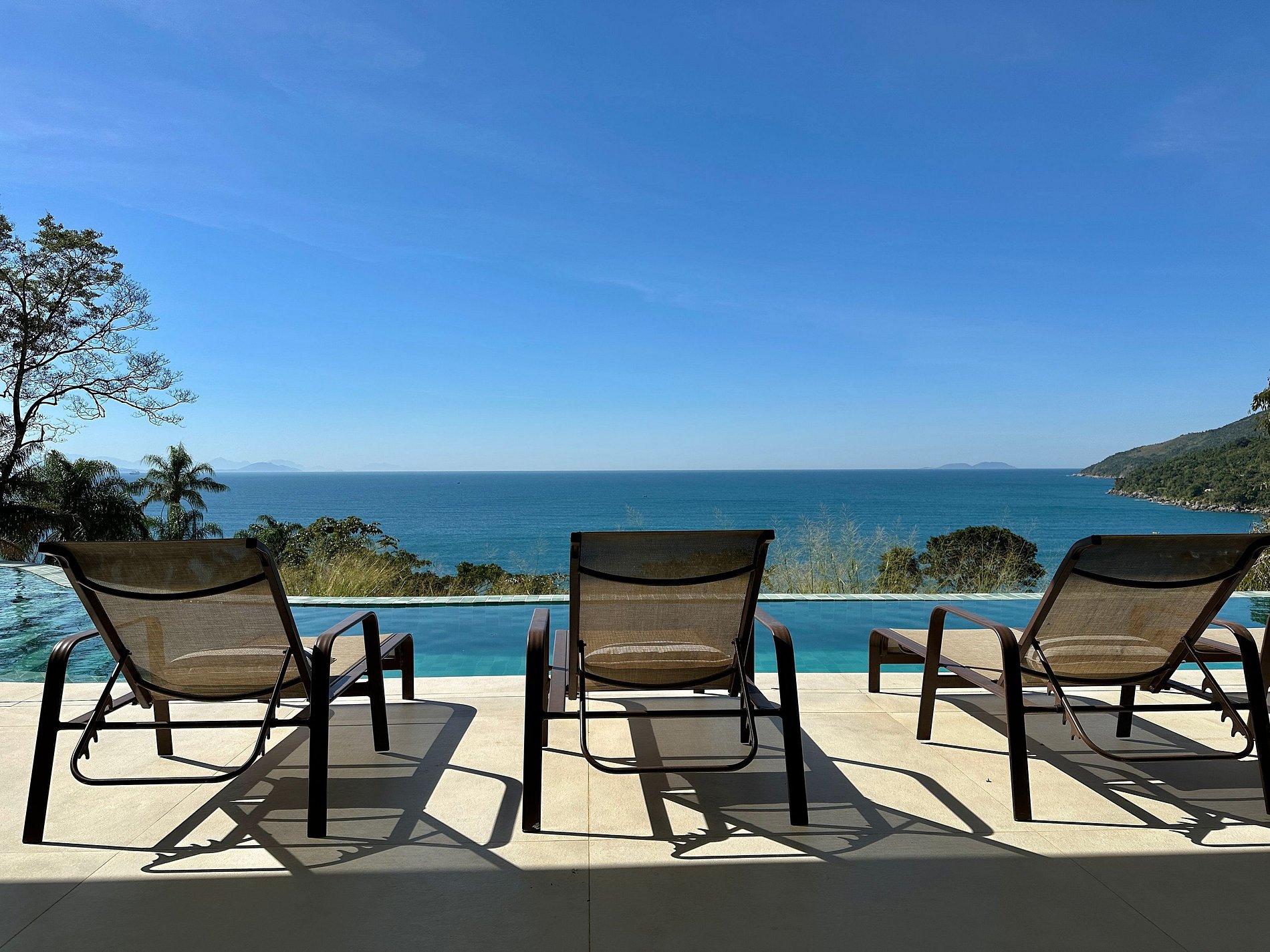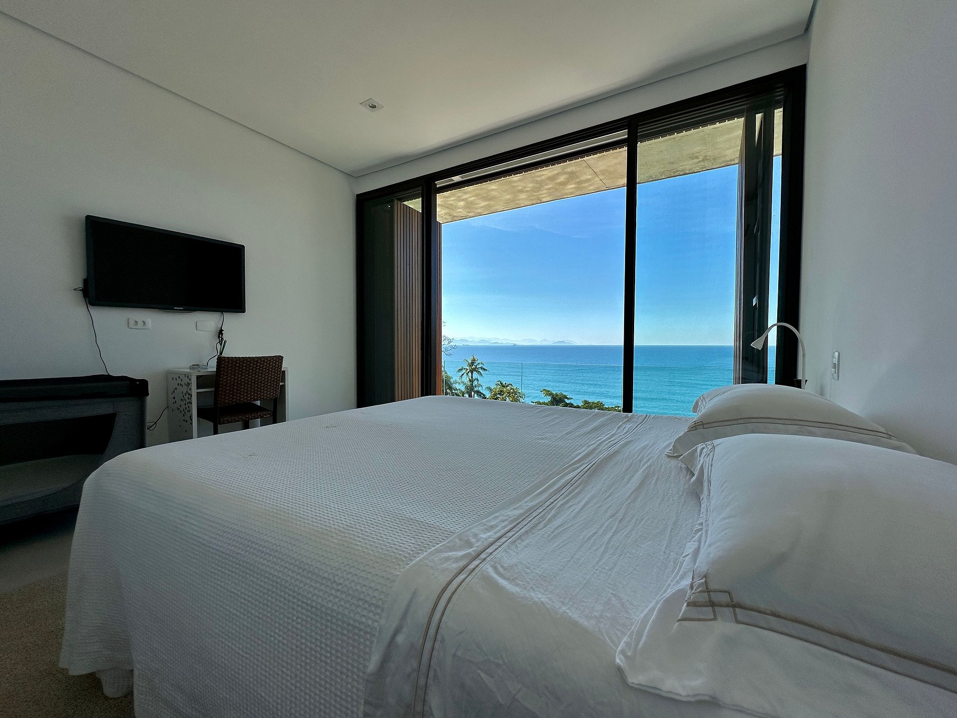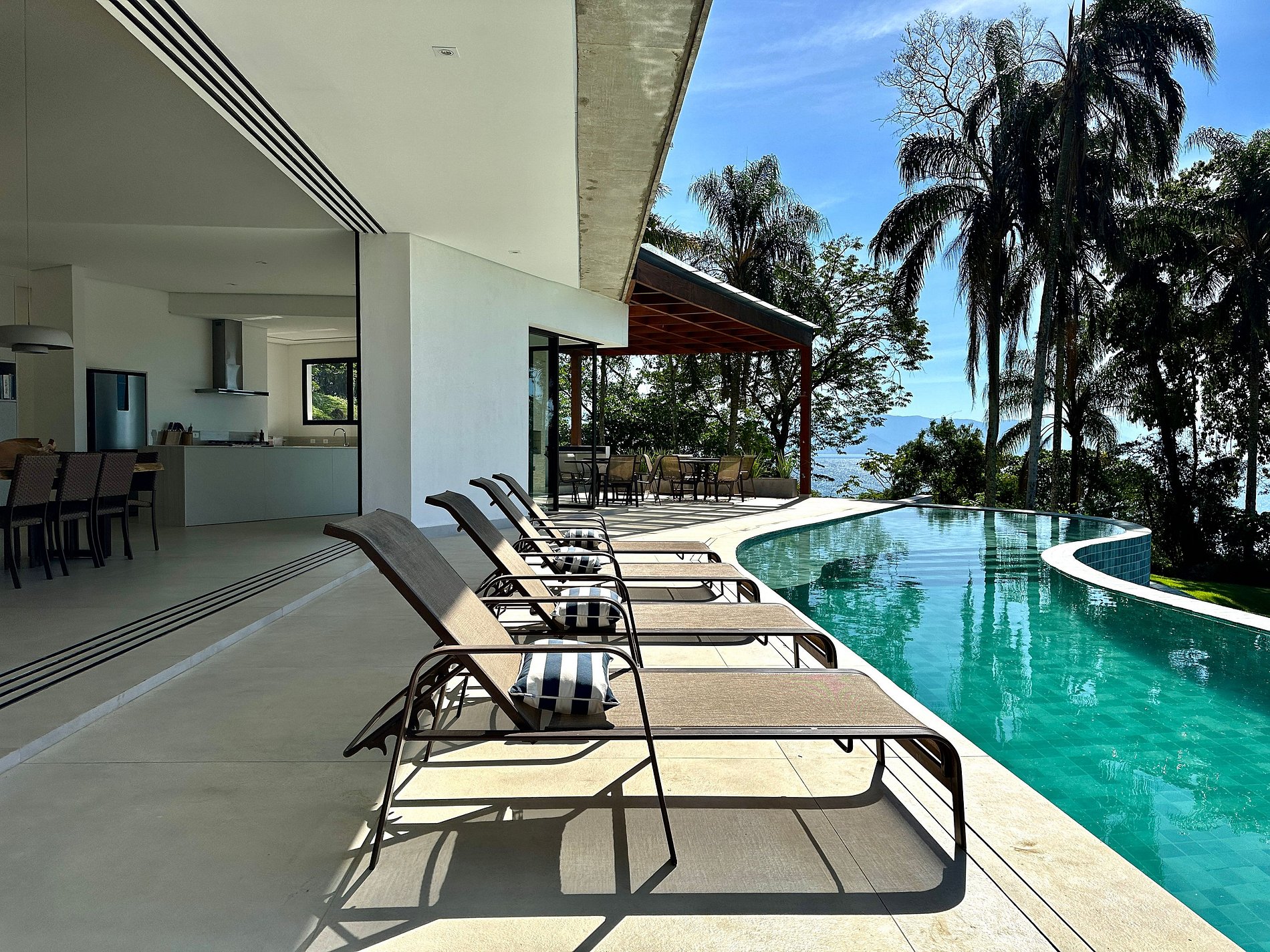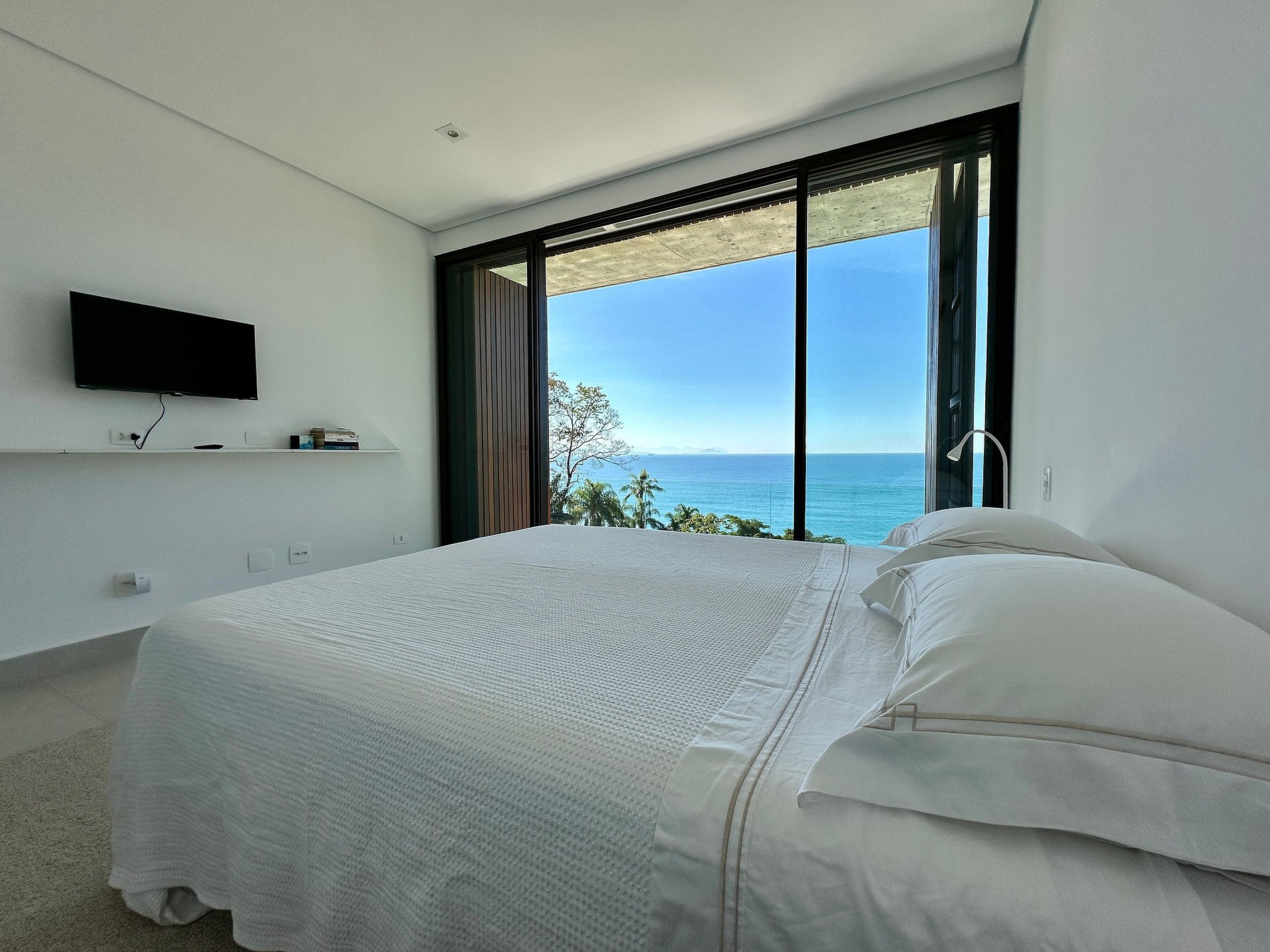 Que tal viver essa experiência incrível no Norte de Ilhabela? Casa nova, recém construída, com vista panorâmica de todos os cômodos, muito conforto e privacidade, no Condomínio Pacuíba, o mais luxuoso da ilha. Acesso à praia diretamente pelo condomínio, um privilégio! Família até 12 pessoas. São 5 suítes, todas com ar-condicionado. Salas de estar, TV e cozinha integradas. Smart TV e Wi-fi. Área externa com piscina, espaço gourmet, churrasqueira, fogueira e *carregador veicular*.