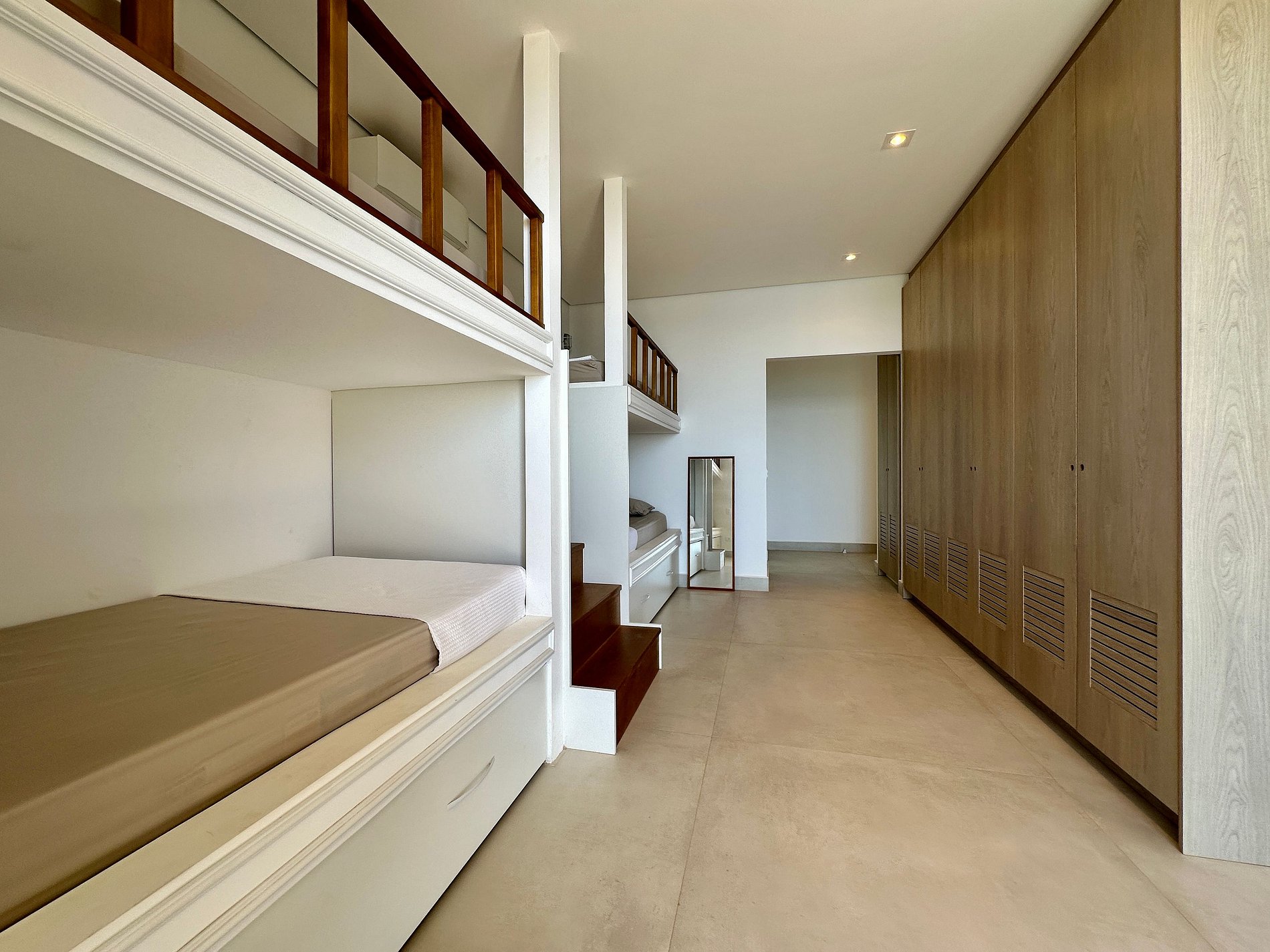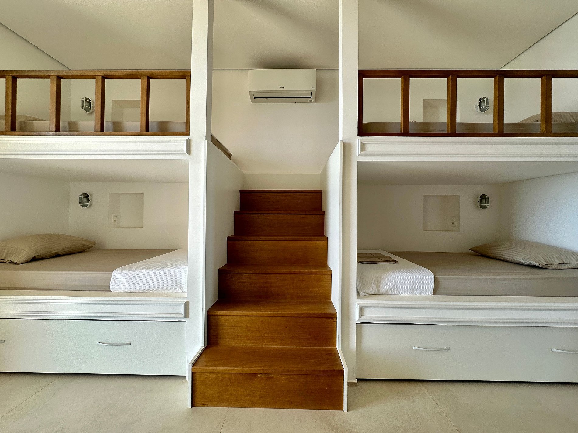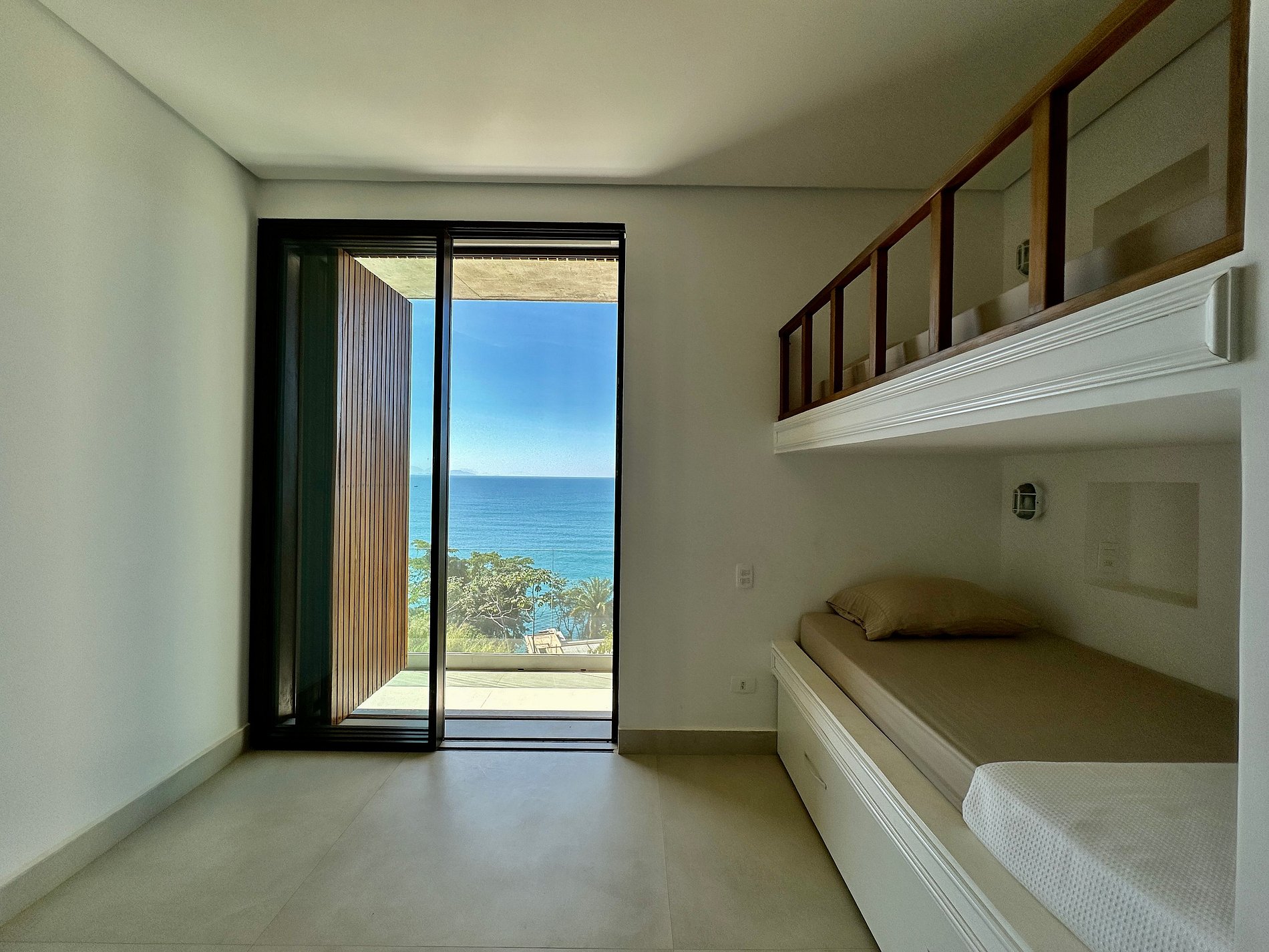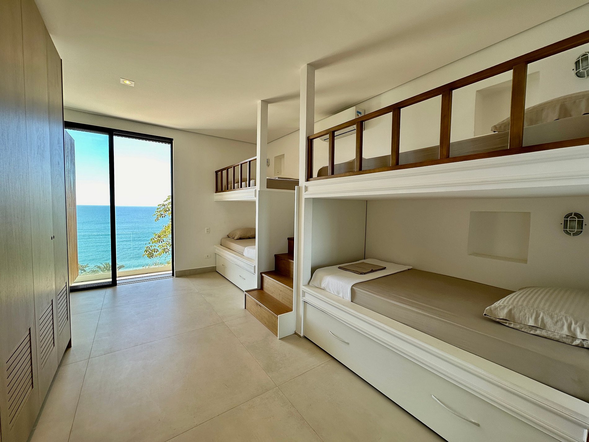 Suíte 5 - 4 camas de solteiro (2 beliches), com acesso à varanda.