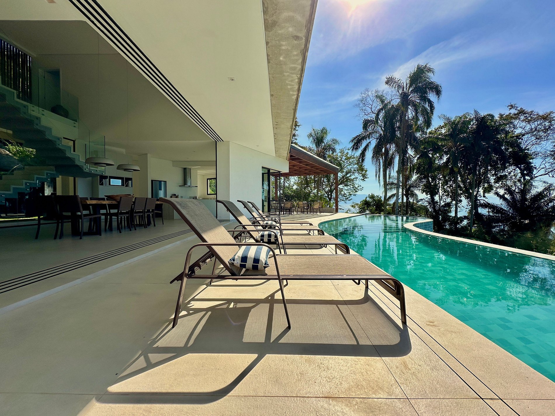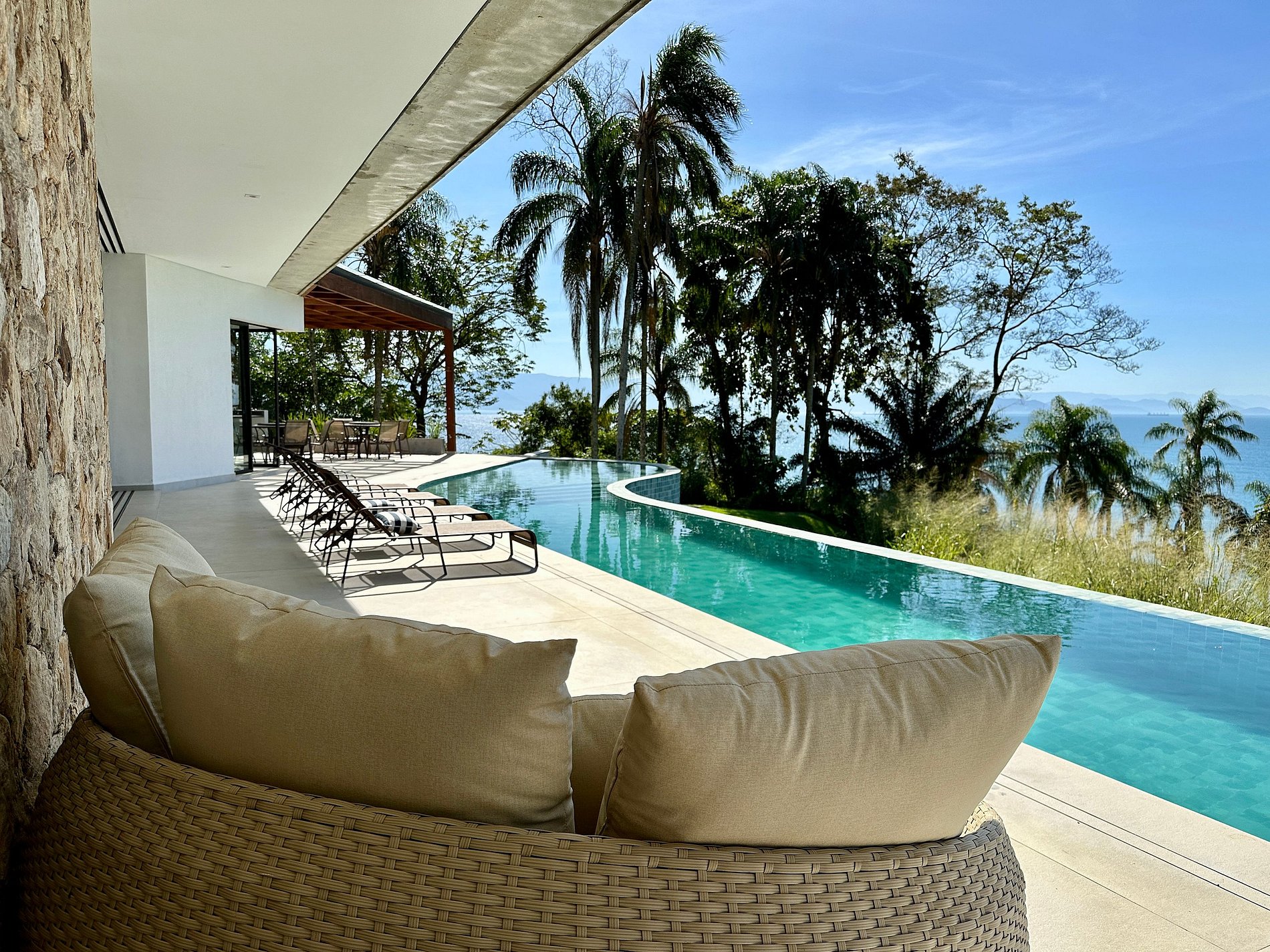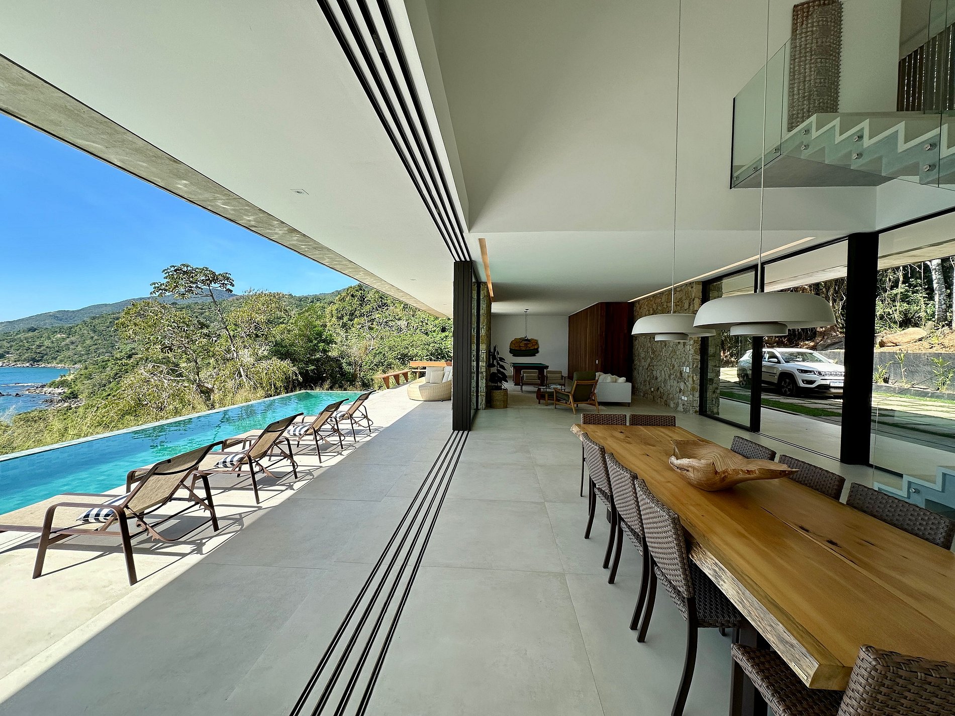 - Construída com total integração à natureza, varandas incríveis e uma vista deslumbrante de todos os cômodos da casa;