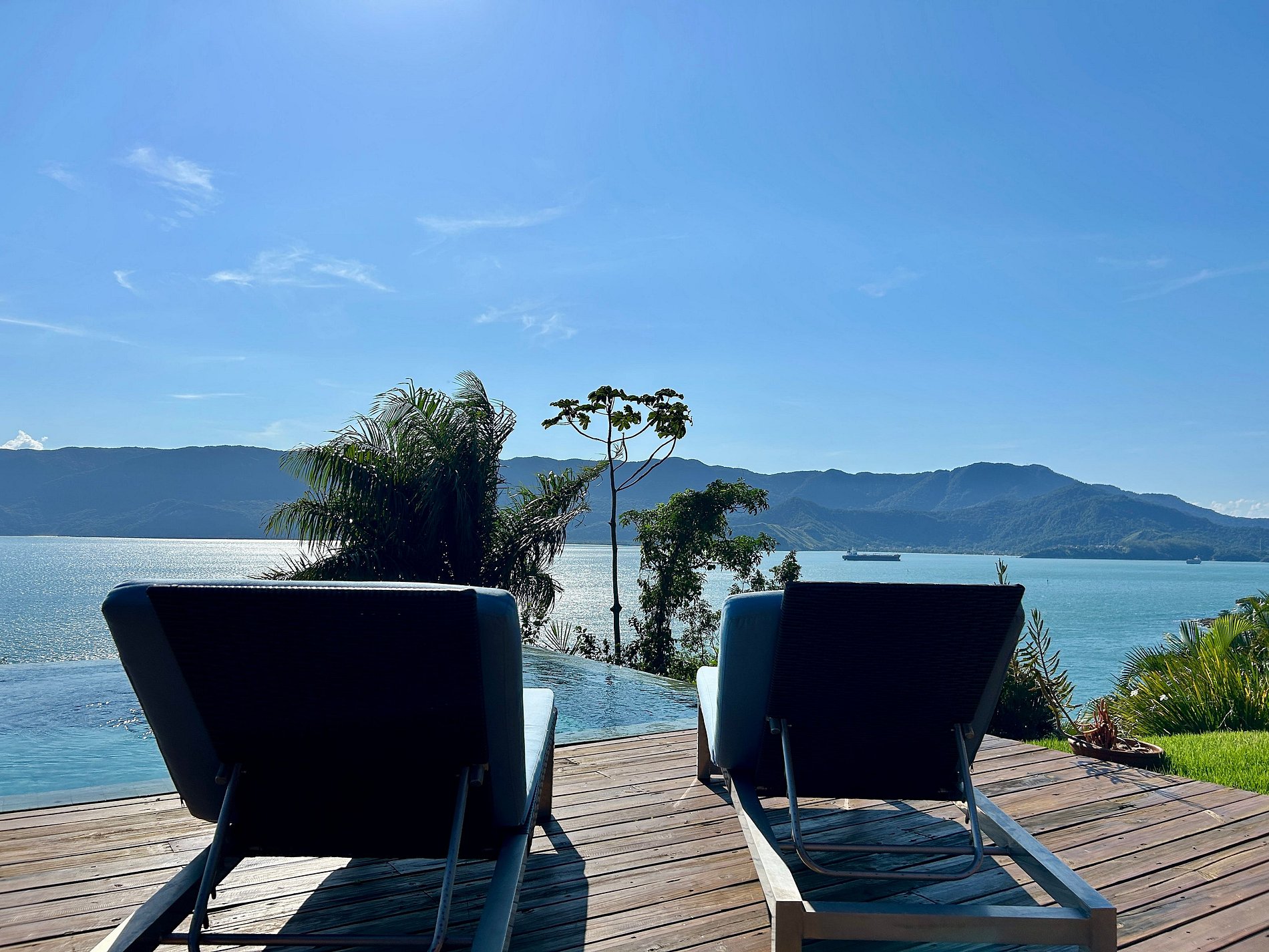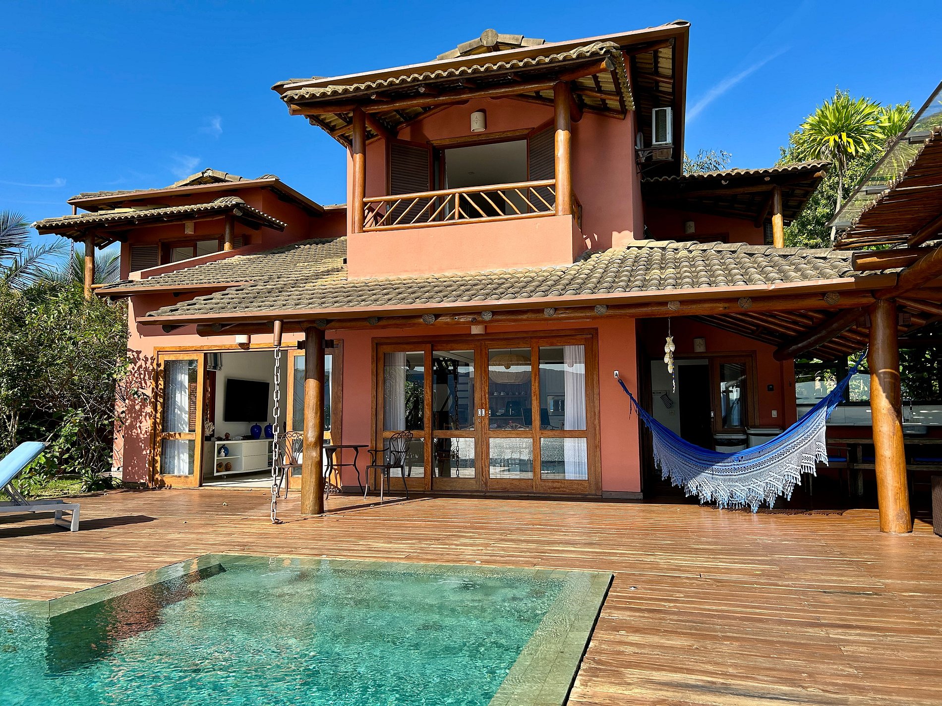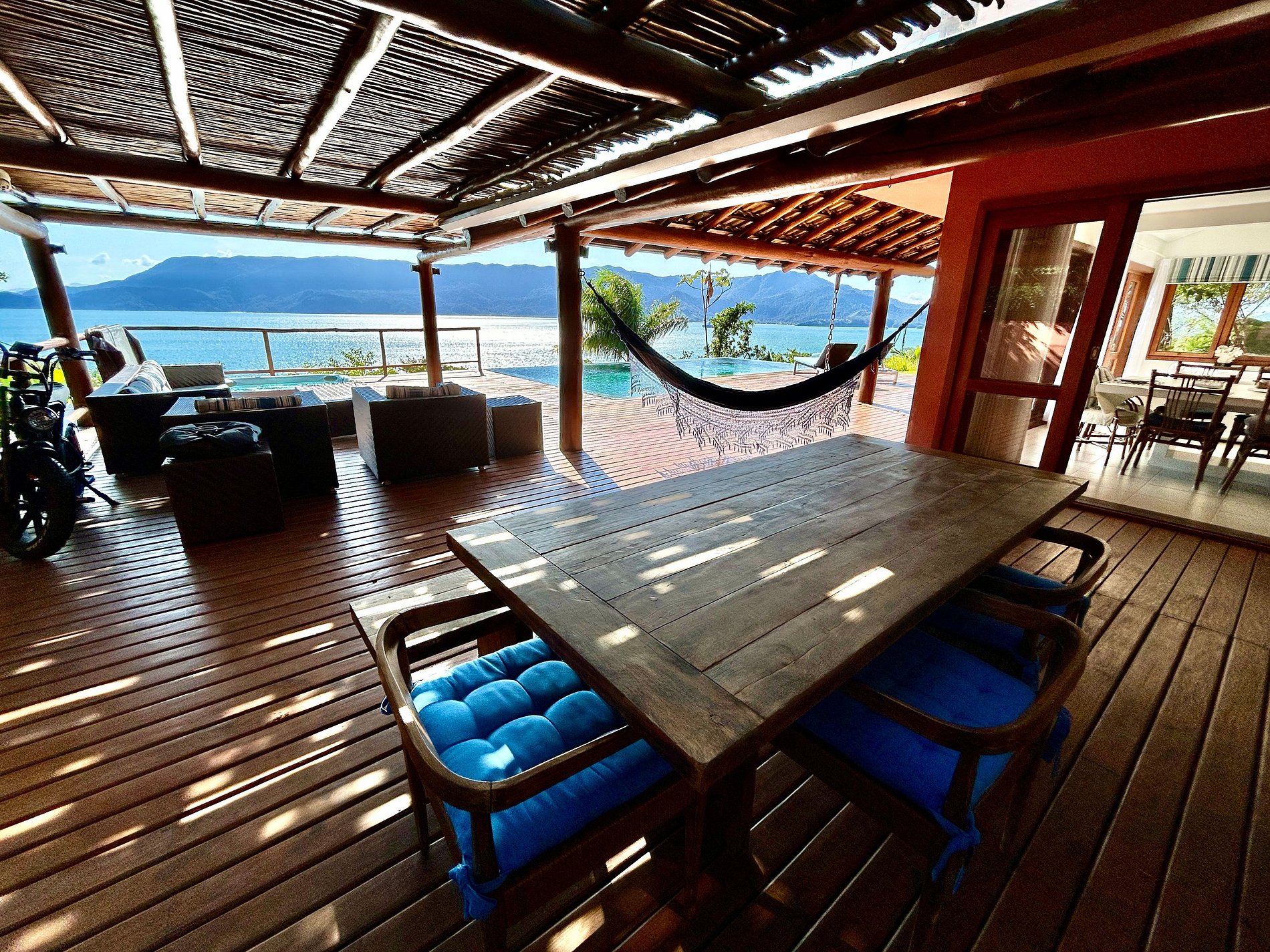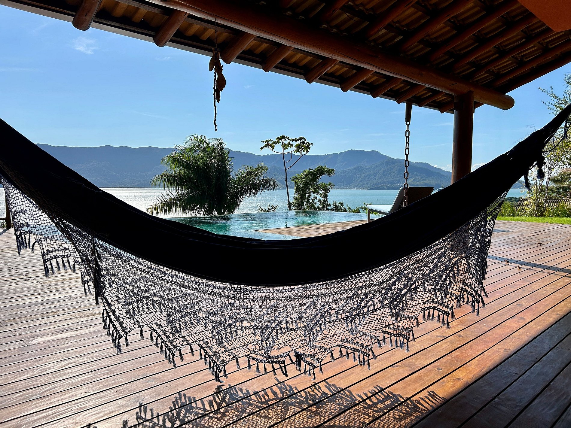 - Área externa sensacional, amplo deck com jacuzzi (sem aquecimento) piscina de borda infinita, lounge confortável, churrasqueira e mesa para refeições ao ar livre;