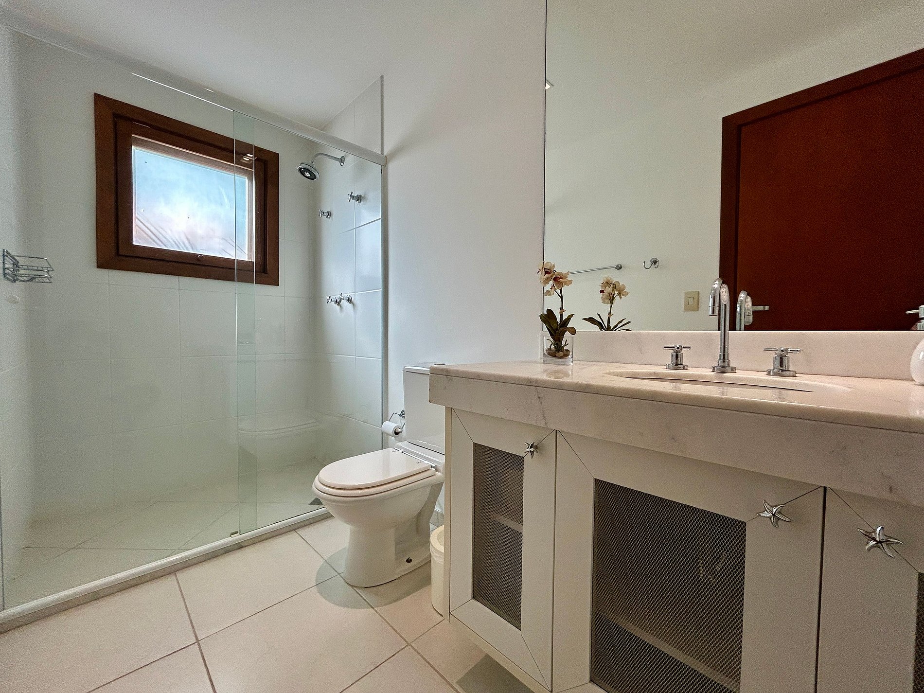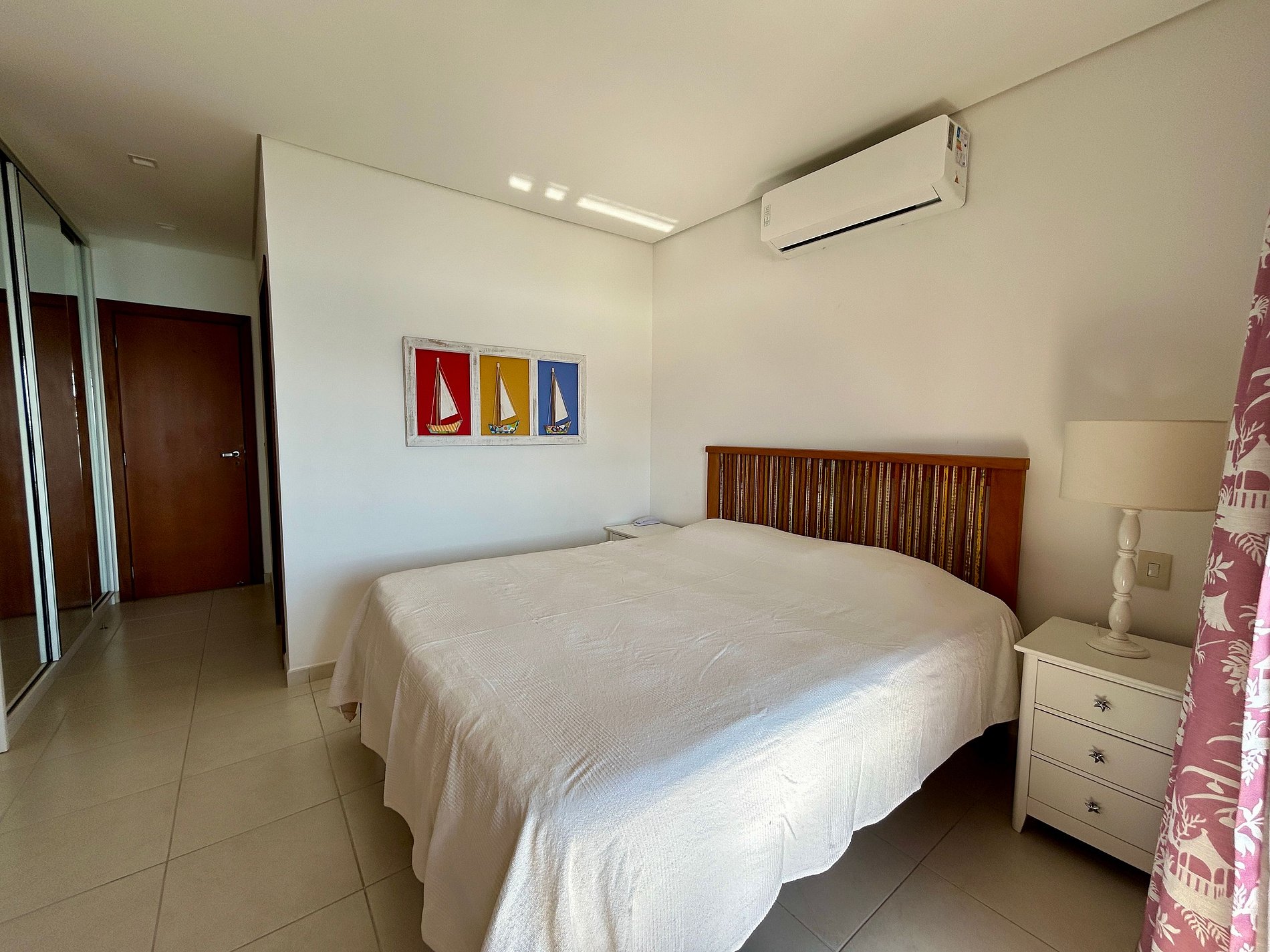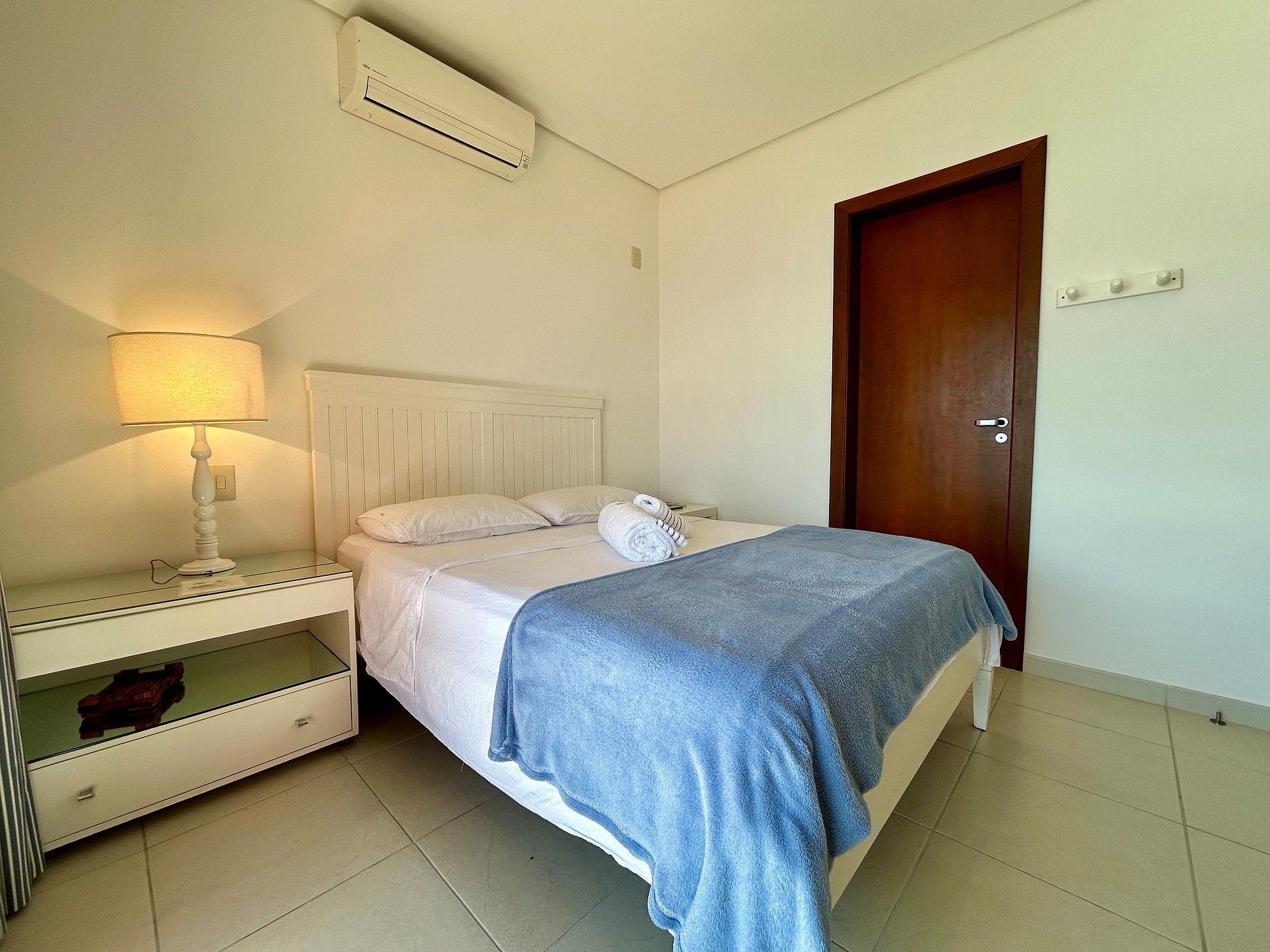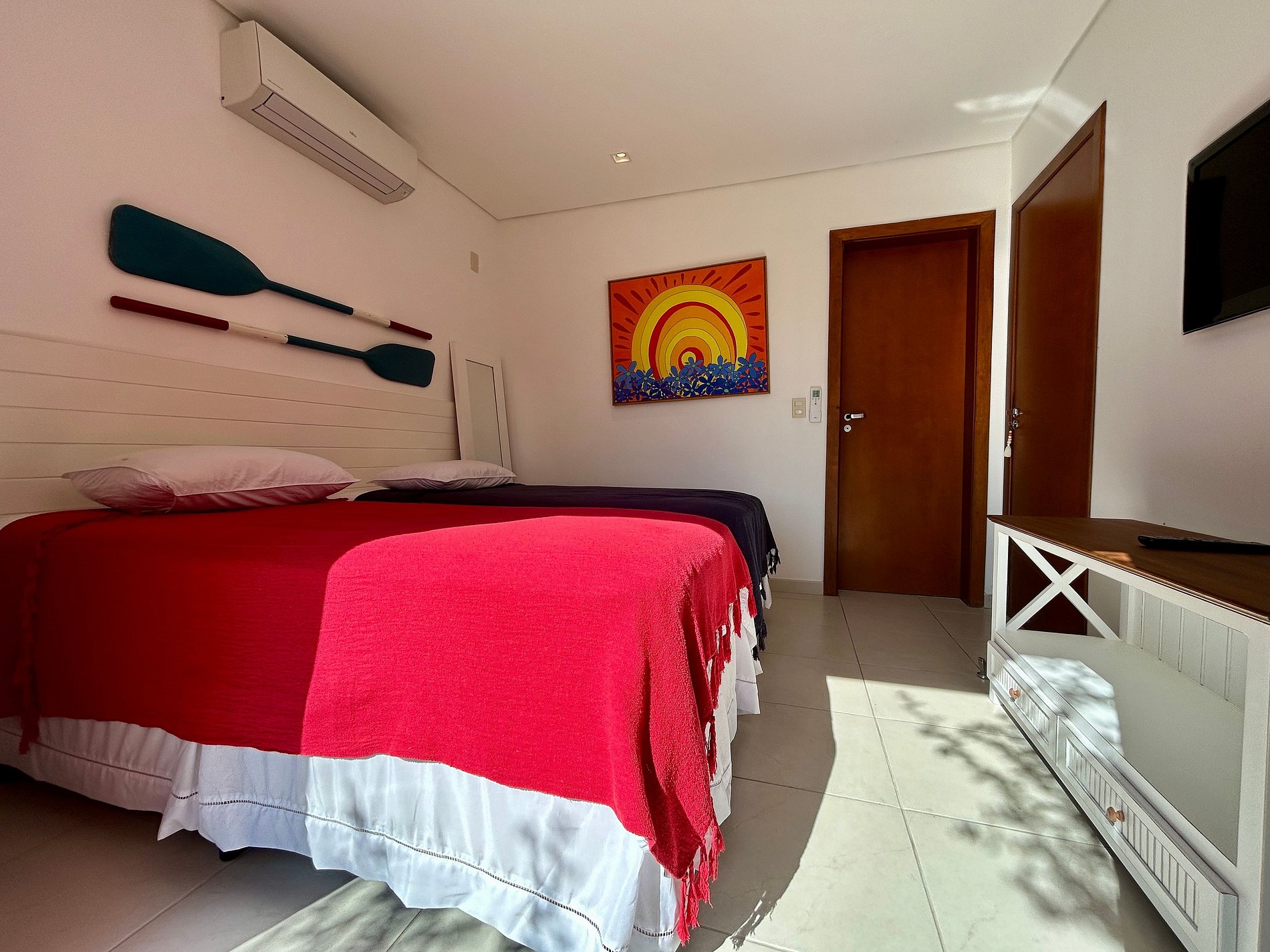 São 4 suítes, todas com ar-condicionado e enxoval completo, na seguinte configuração: