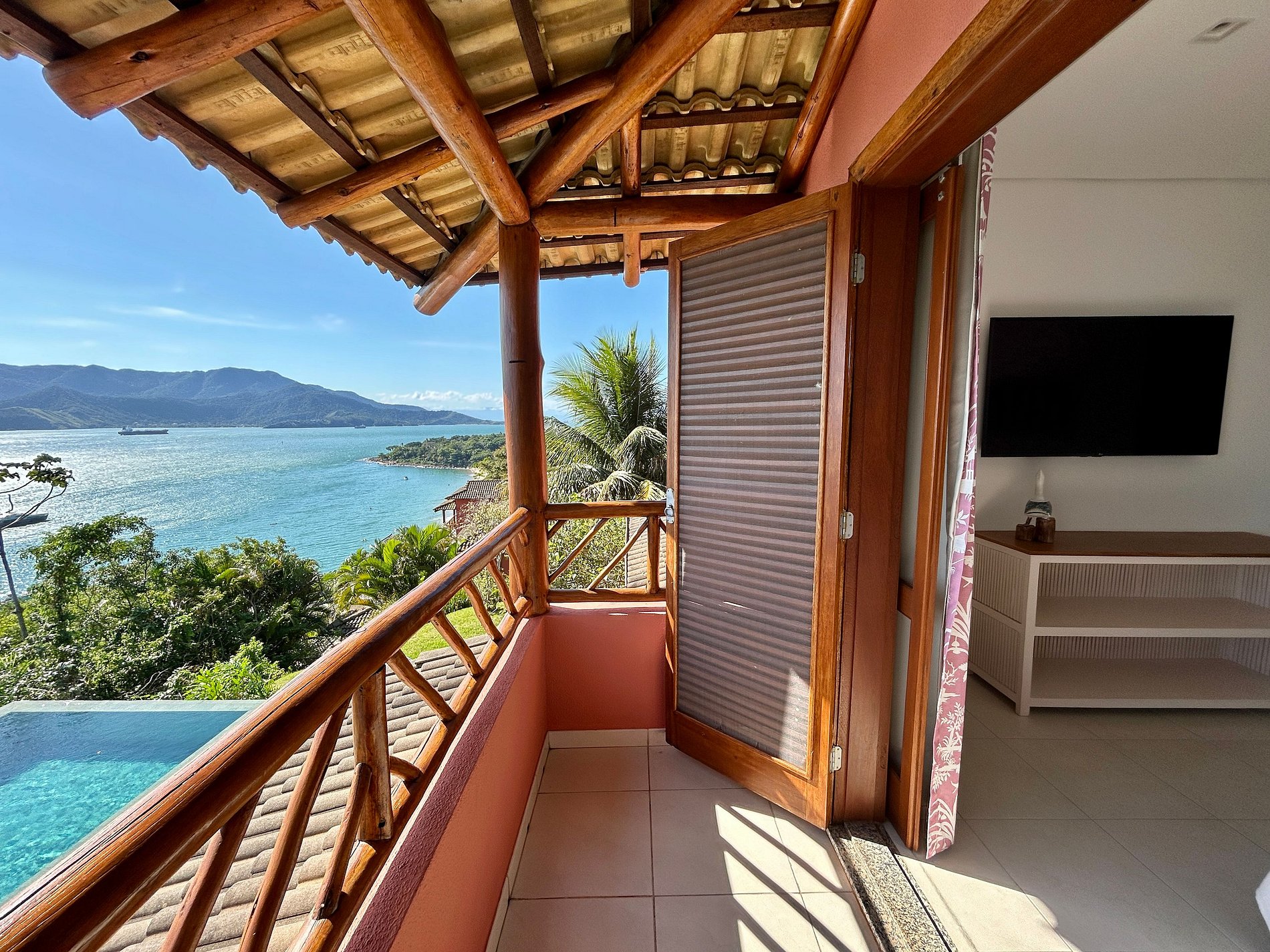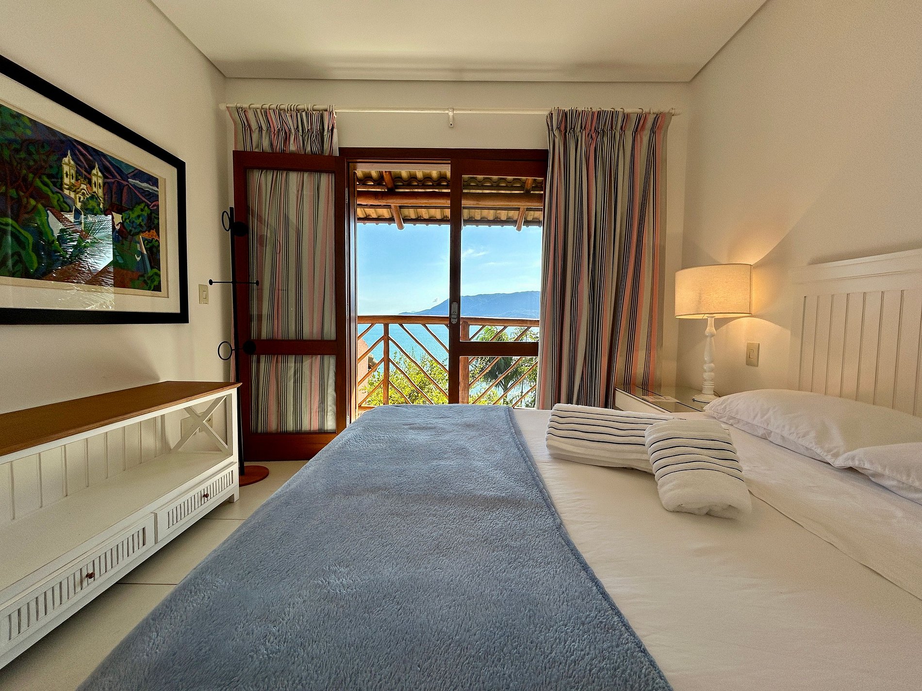 Suíte 2 - 1 cama queen, varanda e vista para o mar;