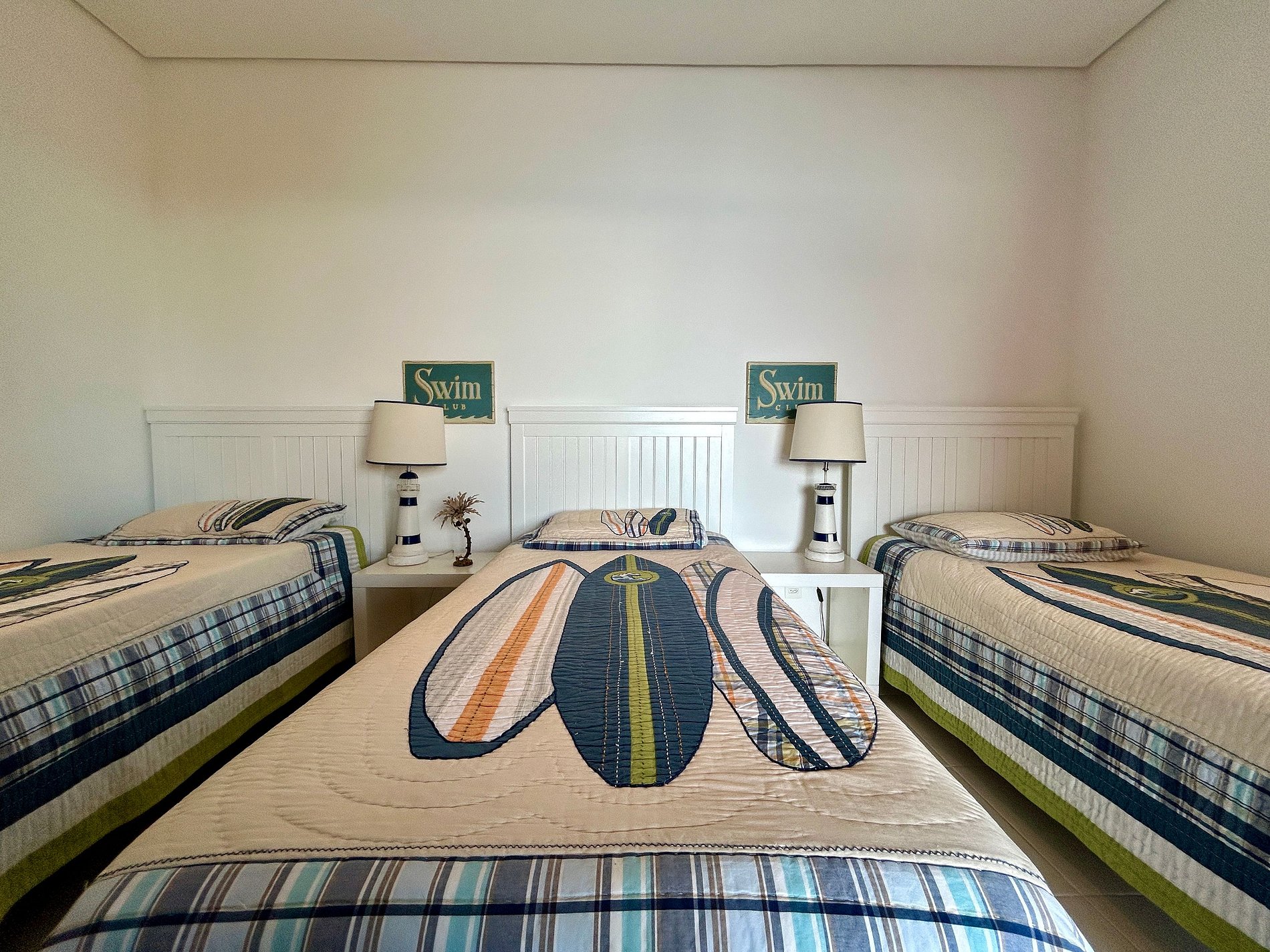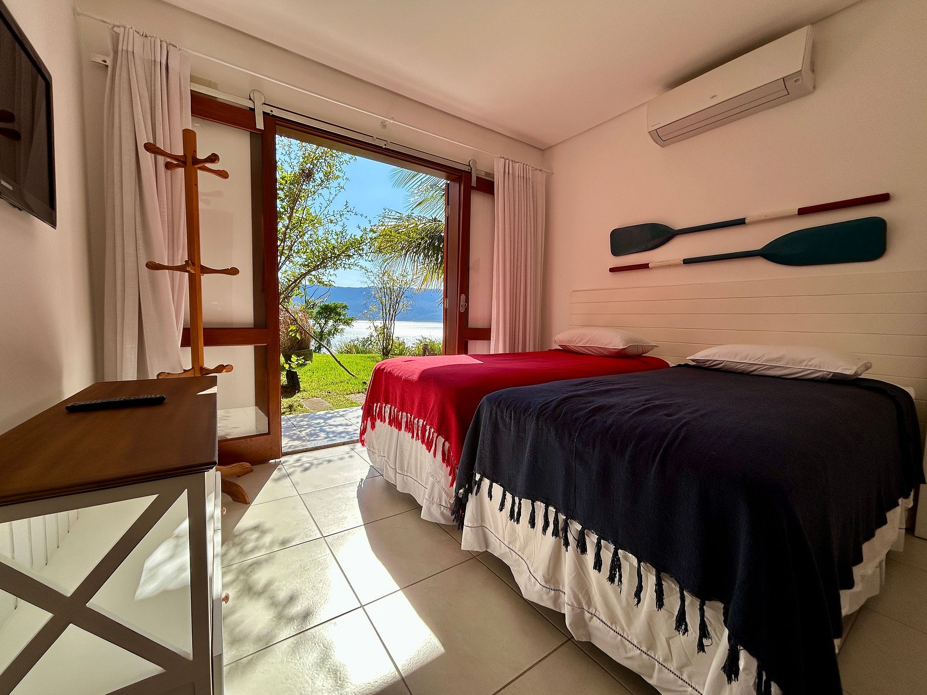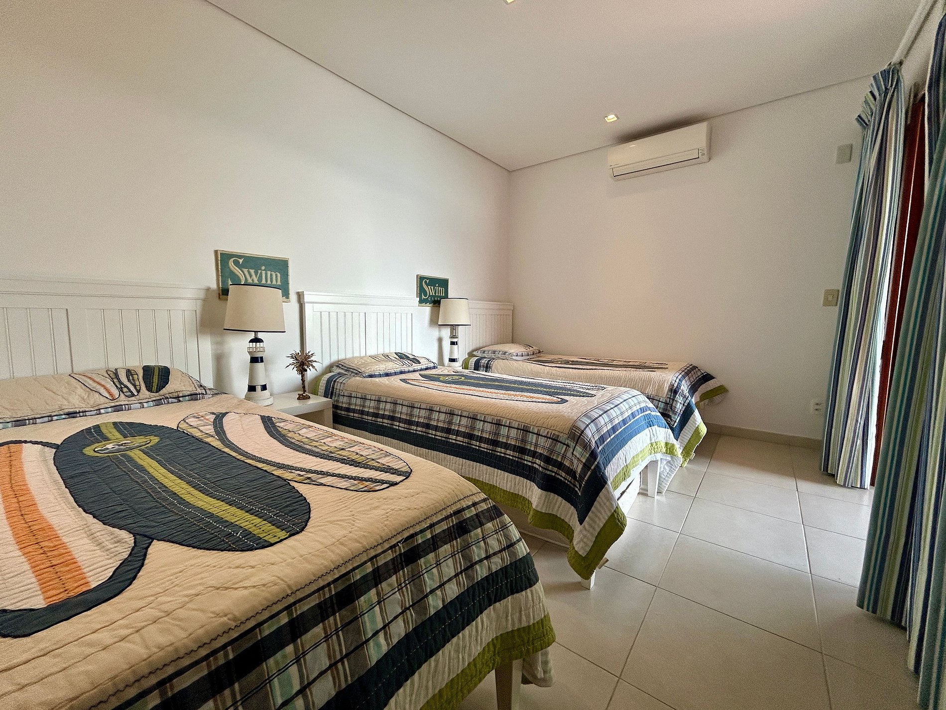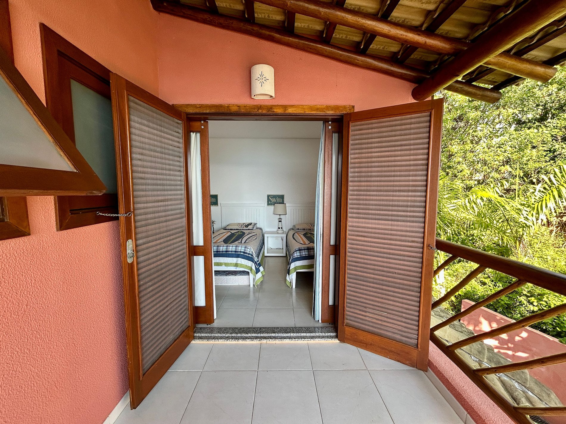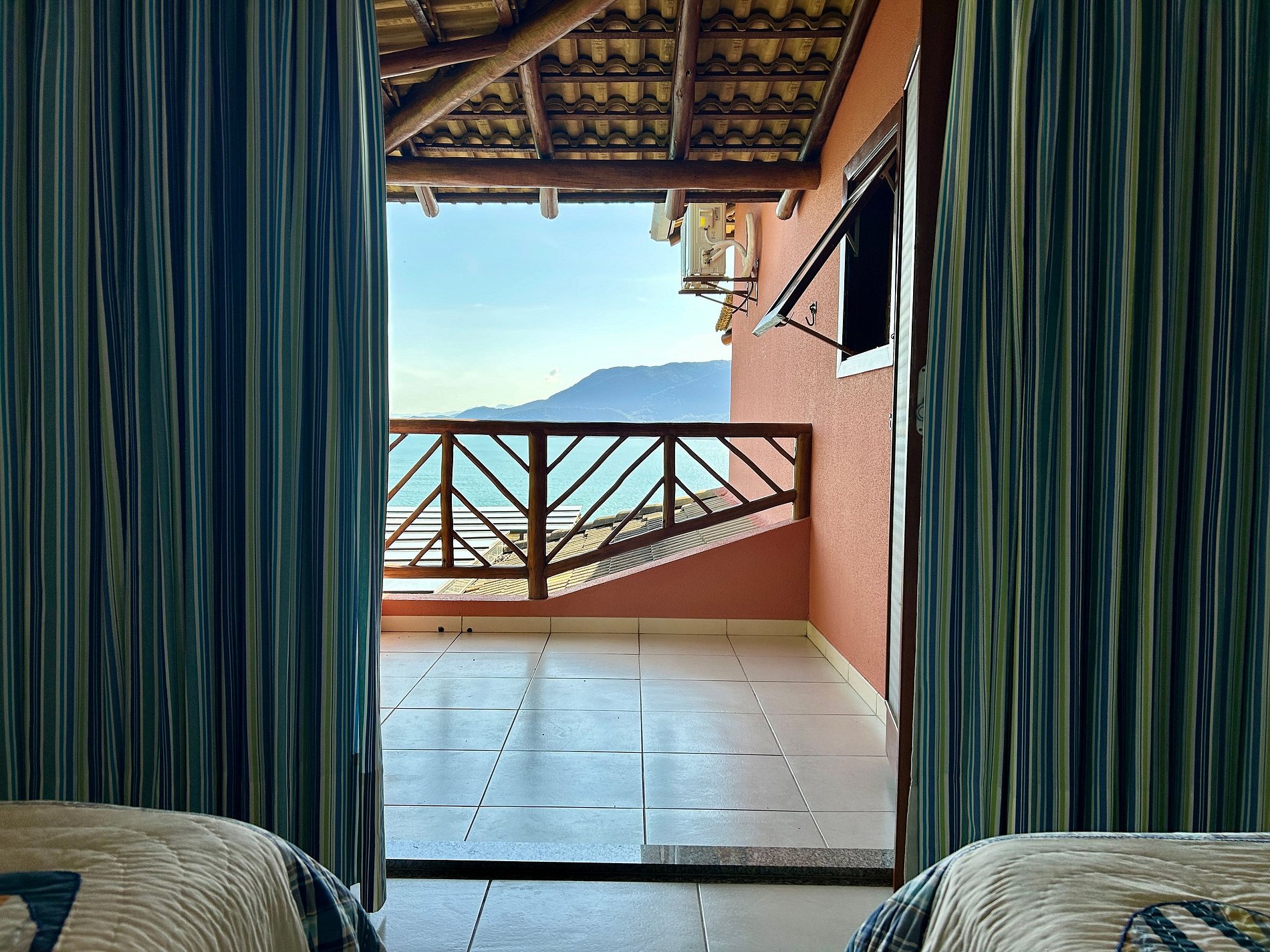 Suíte 3 - 3 camas de solteiro, varanda e vista para o mar;