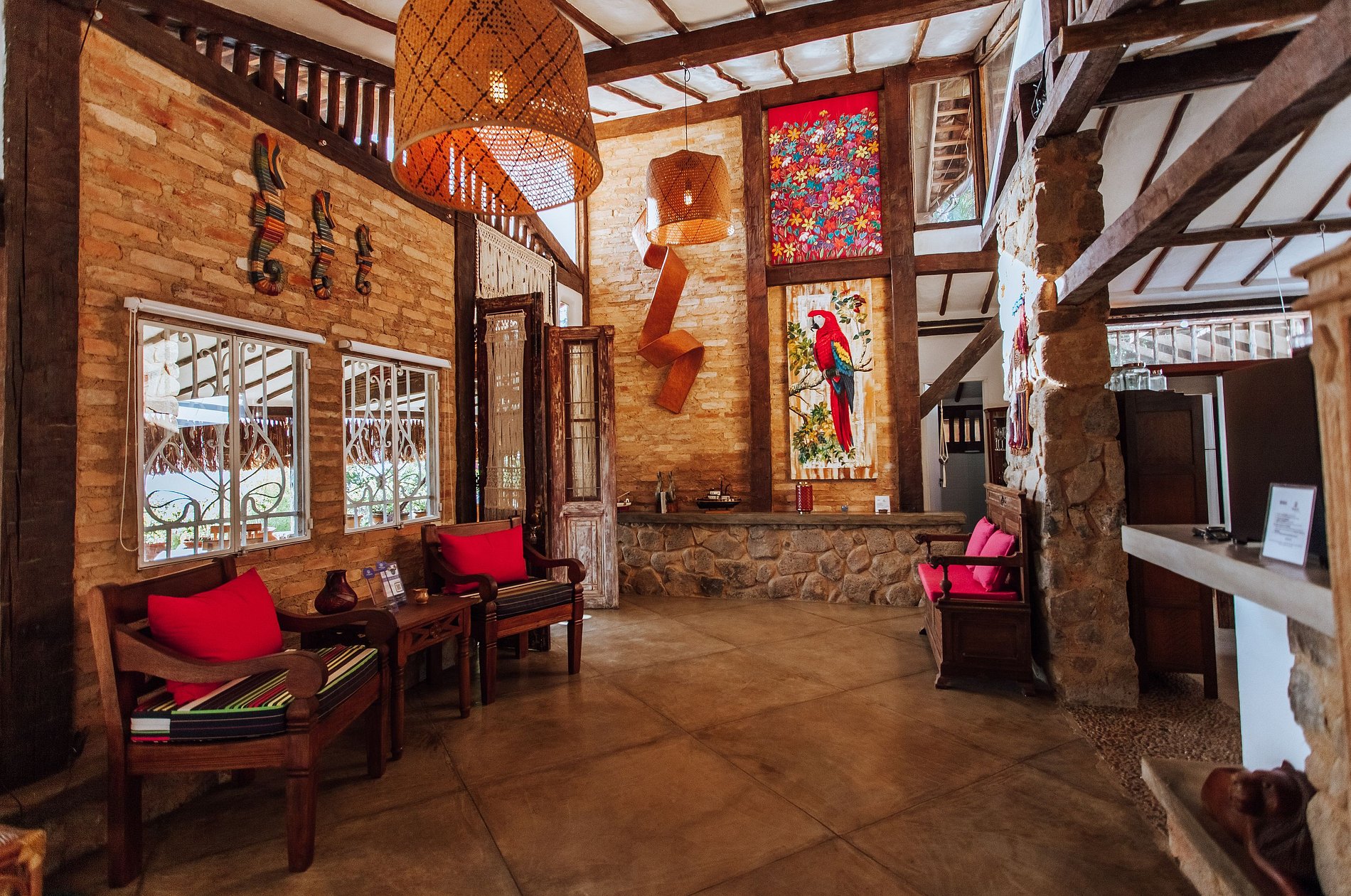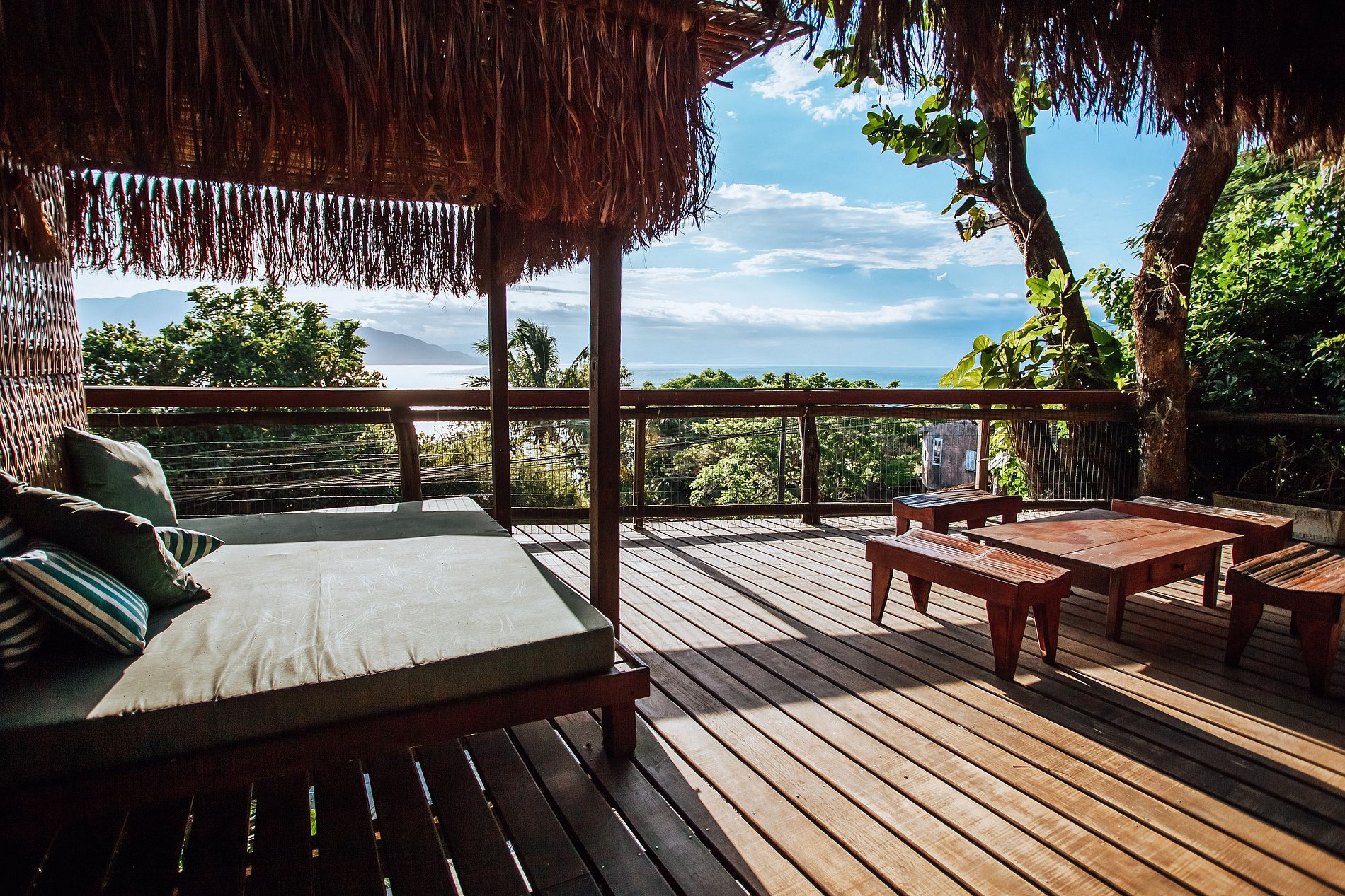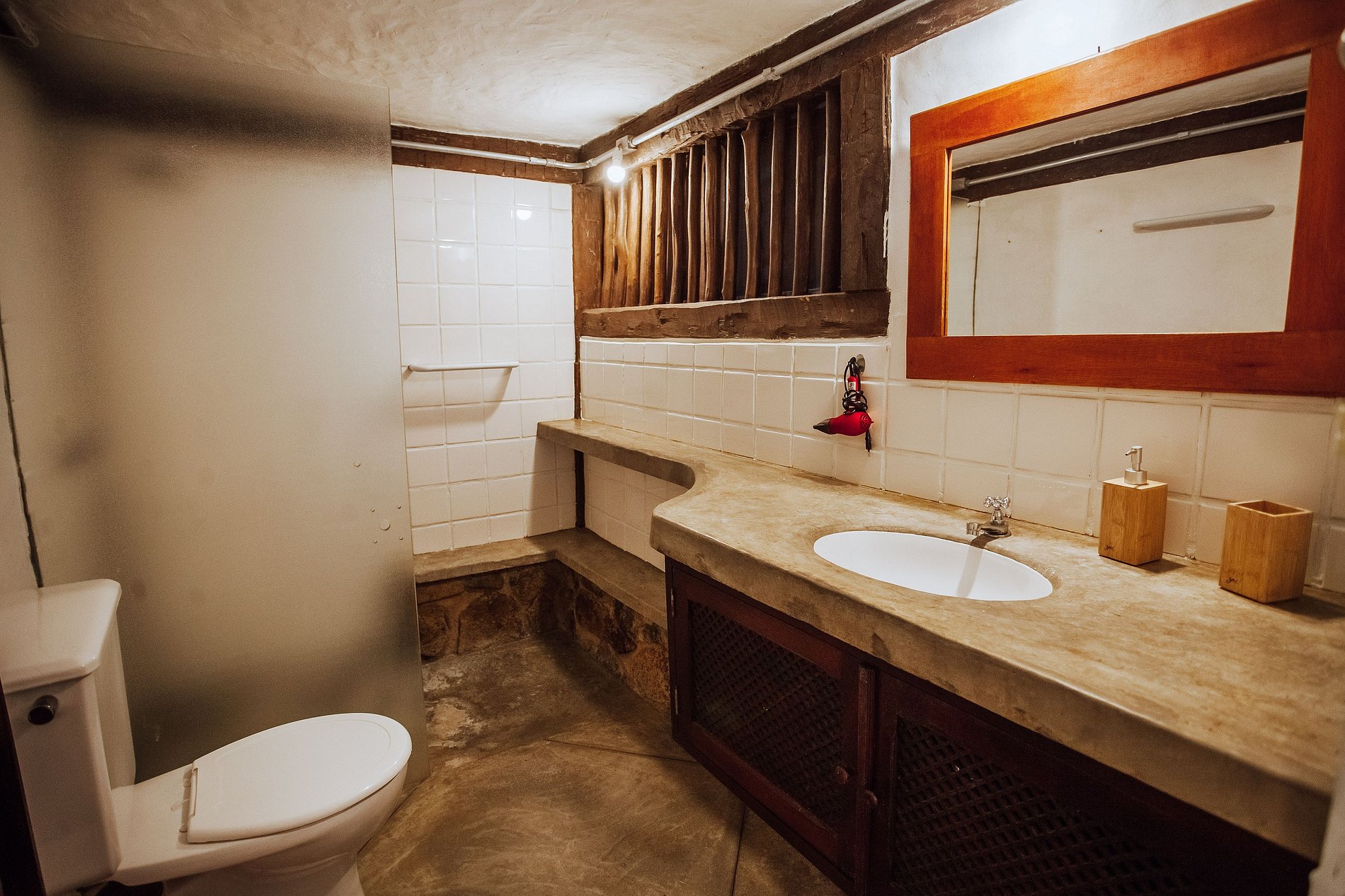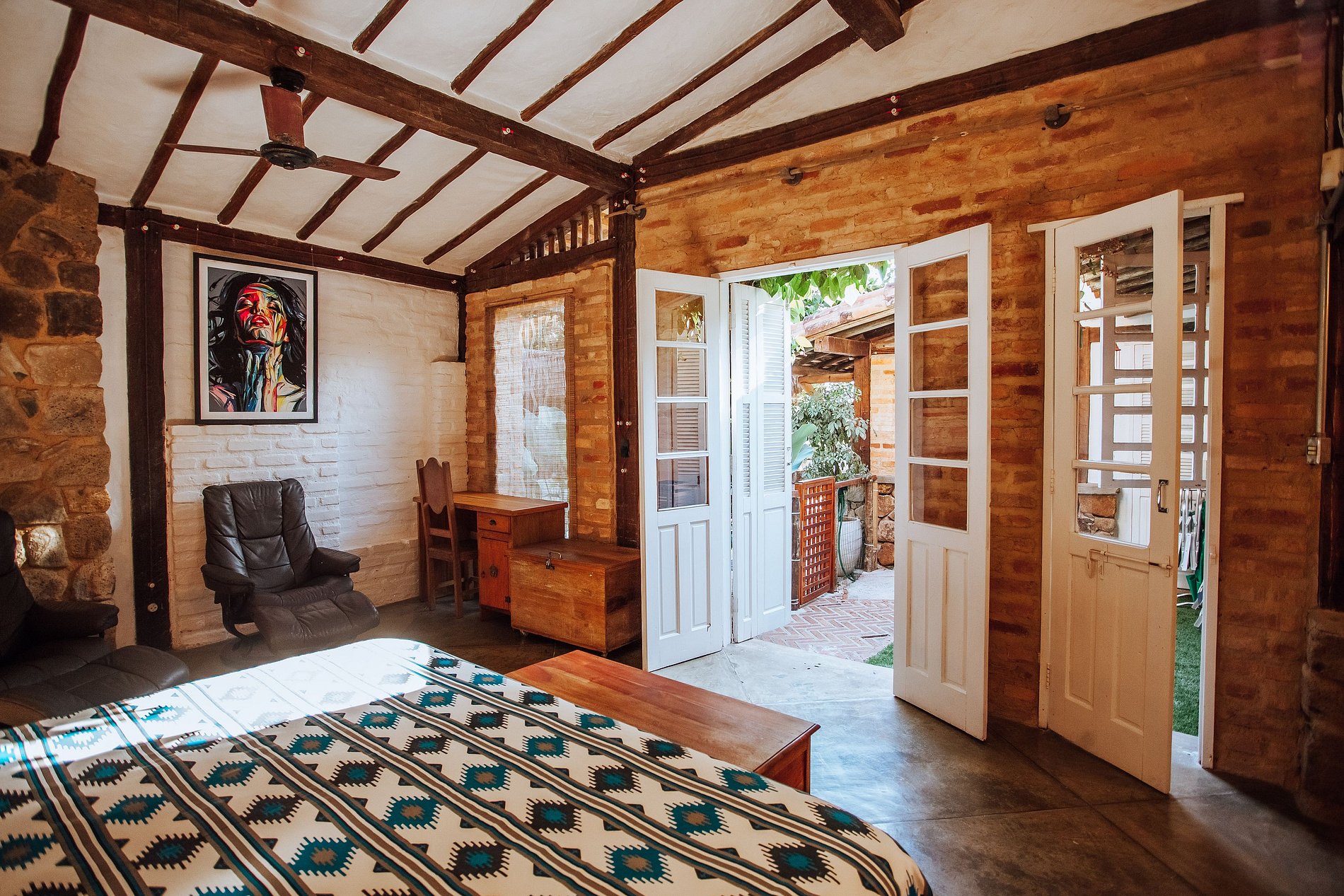 - Ainda na área externa, uma suíte na árvore proporciona uma experiência mais rústica e de integração à natureza, com banheiro com teto de policarbonato e quarto coberto de sapé;