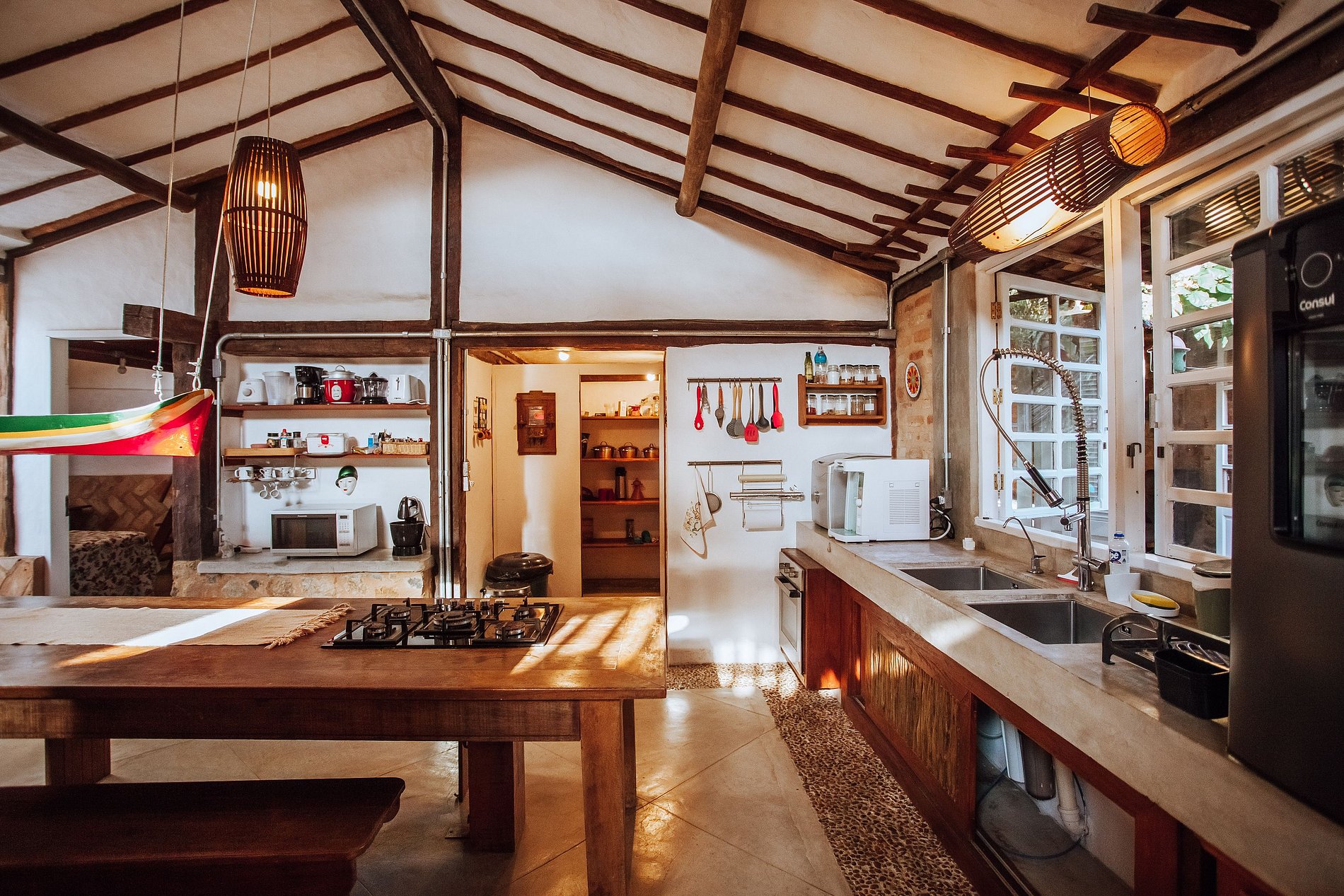 - Cozinha conta com forno elétrico e a gás, cooktop, geladeira com freezer, micro-ondas, filtro de água, máquina de gelo, liquidificador, cafeteira de filtro. sanduicheira, espremedor de laranja, batedeira, panela elétrica para arroz, louças, talheres e demais utensílios que garantem uma estadia perfeita. **Há um cadeirão de madeira para bebê, que deve ser solicitado com antecedência, para que possa ser disponibilizado;