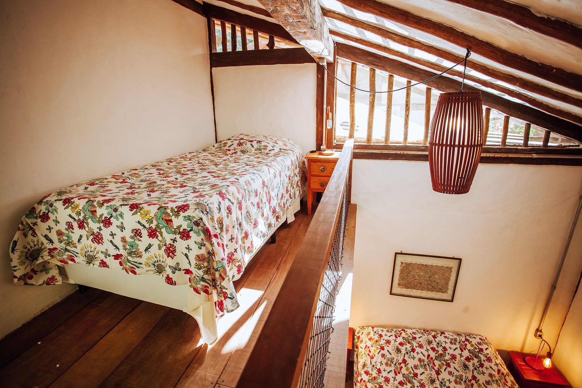 Suíte 2 (interna) - 1 cama de casal queen e um mezanino com 1 cama de solteiro, ar-condicionado split;