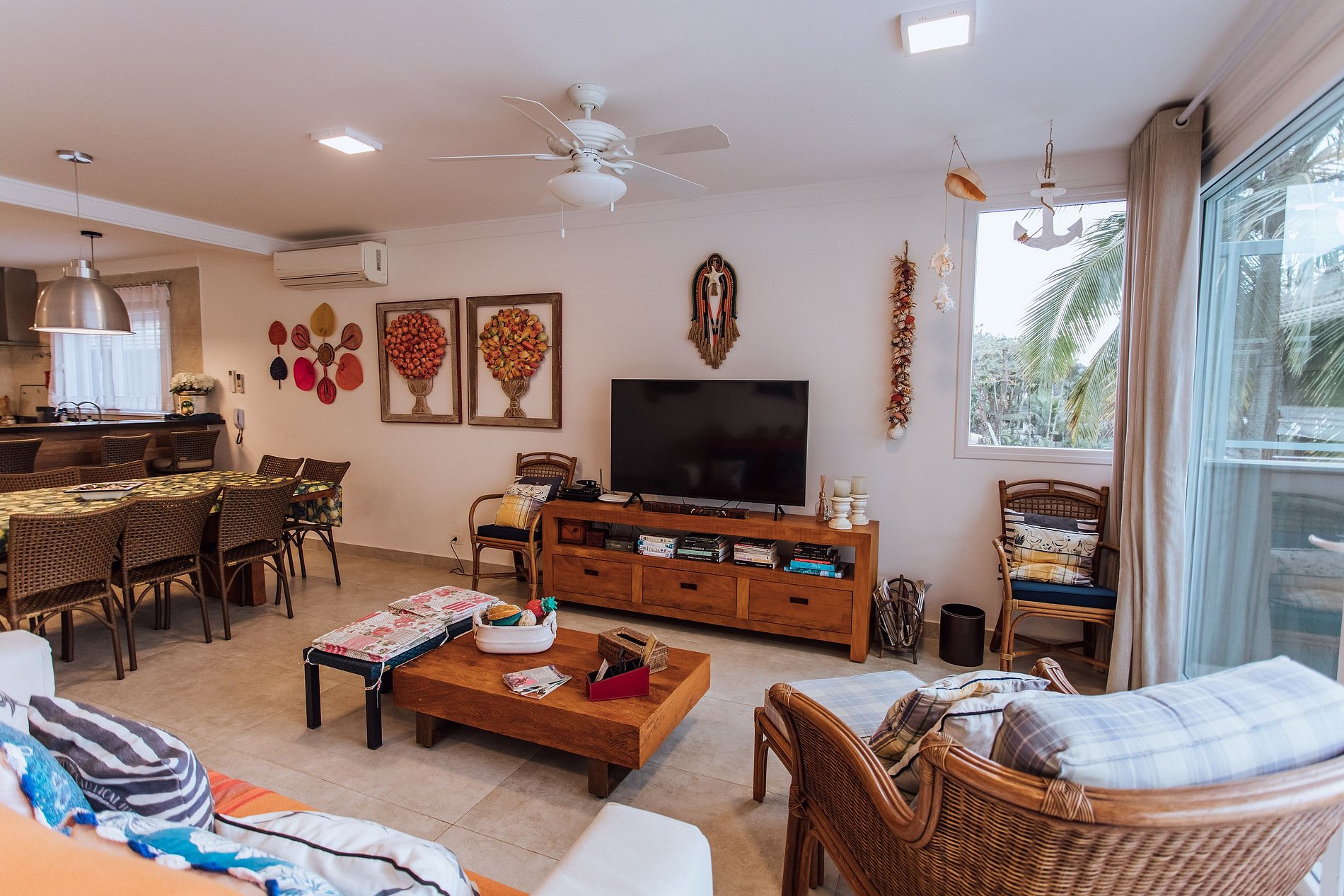 Localizada no Canto de Juquehy, em condomínio fechado à beira-mar, ideal para 8 pessoas. Construída em 2 pavimentos, conta com 2 suítes (uma delas master) e 2 quartos, todos com ar-condicionado. A área social muito agradável, em ambiente integrado, com salas de estar, jantar, cozinha, lavabo, adega, varanda gourmet com churrasqueira e bela piscina, com uma vista sensacional da praia em frente. Smart TV e Wi-fi. Uma segunda varanda e um solário completam o visual maravilhoso de mar e montanha.