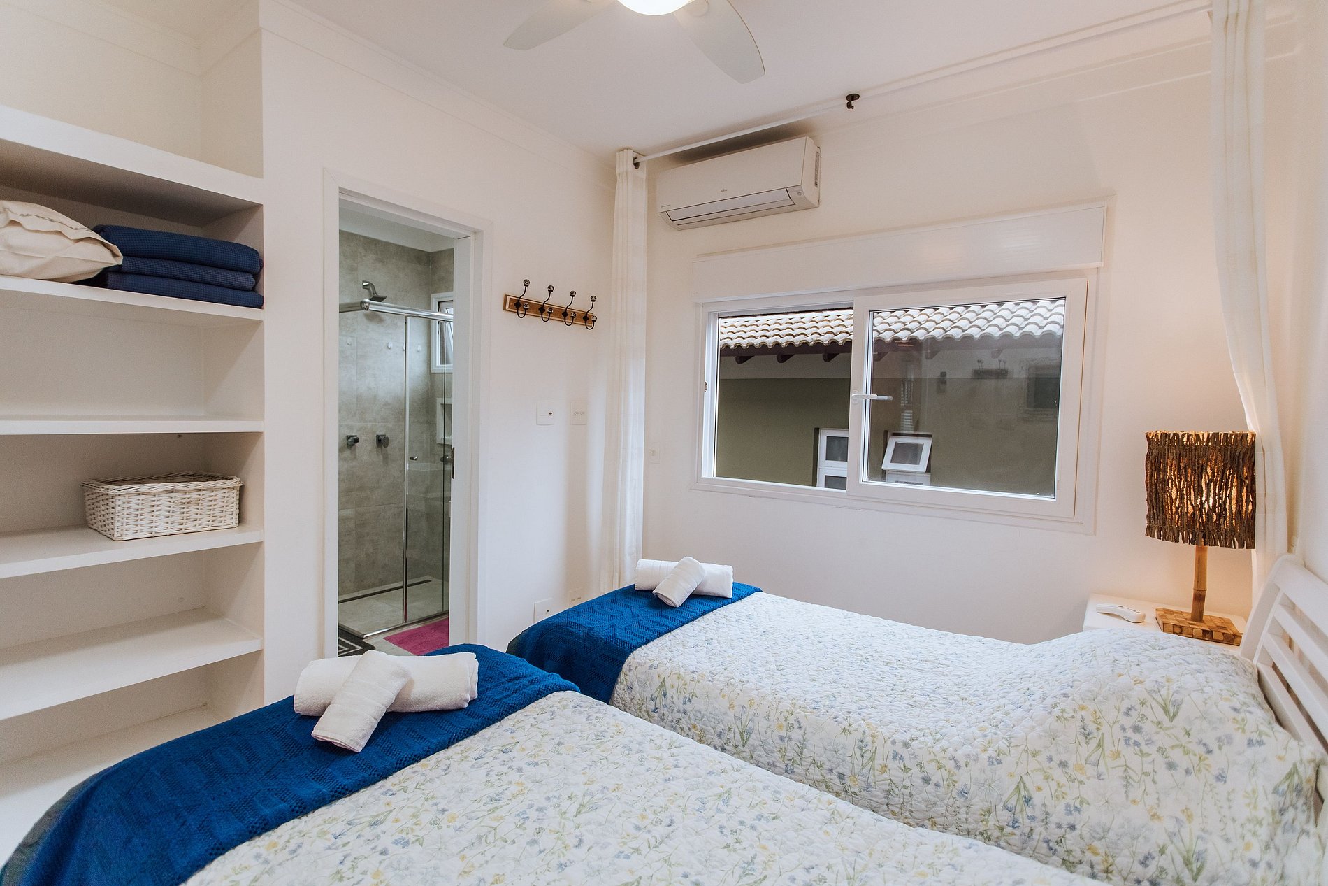 - quarto 2 - 2 camas de solteiro, enxoval completo, armário aberto, ar-condicionado, com saída para o solário e vista para a mata atlântica;