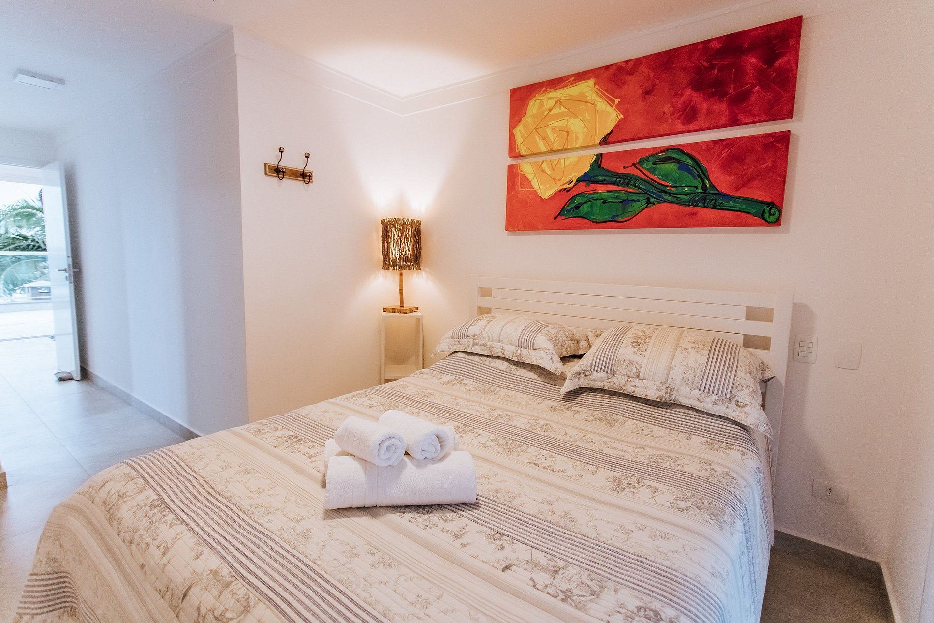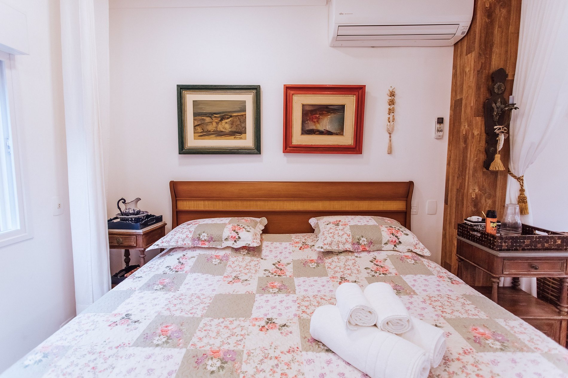 - quarto 1 - 1 cama de casal, enxoval completo, ar-condicionado, com saída para o solário e vista para a mata atlântica;