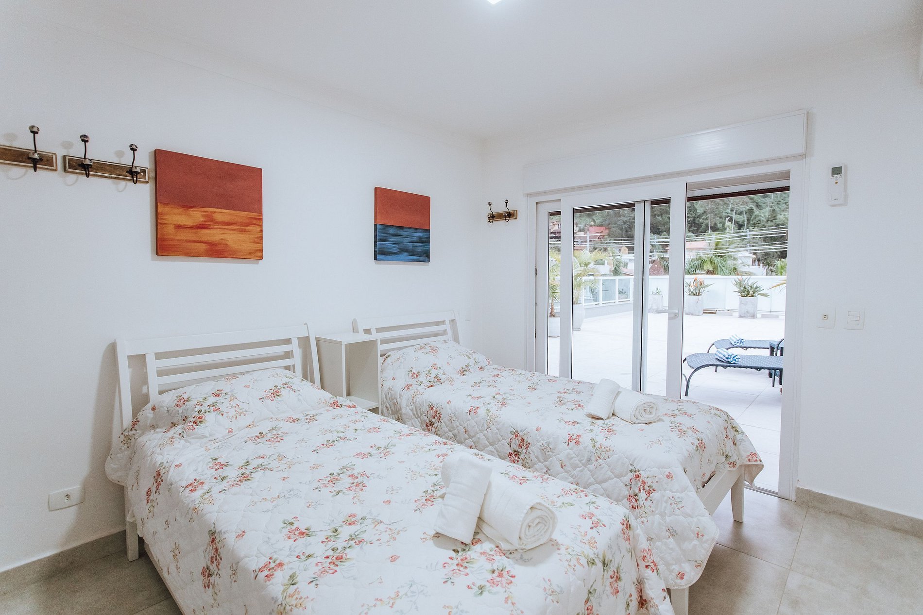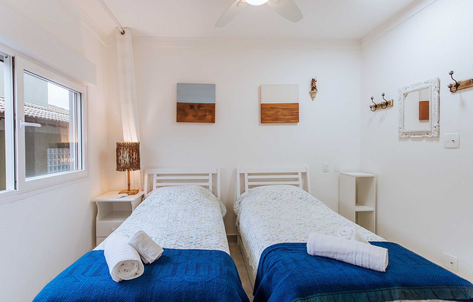 - quarto 2 - 2 camas de solteiro, enxoval completo, armário aberto, ar-condicionado, com saída para o solário e vista para a mata atlântica;