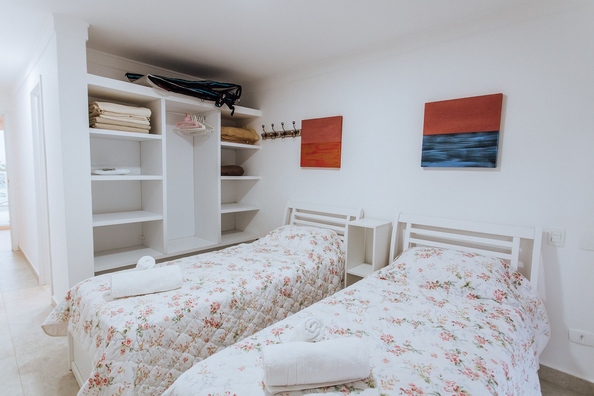 - suíte 2 - 2 camas de solteiro, armário aberto, enxoval completo e ar-condicionado.