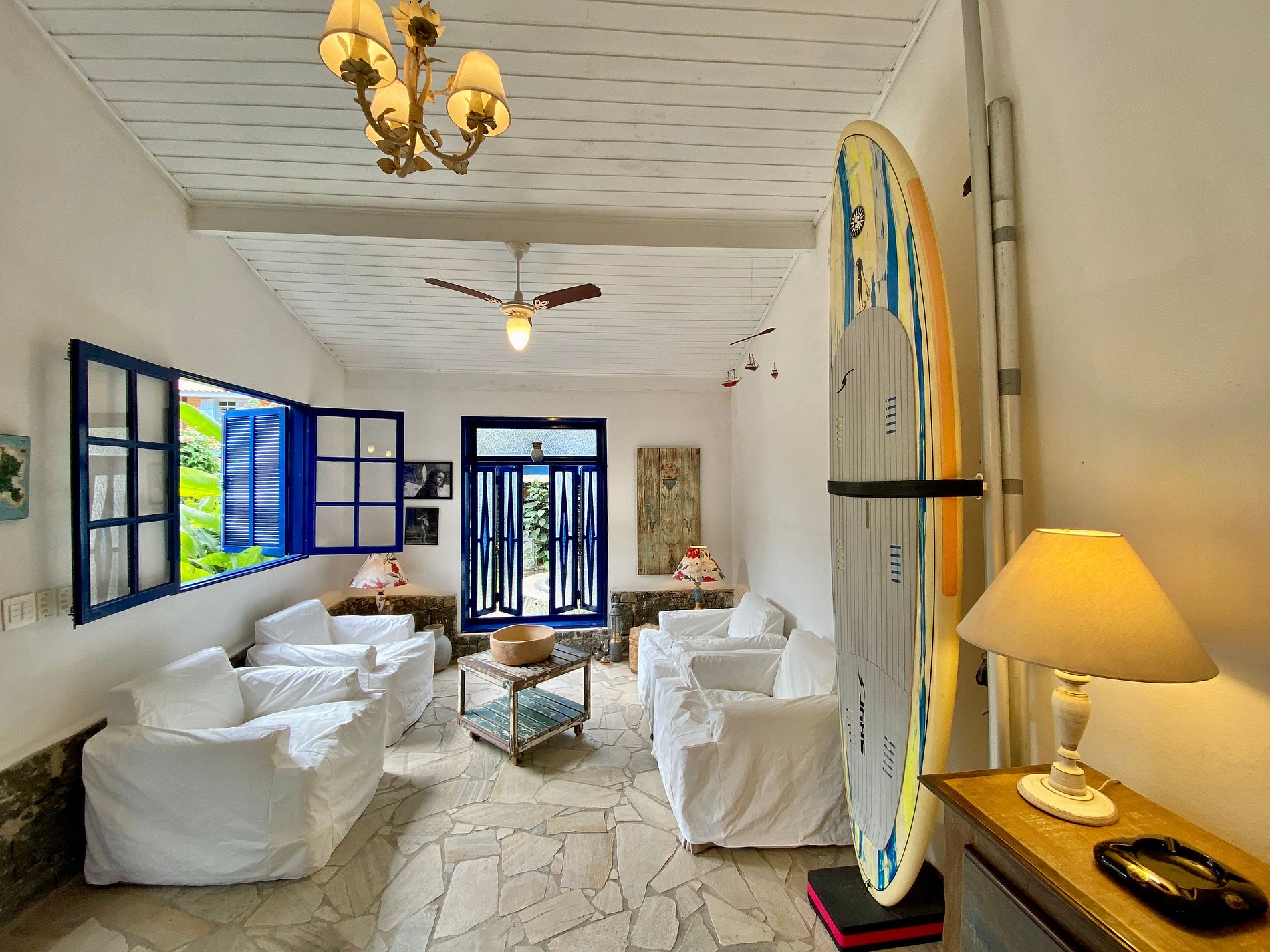 Casa térrea, charmosa, aconchegante e com acessibilidade, no Saco da Capela, região central de Ilhabela. Rua tranquila, a 5 minutos a pé da praia, restaurantes, mercados e do badalado Sea Club. Área externa com jardim e jacuzzi aquecida. Suas 3 suítes acomodam bem 7 pessoas. Salas de estar e jantar integradas, com bela vista para o jardim. Cozinha completa com forno de pizza. Sala com jogo de dardos, Smart TV, canais a cabo, espaço para home office e ótimo sinal de Wi-fi. Seu PET é bem-vindo!
