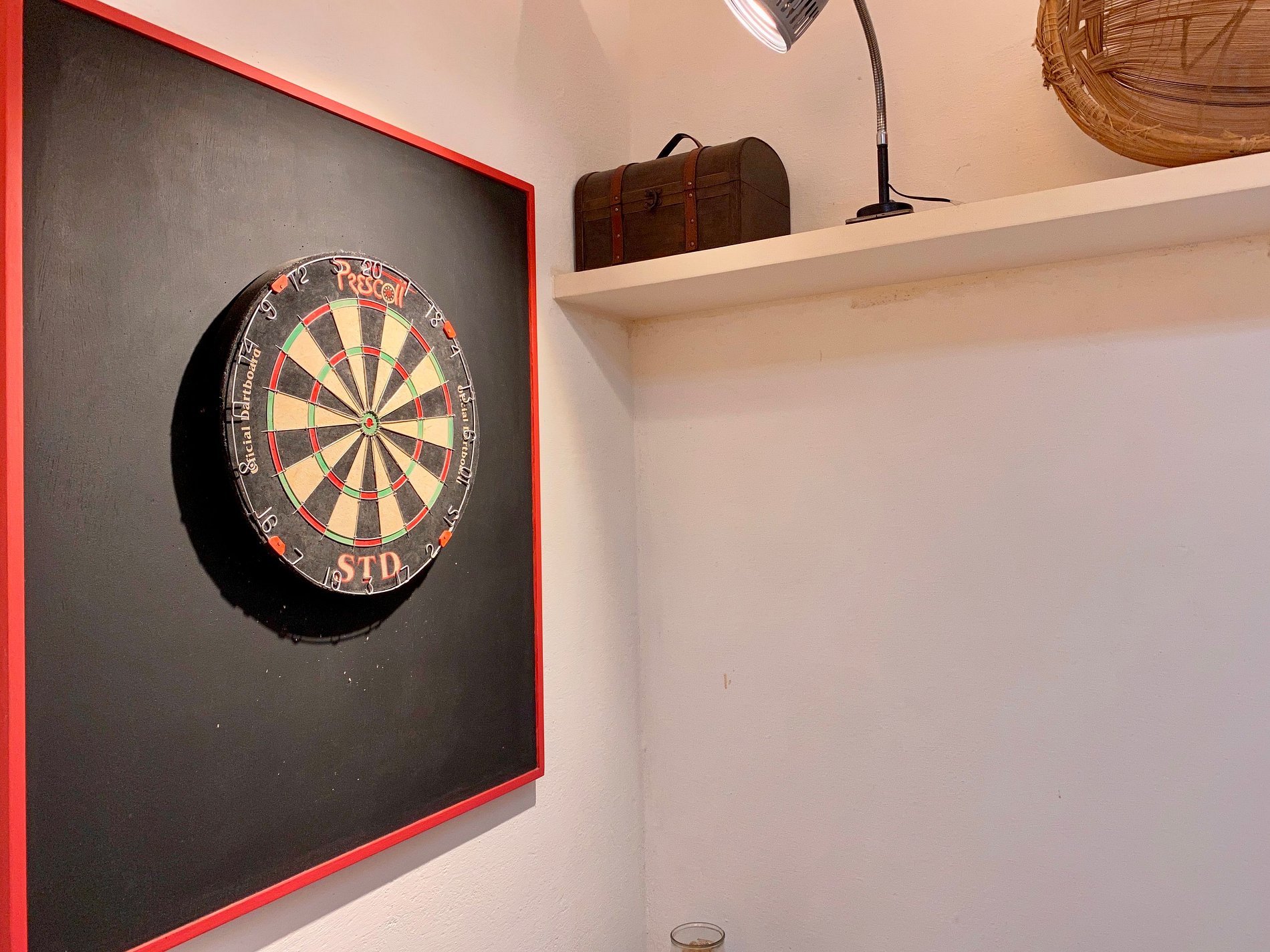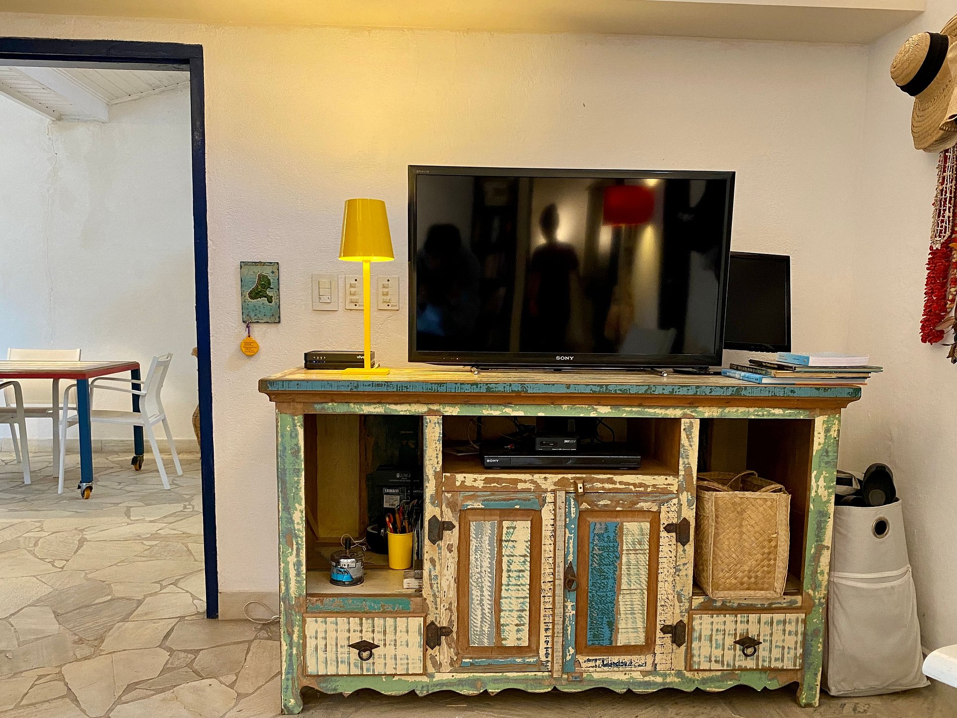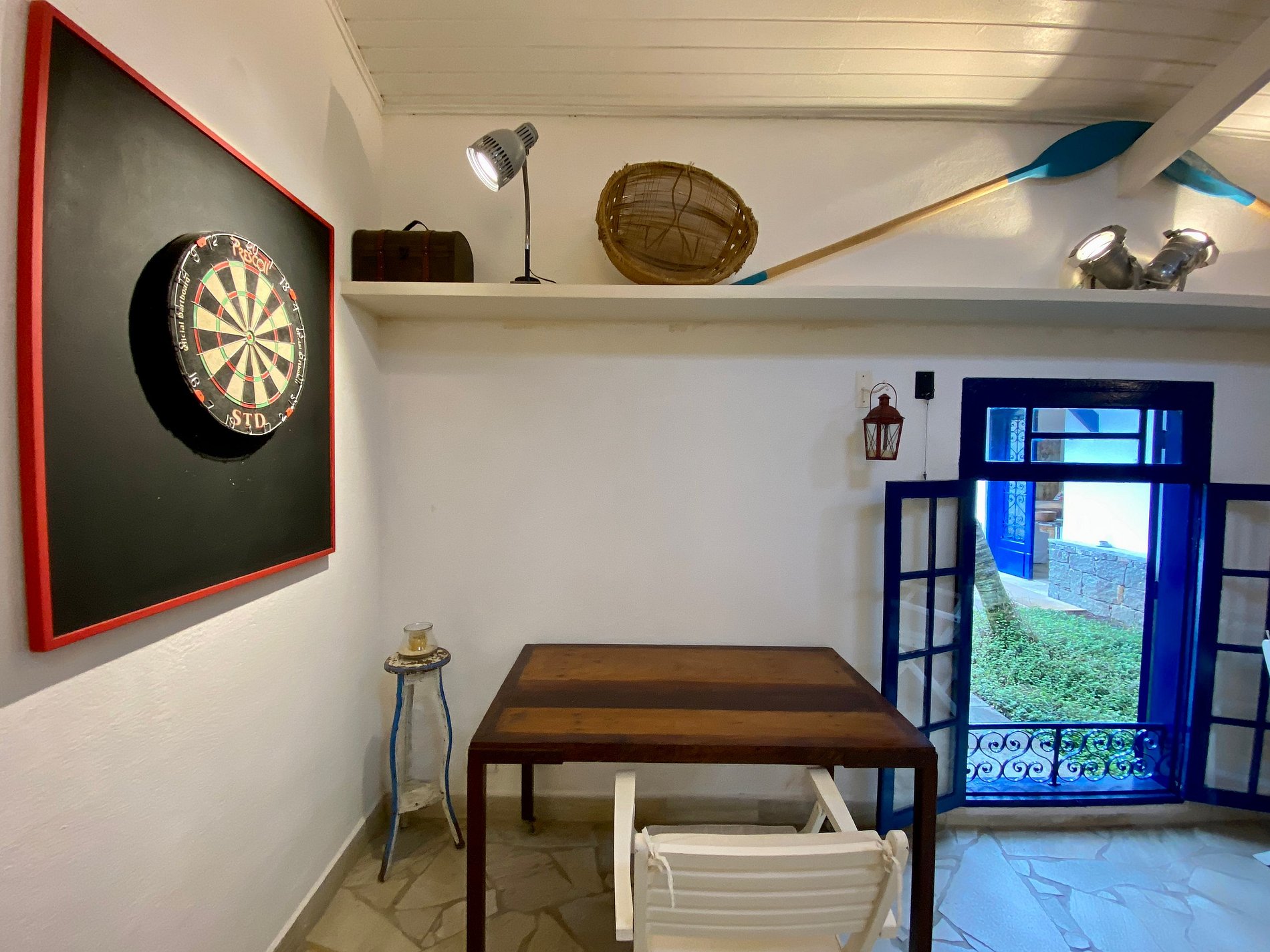 - Sala de TV com ar-condicionado, Smart TV com canais a cabo, Netflix, Prime Video e Max (sem necessidade de assinatura do hóspede), Wi-fi, estação para home office e espaço para jogo de dardos com padrões oficiais (os dardos não serão fornecidos, os hóspedes devem levar os seus)";