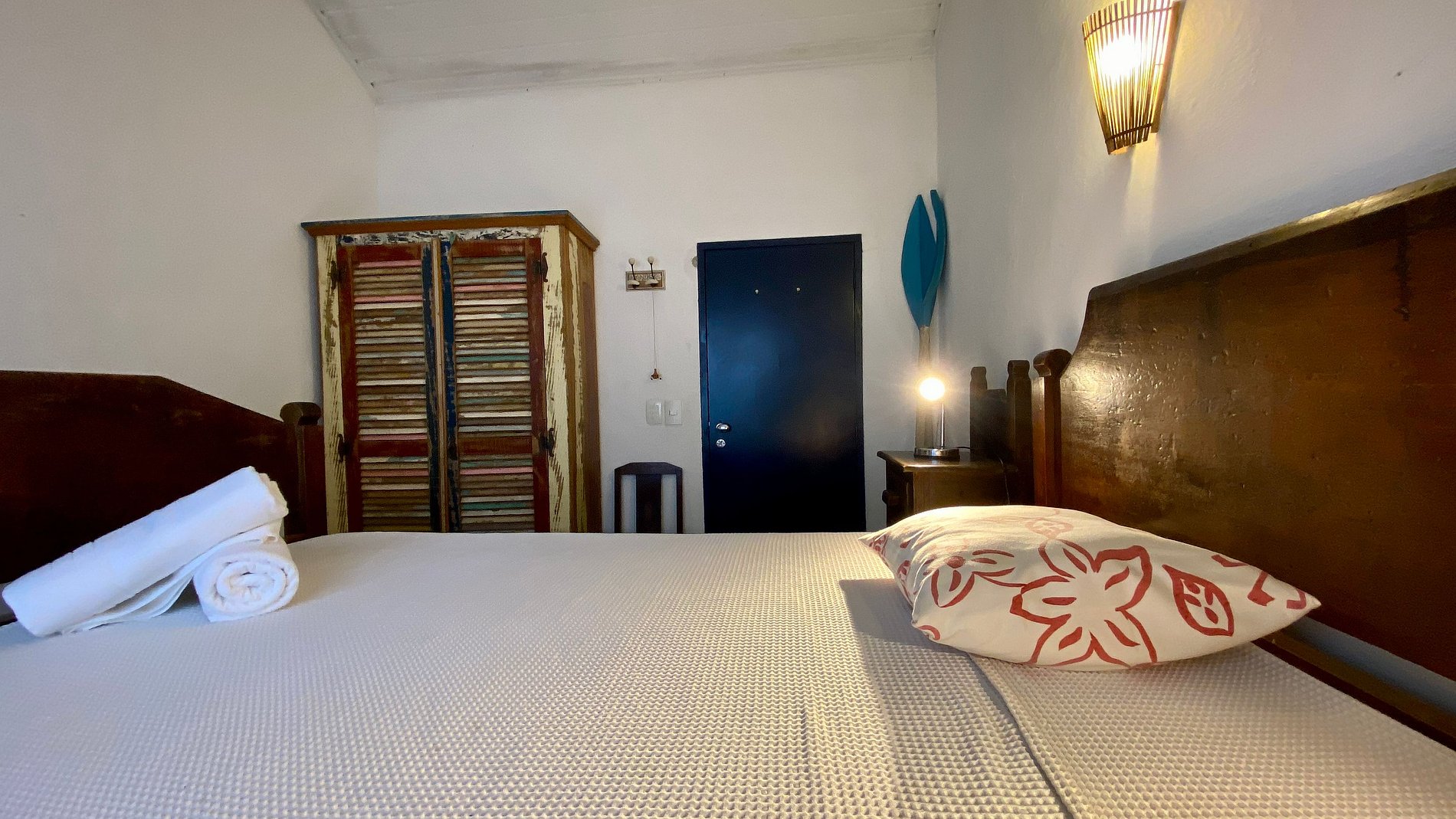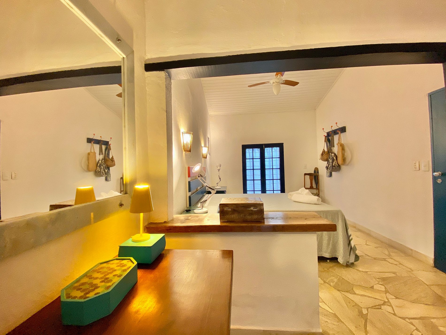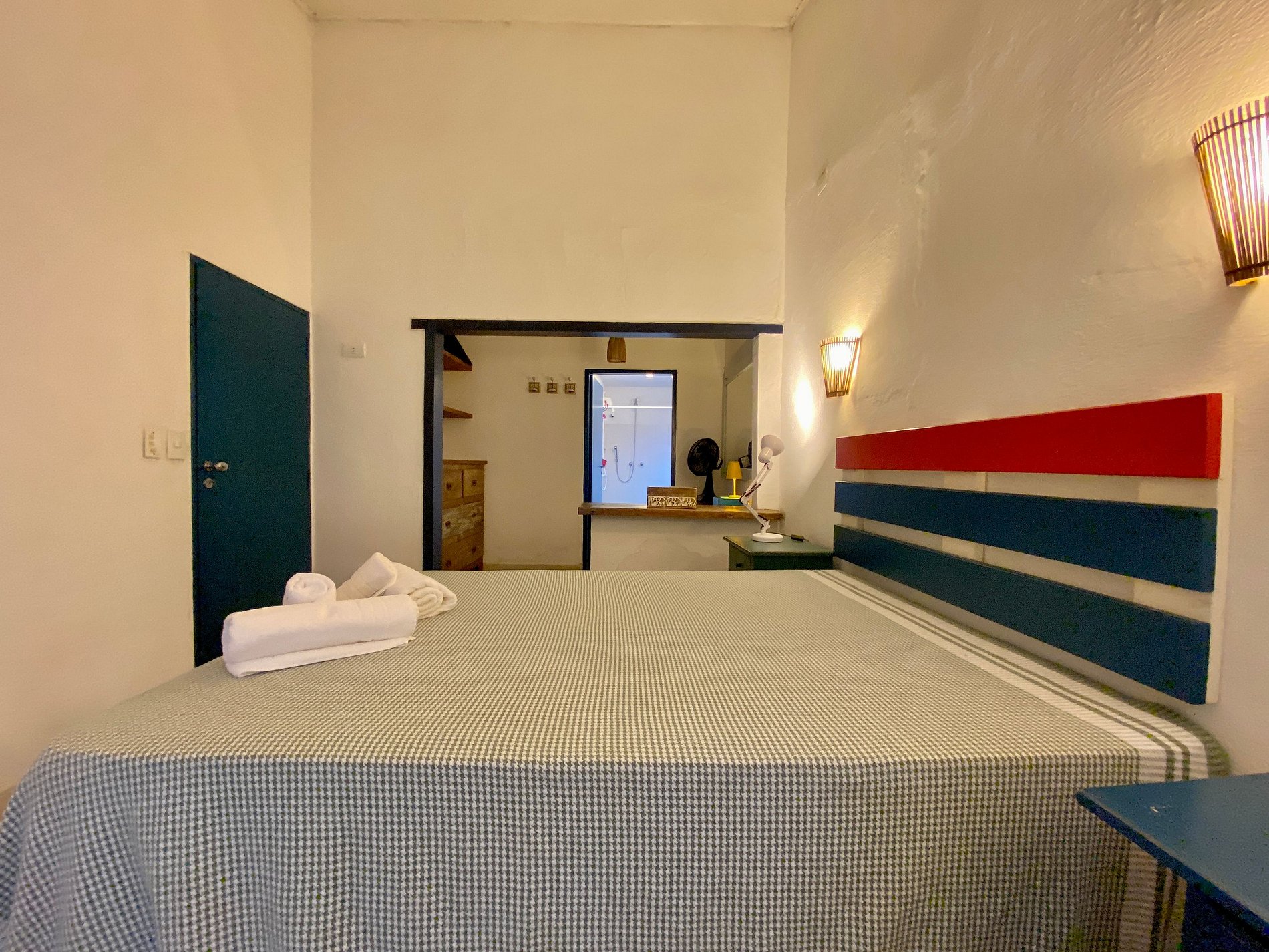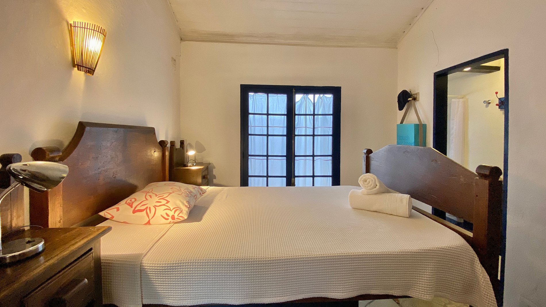 Suíte 1 - 1 cama de casal e ventilador, com porta que dá acesso ao jardim;