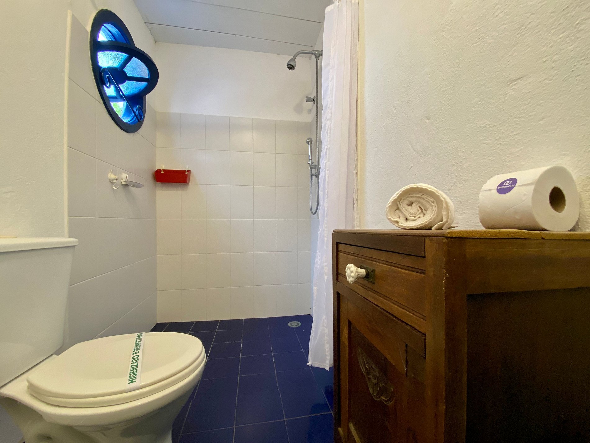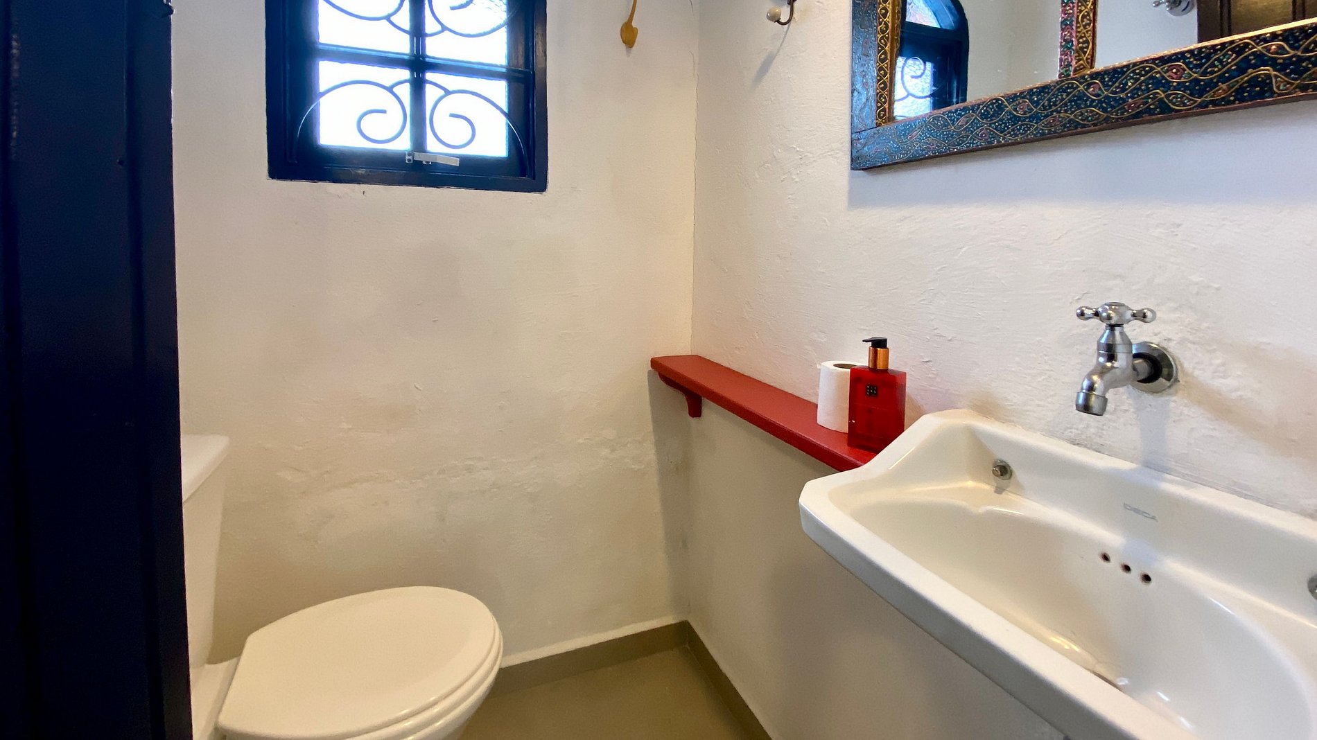 Como a casa é mais antiga e tem um certo estilo colonial, falta um pouco de luz natural e um dos banheiros tem a privada junto com o box do chuveiro, mas nada que atrapalhe demais.