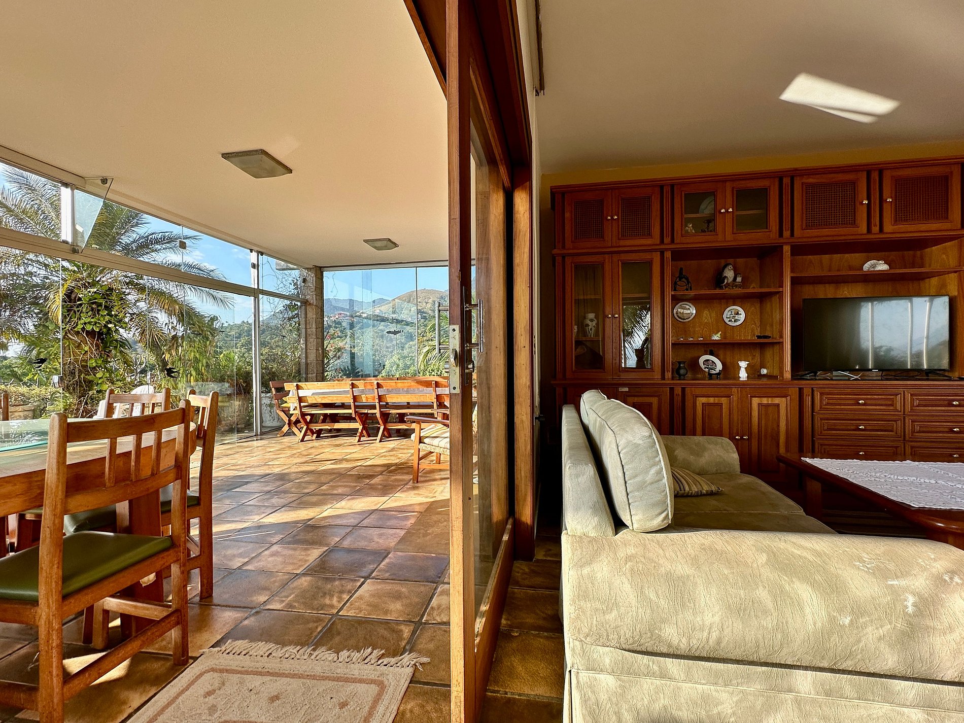 - Casa rústica, ampla, iluminada e arejada, que conta com salas de estar, jantar e TV totalmente integradas;