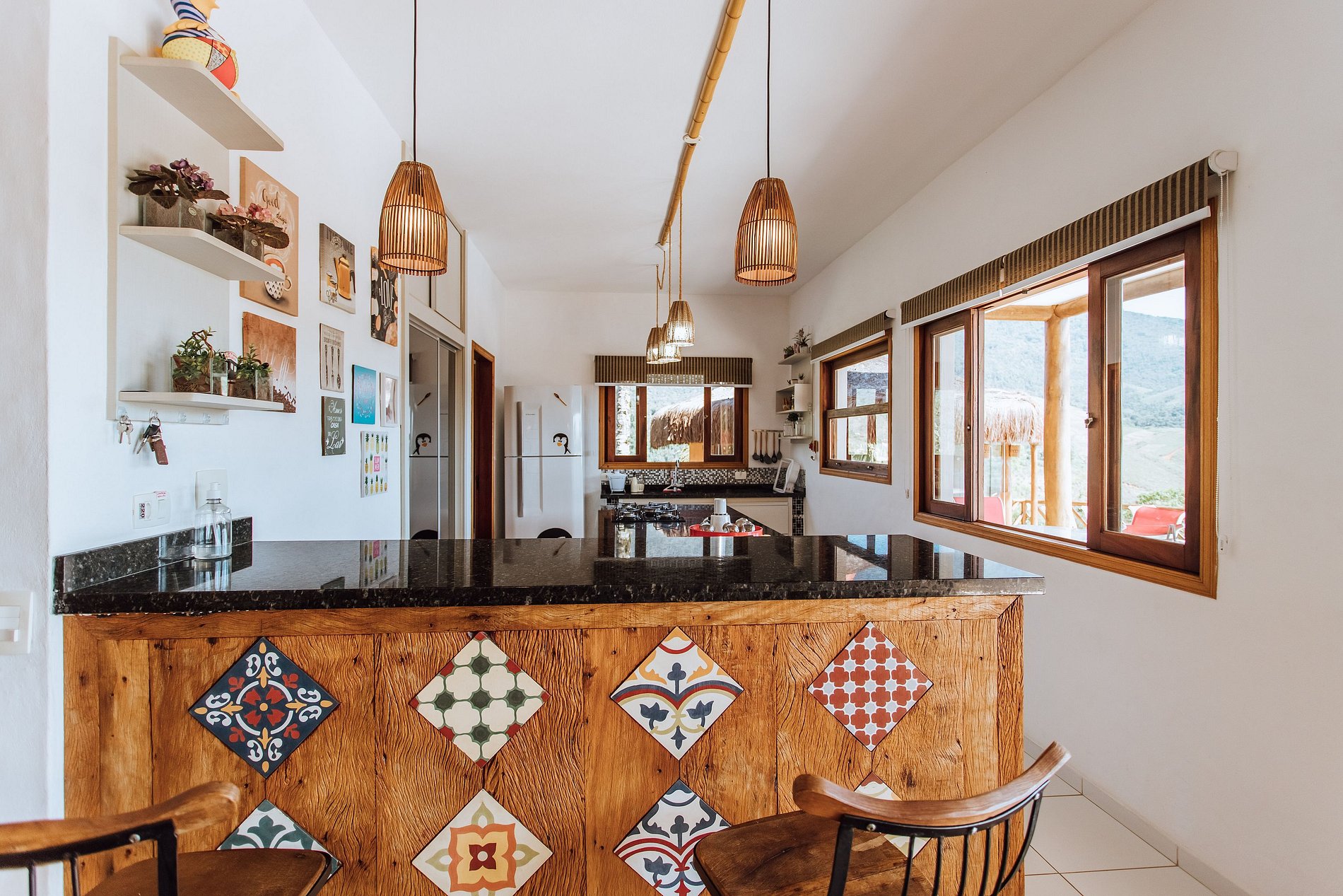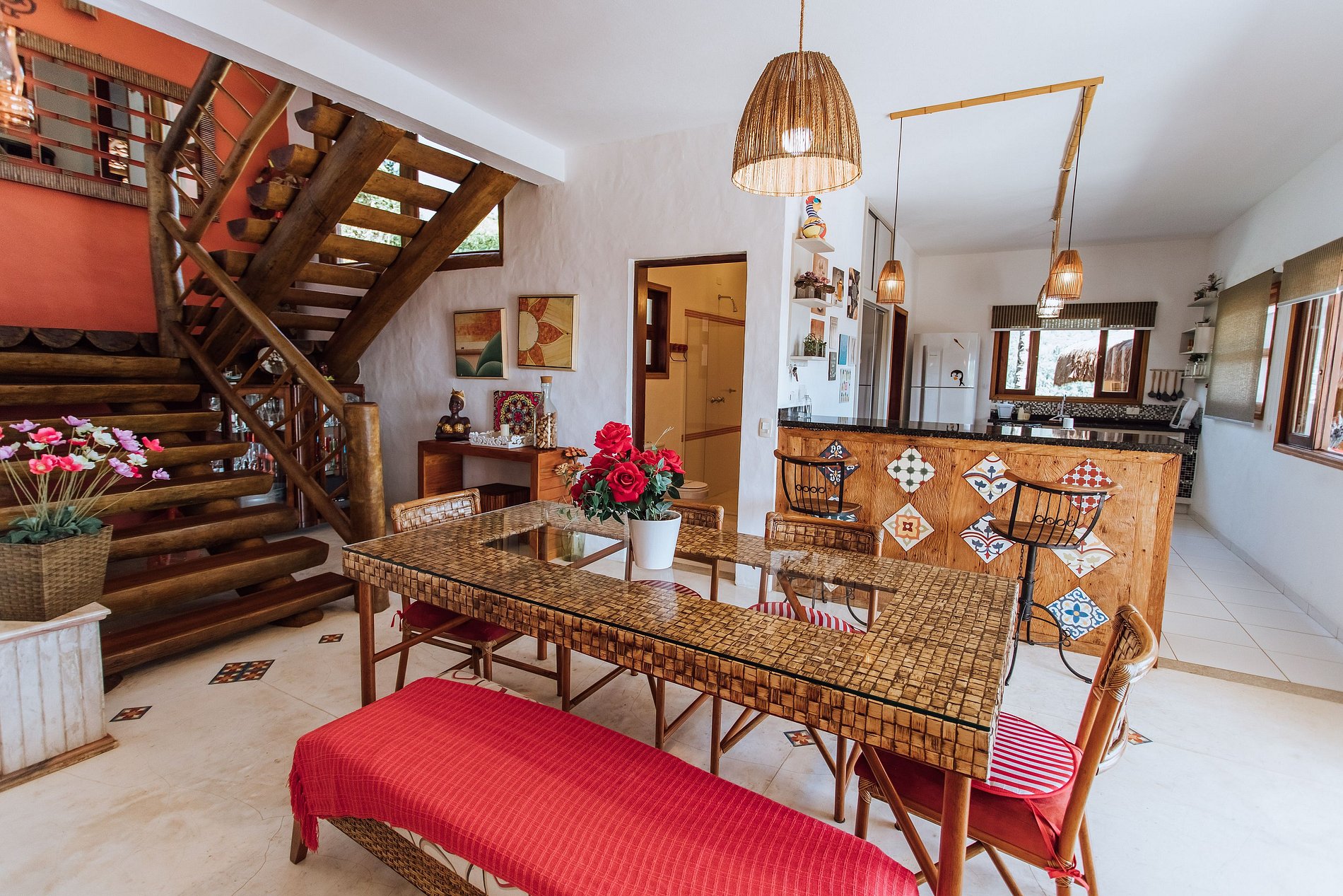 - Salas de estar, jantar e cozinha integradas;