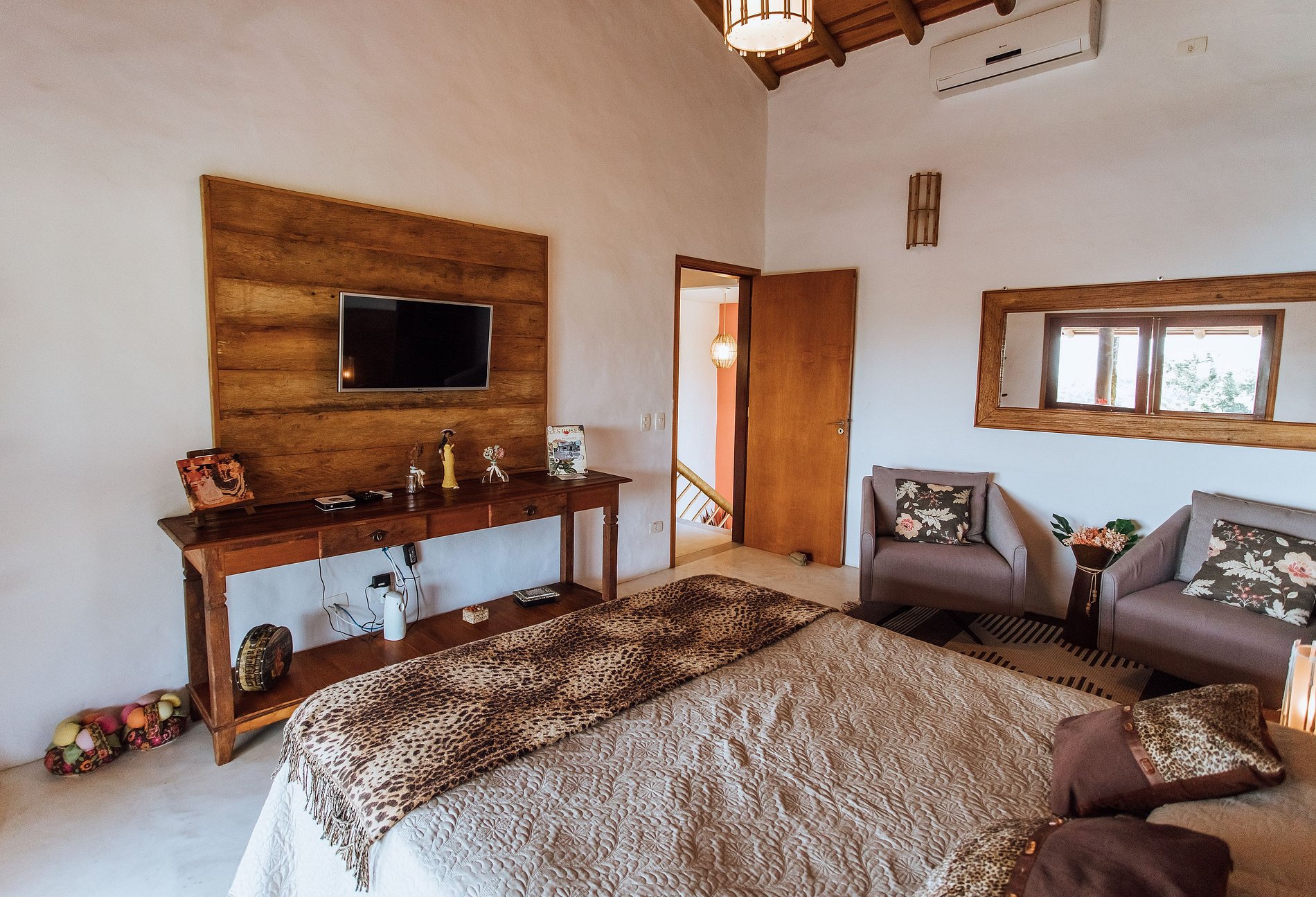 - Suíte: com 1 cama de casal, TV, ar-condicionado e bela varanda;