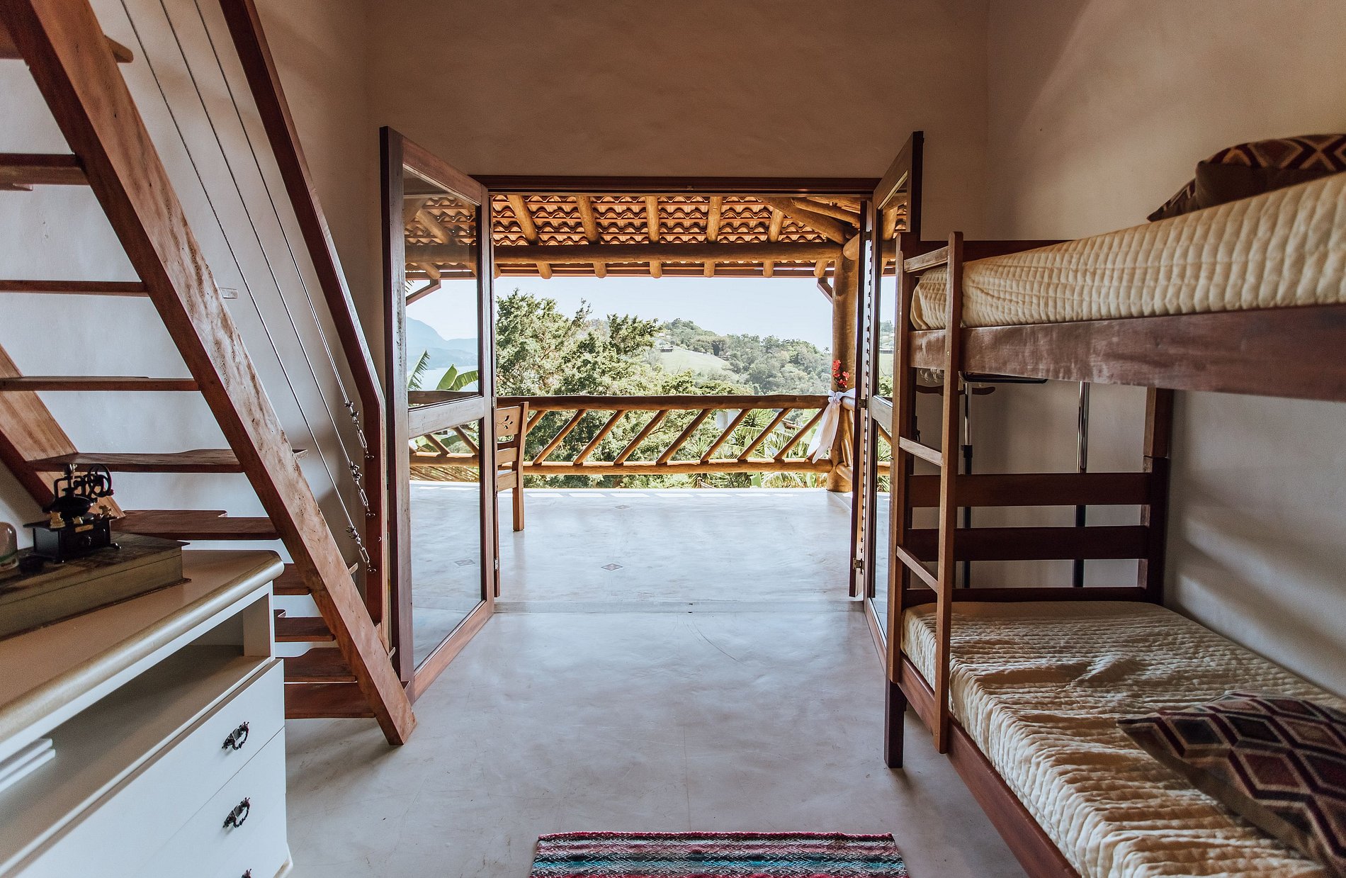 - Quarto 1: com 2 beliches, ar-condicionado e bela varanda;