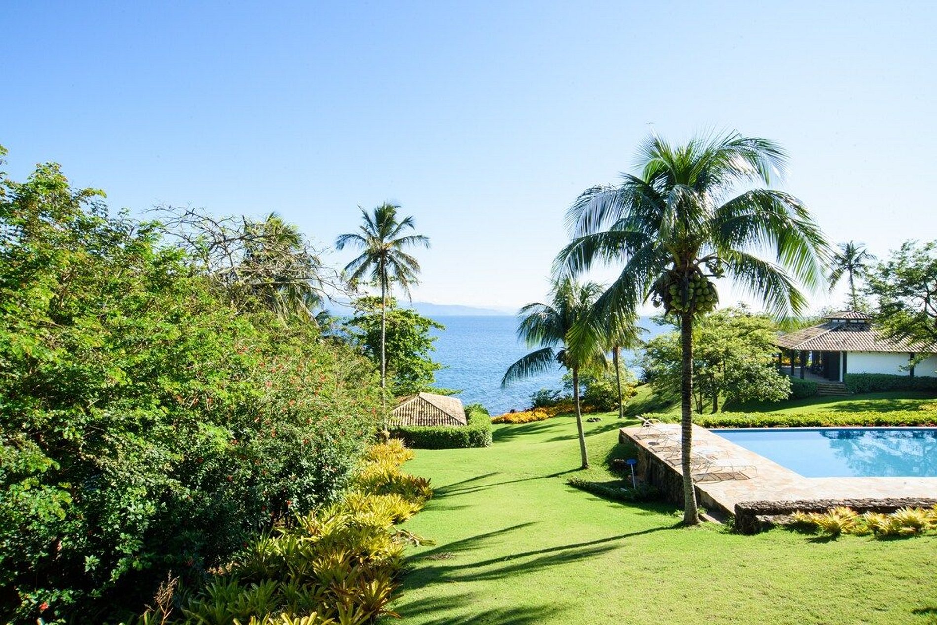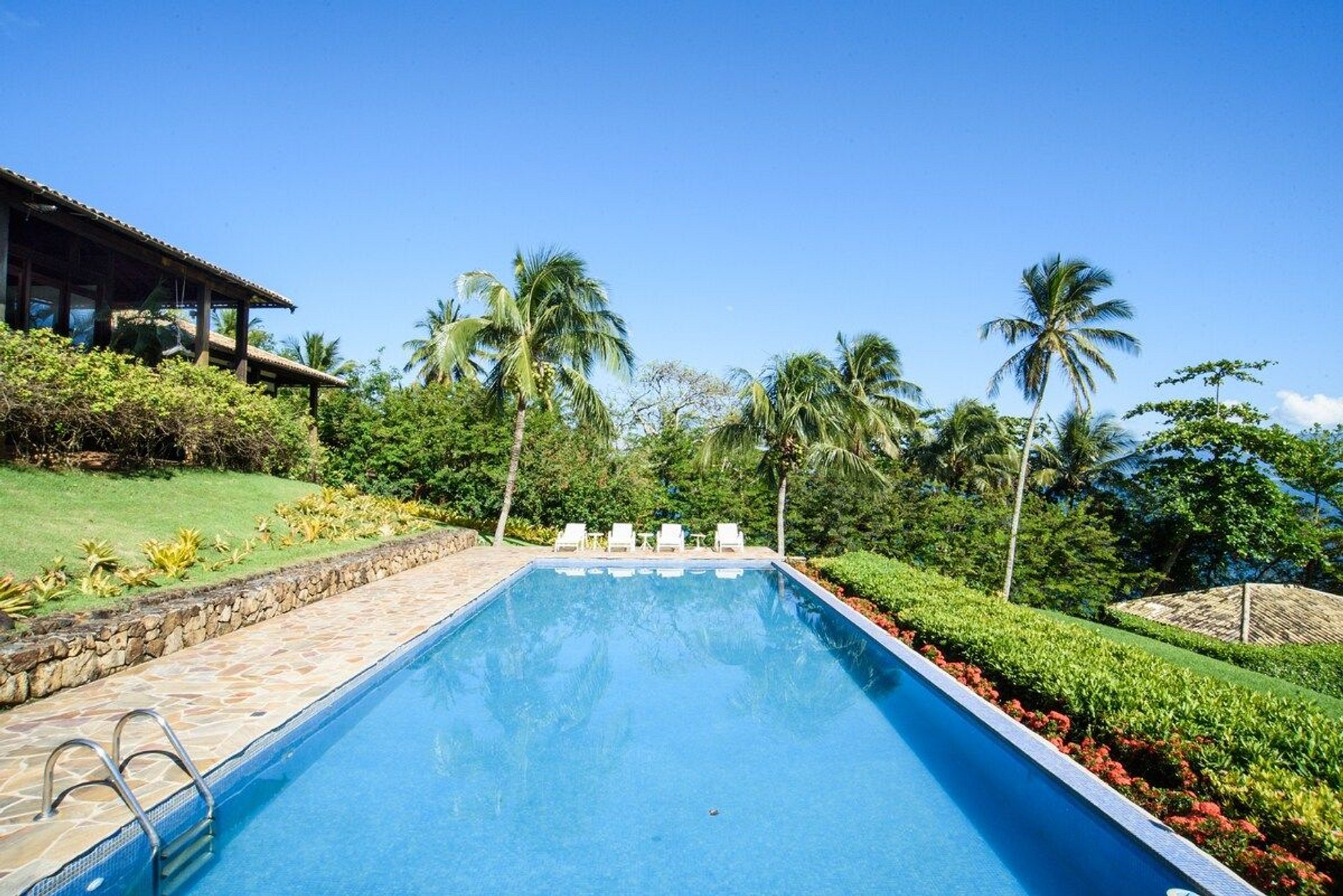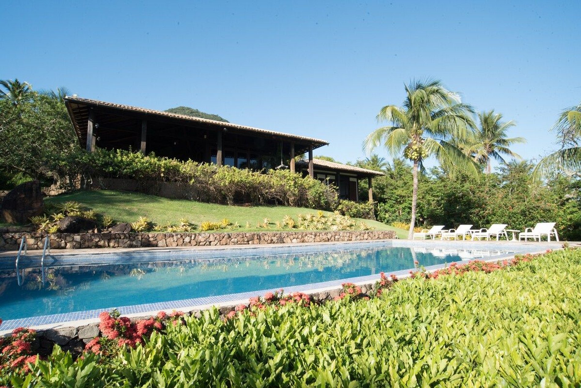 A piscina é enorme e é uma ótima pedida para depois de um mergulho no mar, que pode ser acessado pelo nosso exclusivo deck. Inclusive, o norte da ilha é famoso e muito requisitado para mergulhos de snorkel, onde você pode apreciar toda a vida marítima que temos aqui.