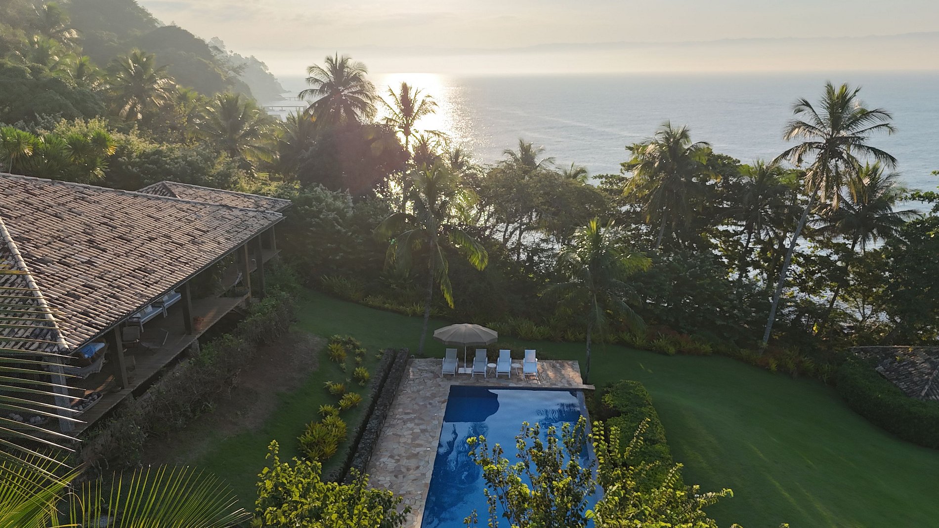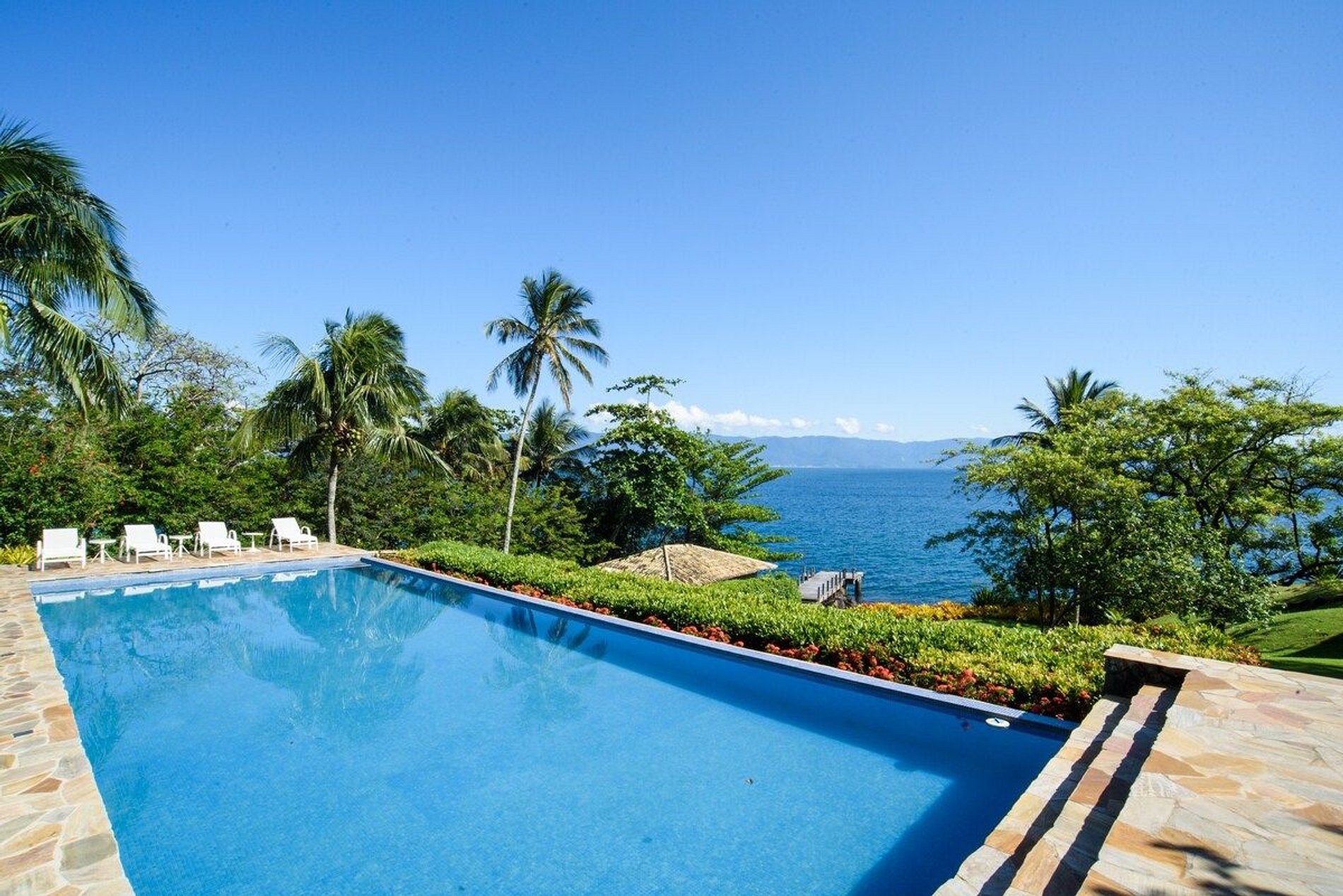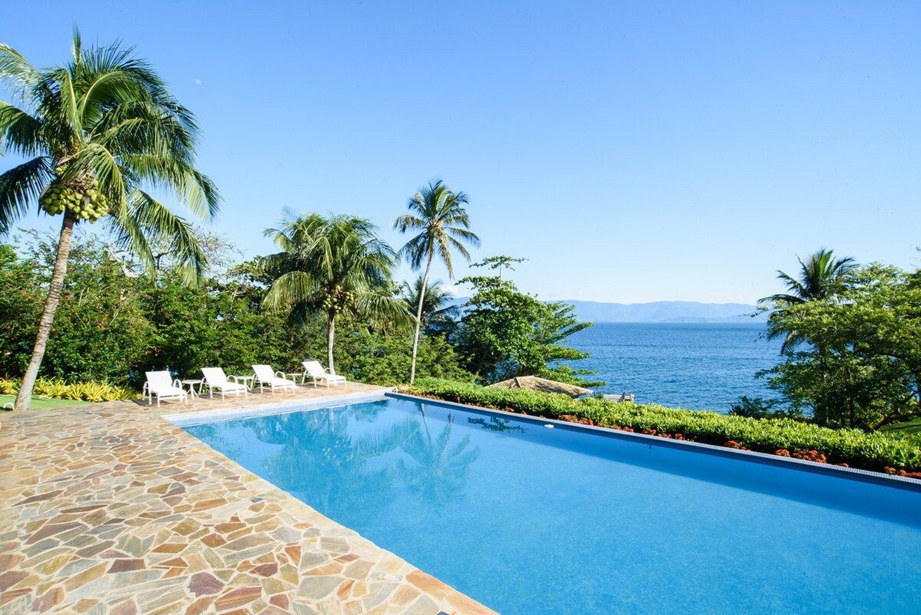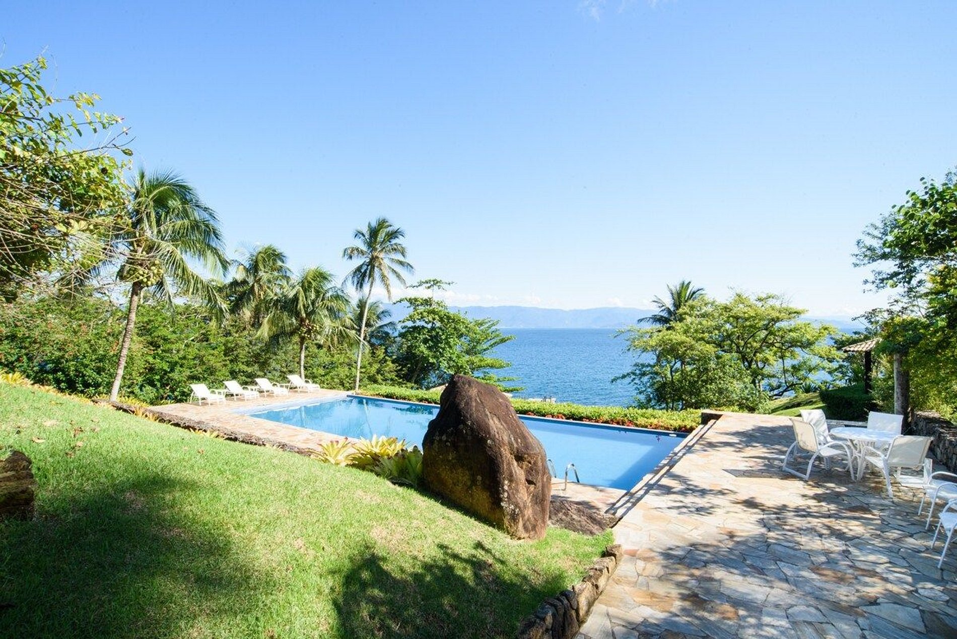 A piscina é enorme e é uma ótima pedida para depois de um mergulho no mar, que pode ser acessado pelo nosso exclusivo deck. Inclusive, o norte da ilha é famoso e muito requisitado para mergulhos de snorkel, onde você pode apreciar toda a vida marítima que temos aqui.