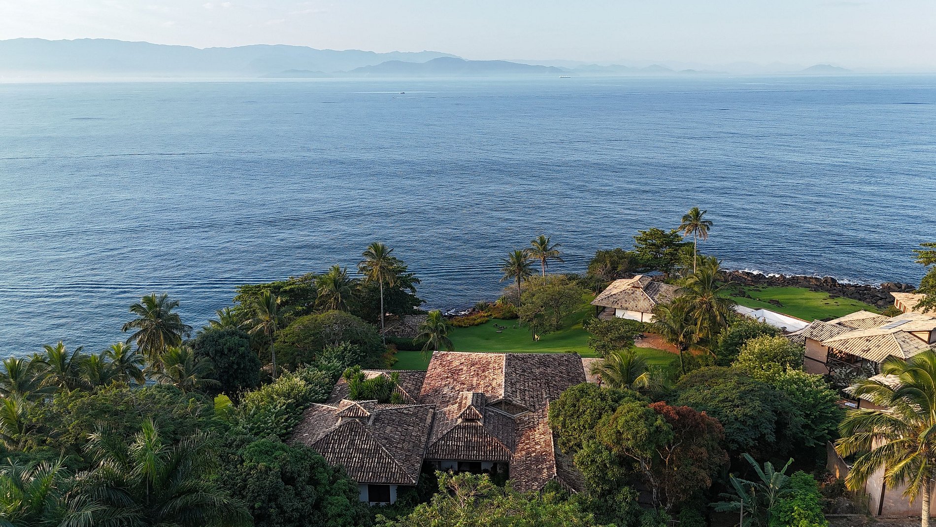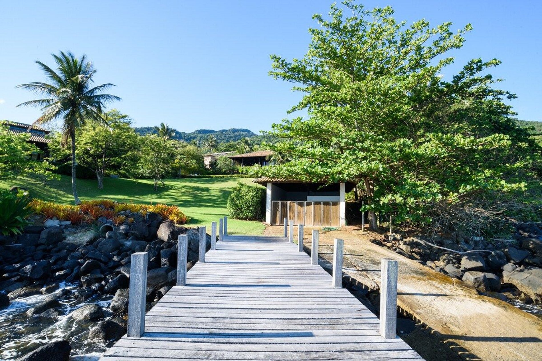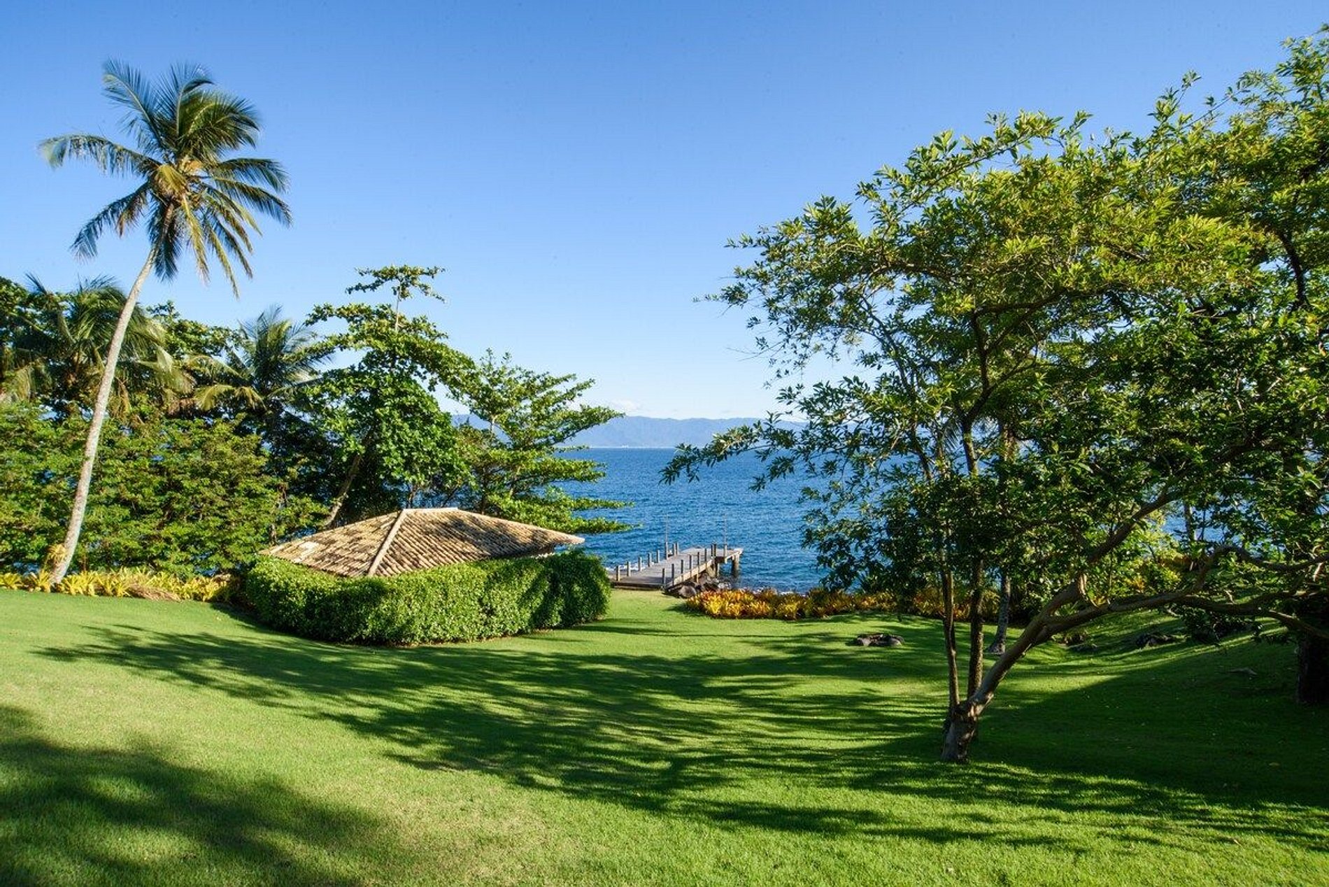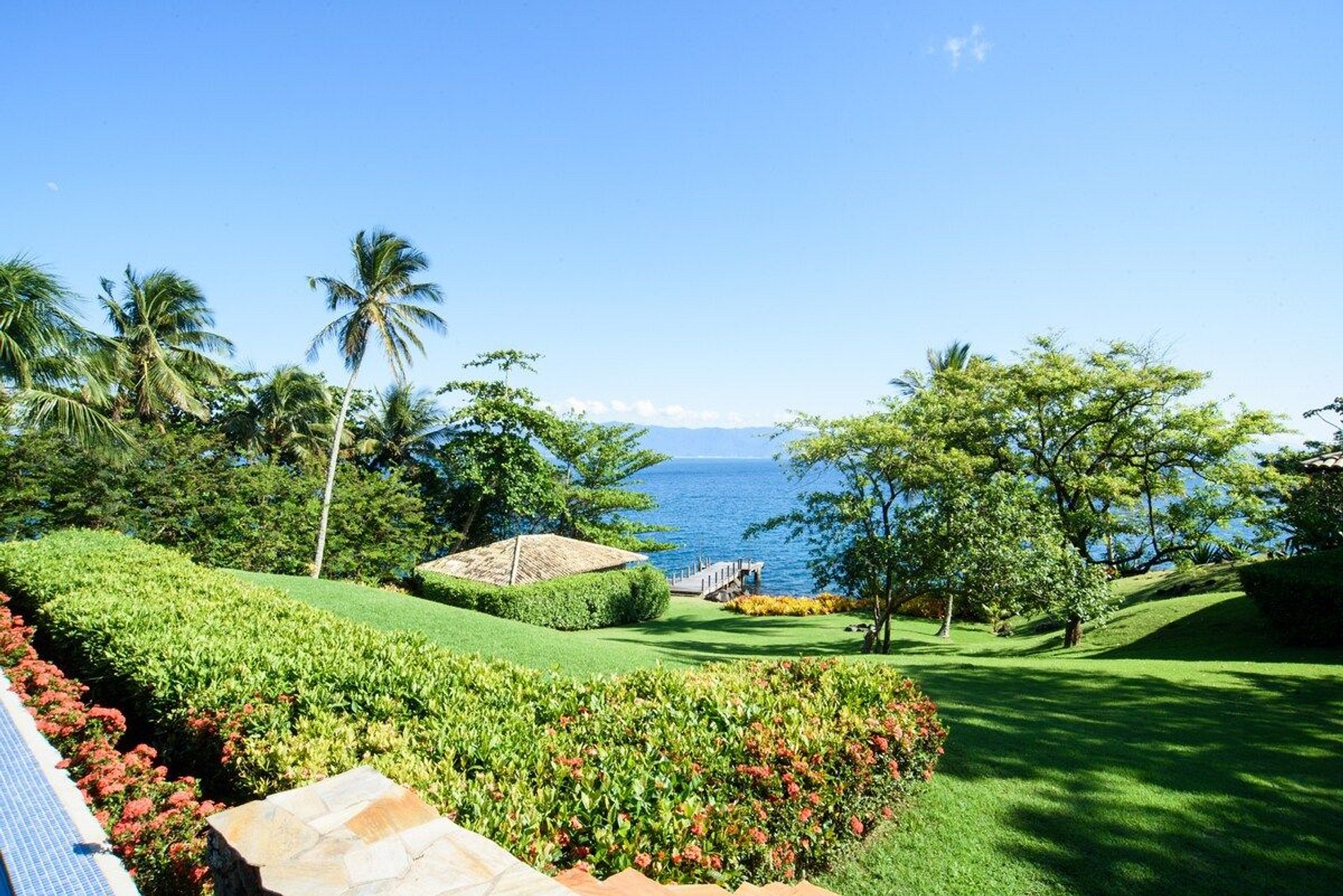 Uma das melhores experiências de Ilhabela! Propriedade exclusiva, vista deslumbrante, luxo, conforto e privacidade à beira-mar. Localizada ao Norte de Ilhabela, na bela Pacoíba, com terreno de 7.000m2 e 1.200m2 de área construída. Casa principal, com 5 suítes, sala com pé direito triplo e casa de hóspede, próxima ao mar, com mais 2 suítes. Smart TV e Wi-fi. Área externa com piscina, sauna, jardim, churrasqueira, píer privativo com acesso ao mar. OBRIGATÓRIA A CONTRATAÇÃO DOS 3 FUNCIONÁRIOS.
